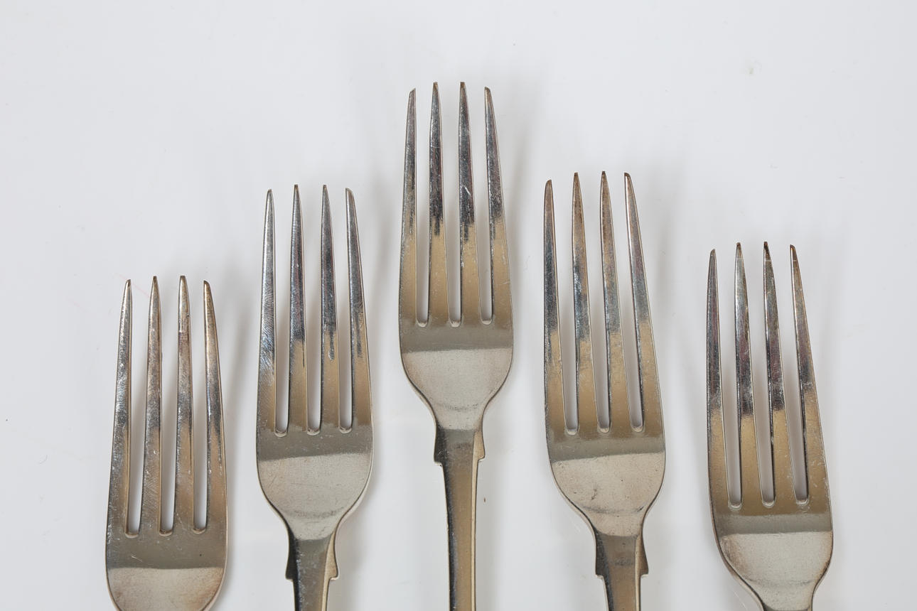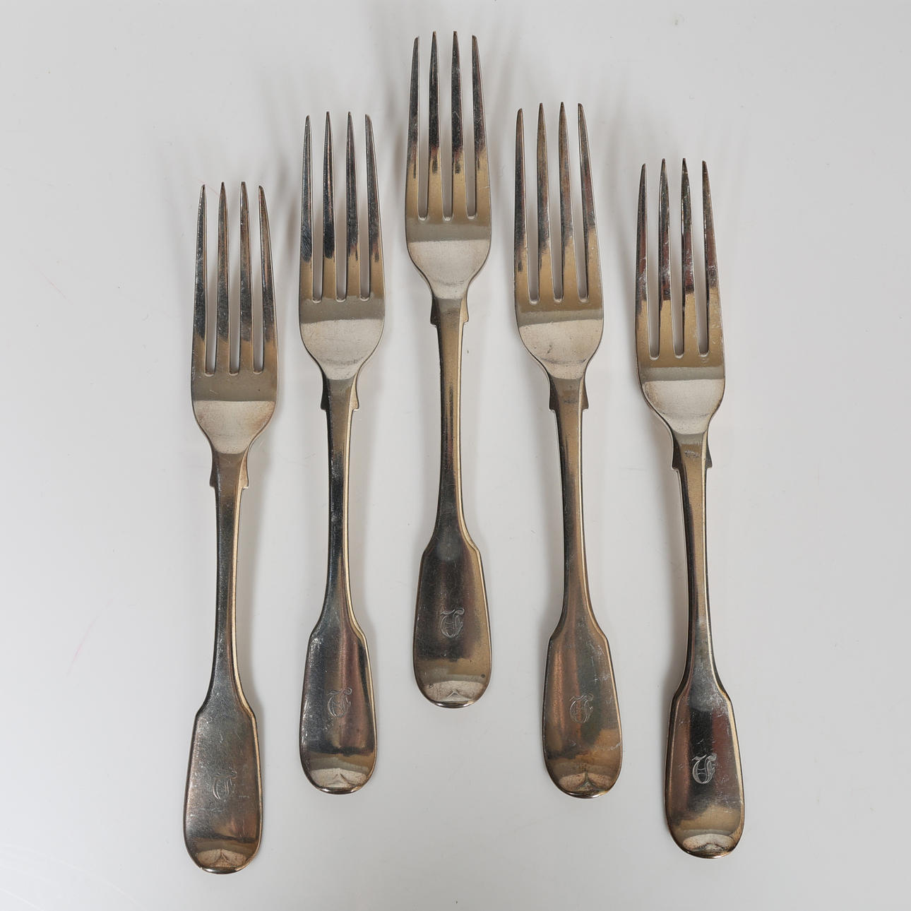 4168773. FEM WILLIAM IV SØLV BORDGAFLER (5).