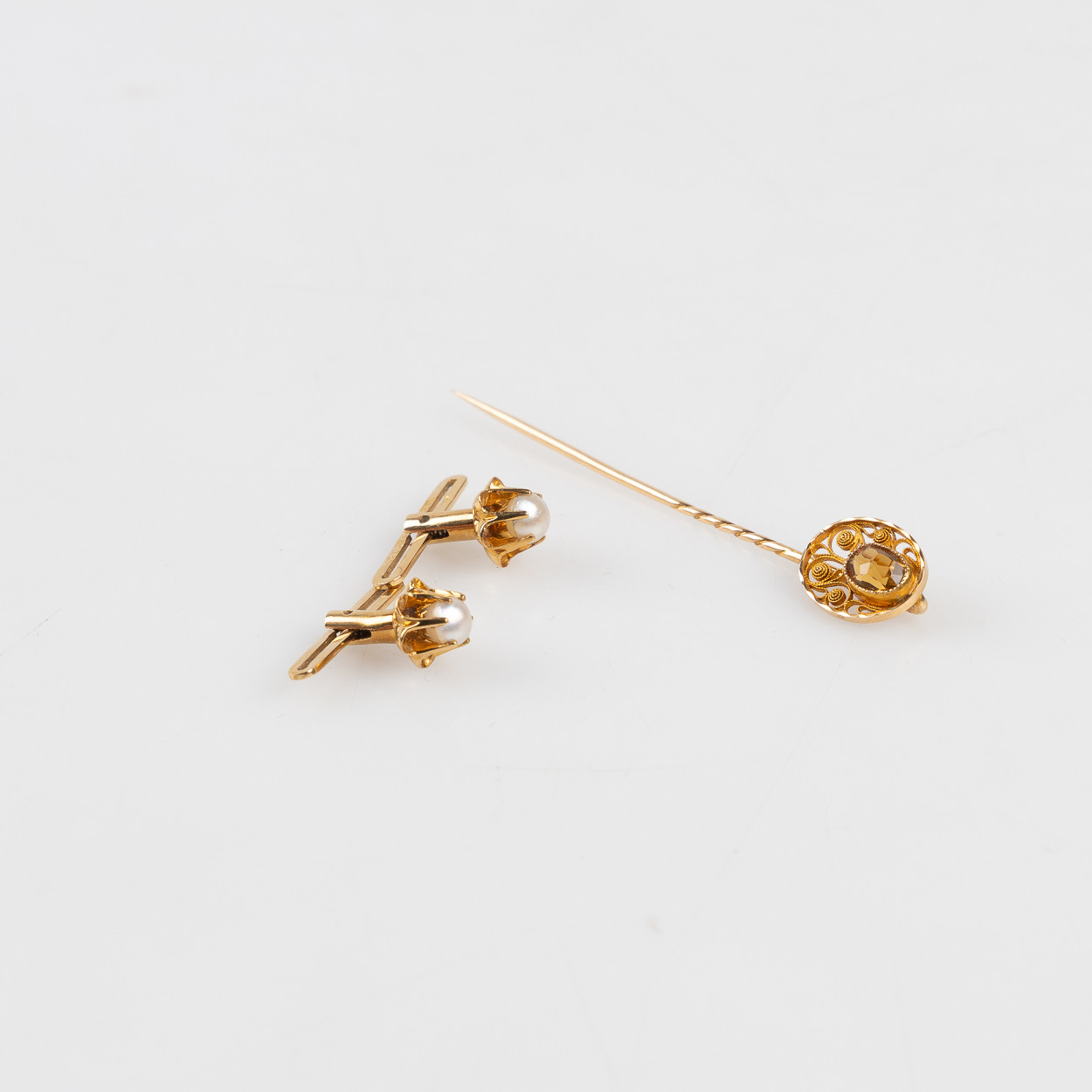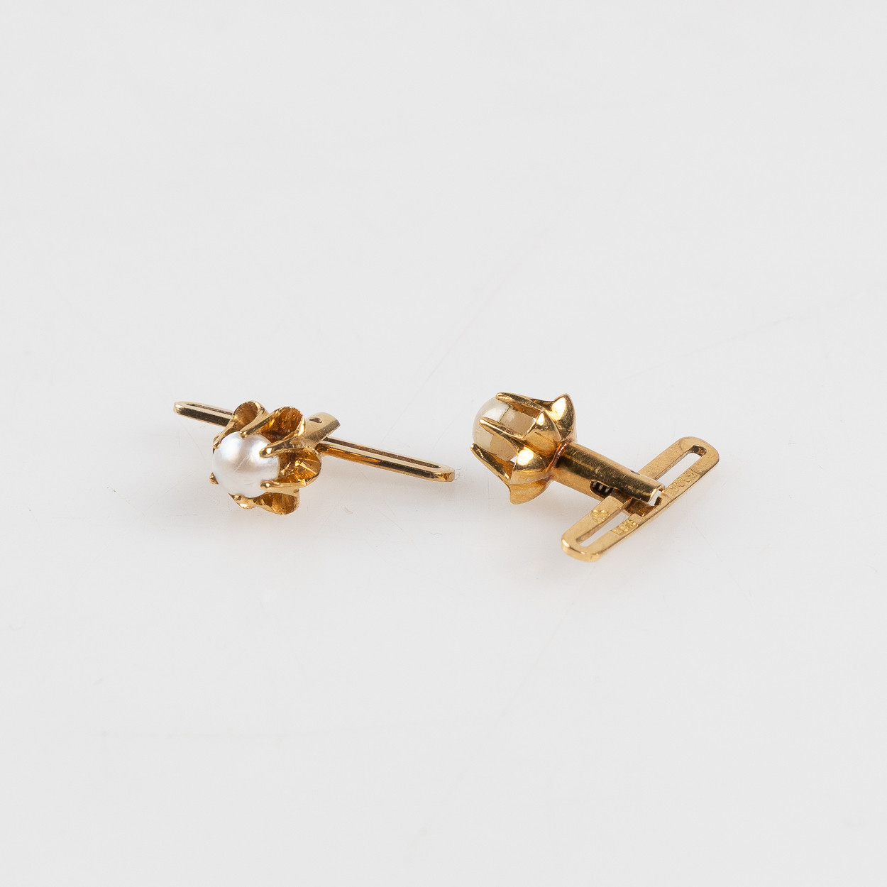 4170337. SKJORTEKNAPPER og NÅL, 18K guld.