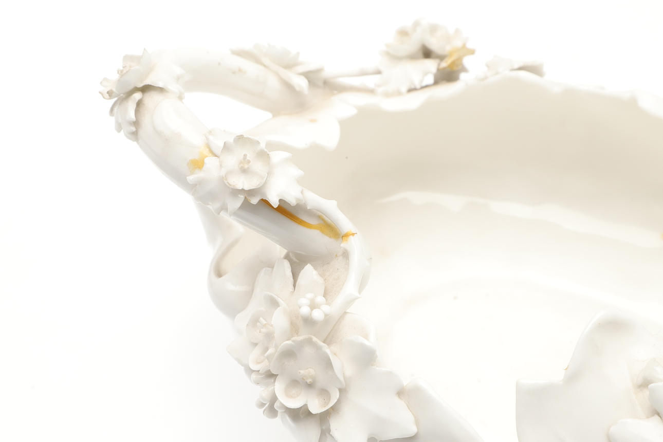 Derby, et håndtag revnet, forskellige chips til blade og blomster på steder