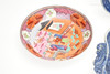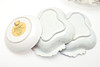 Plade, forskellige chips til kanten og blomster og blade.