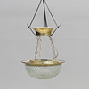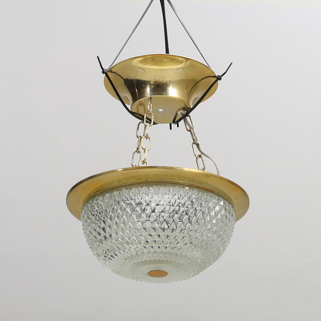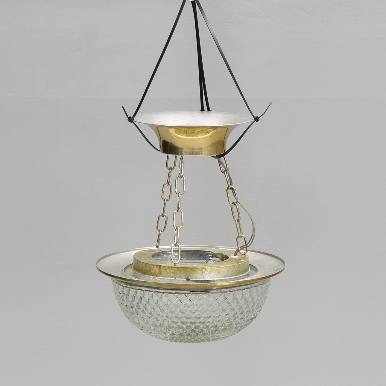 Loftslampe med glaskop og metalbase.