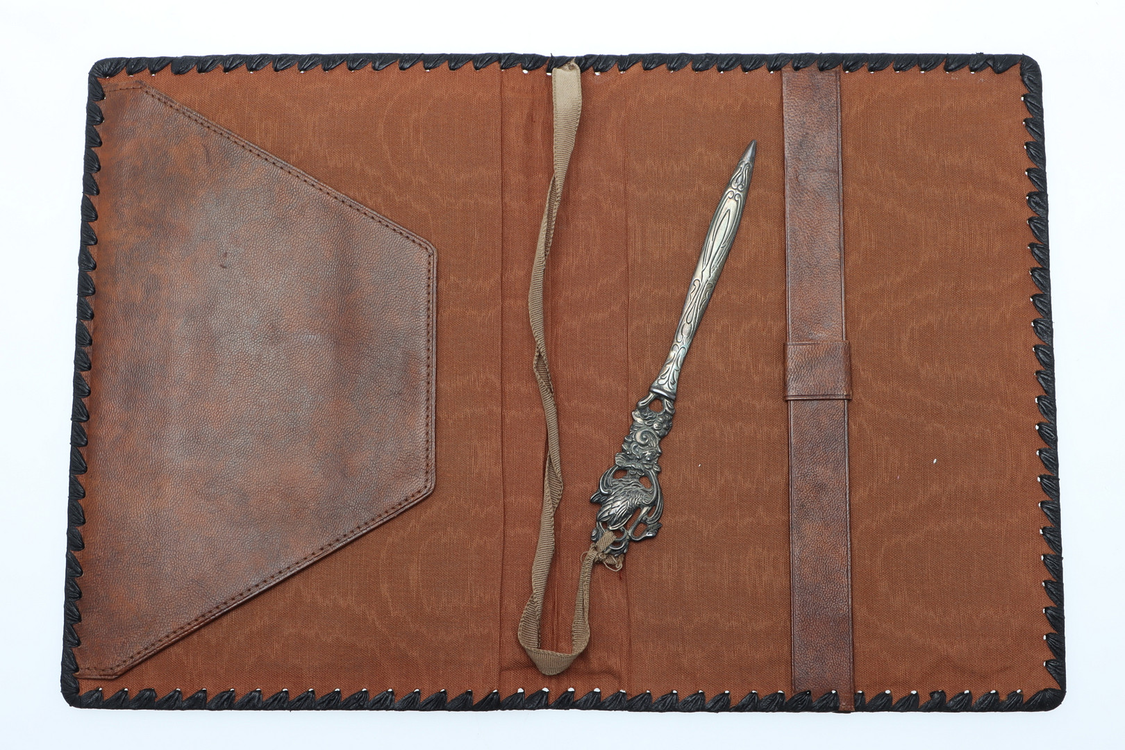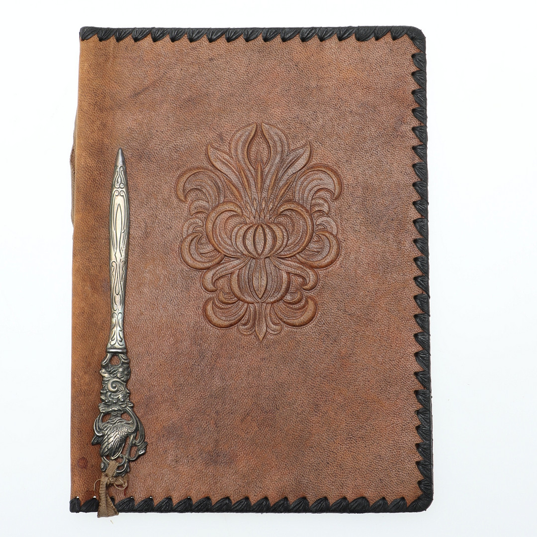 4174926. BREVMAPPE & BREVKNIV, læder & sølv.