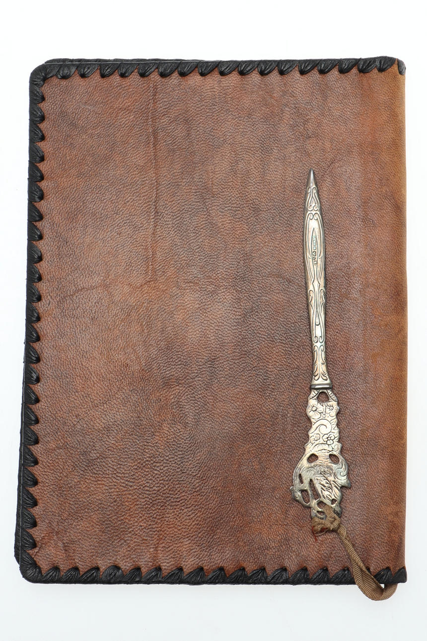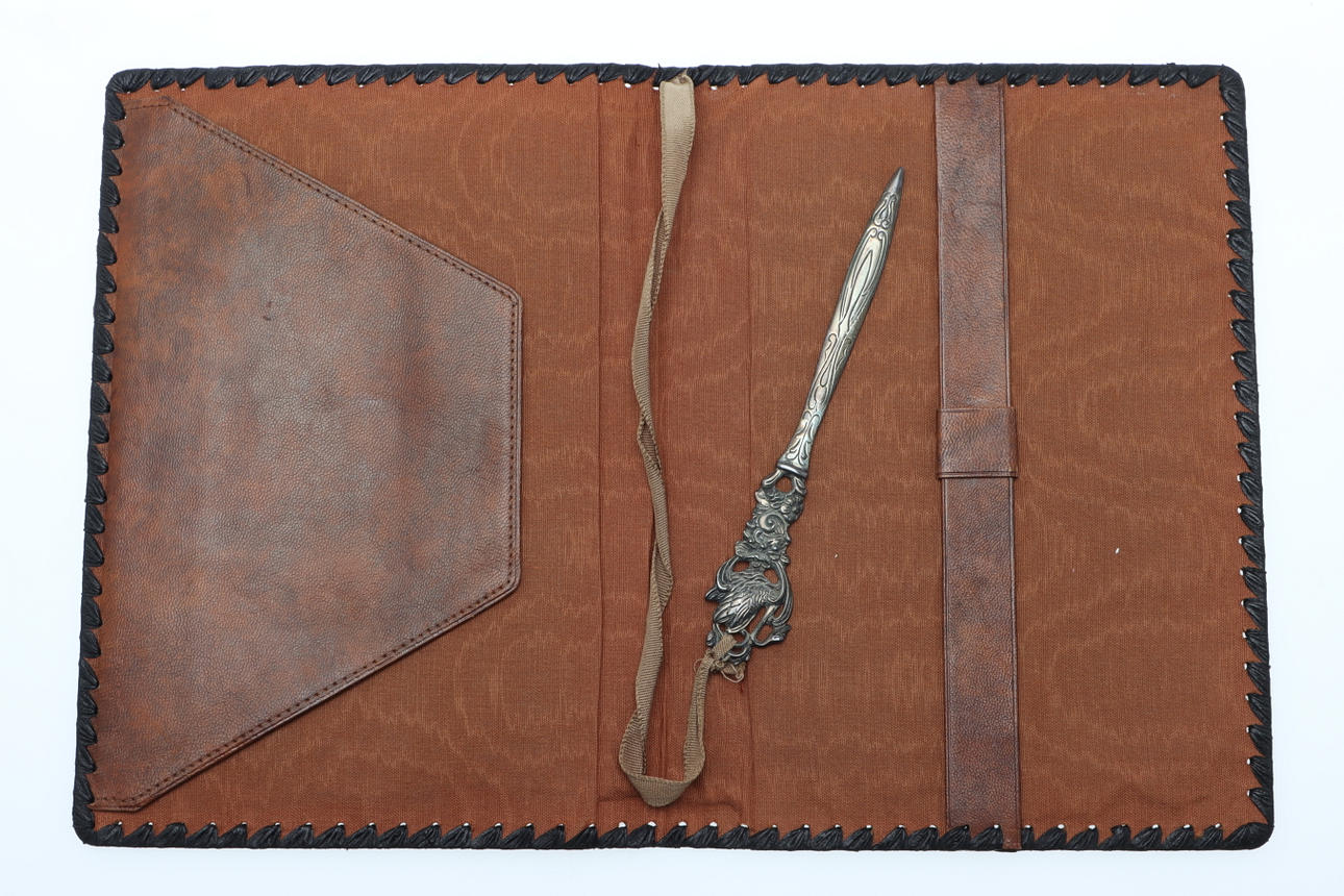 BREVMAPPE & BREVKNIV, læder & sølv.