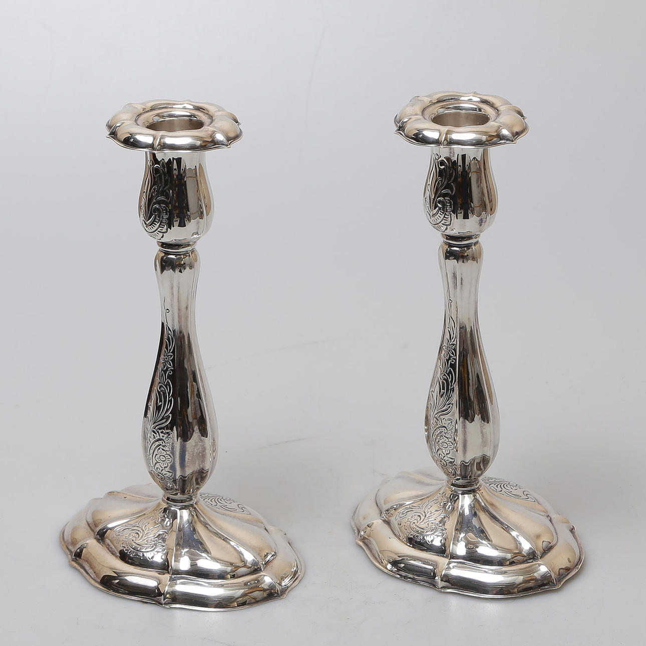 4177876. PAR LYSESTAGER I ÆGTE SØLV 830/1000.