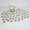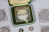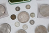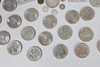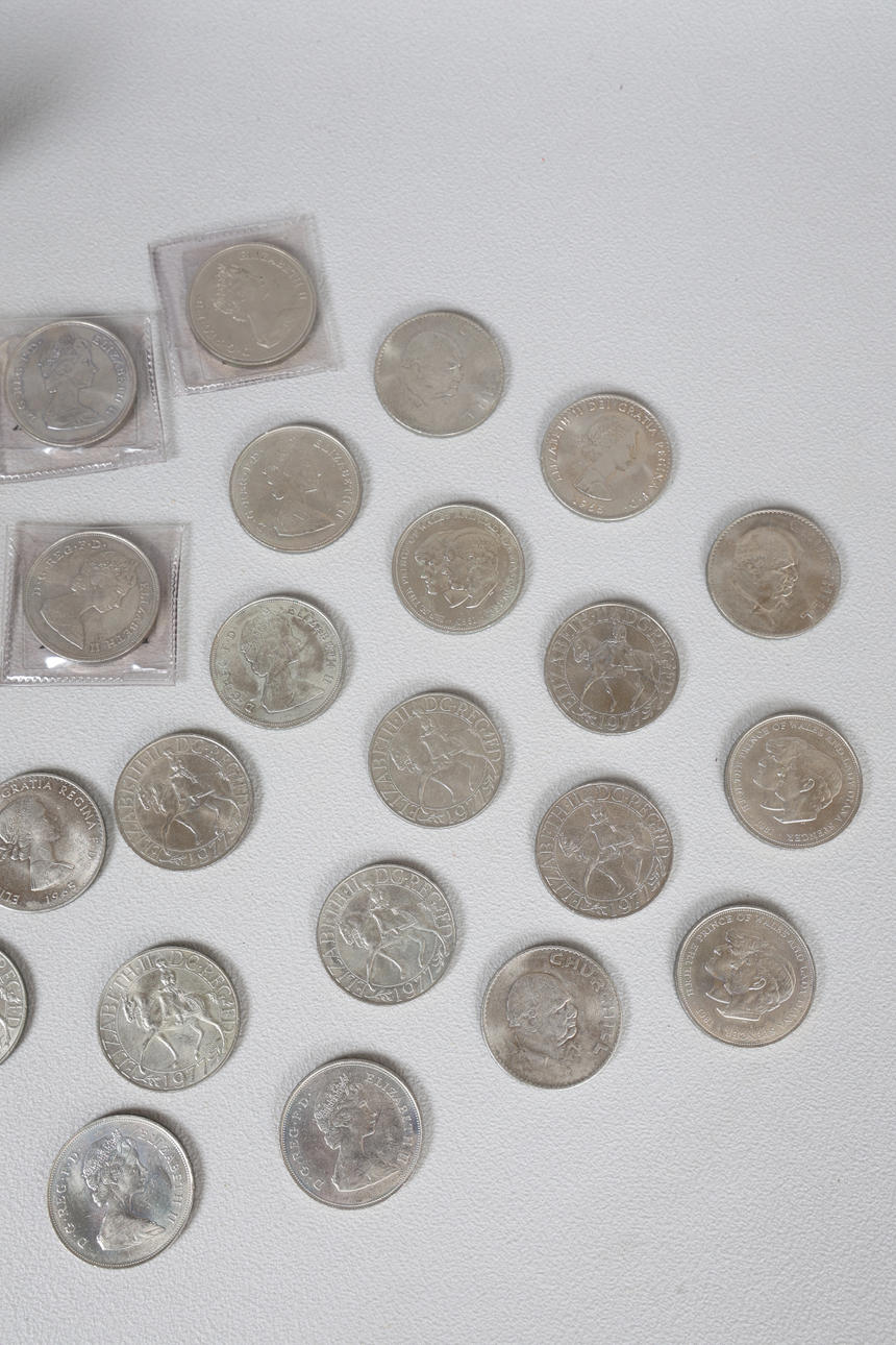 sølvmønter med tre pence og en stor mængde erindringskroner.