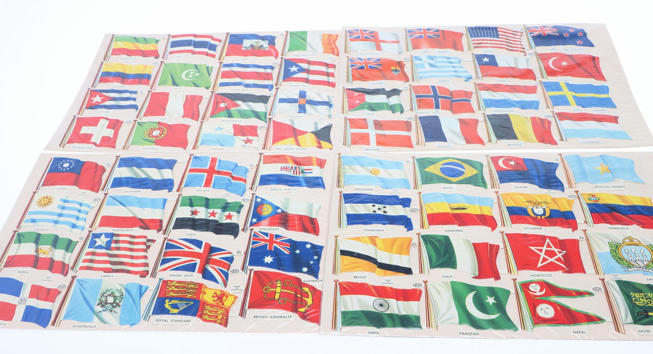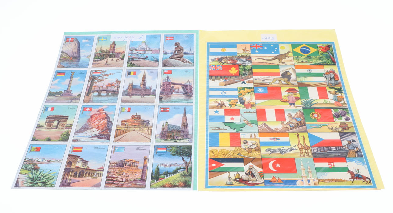 4183550. BOGMÆRKE, 19 ark, byer, steder og flag, 20. årh.