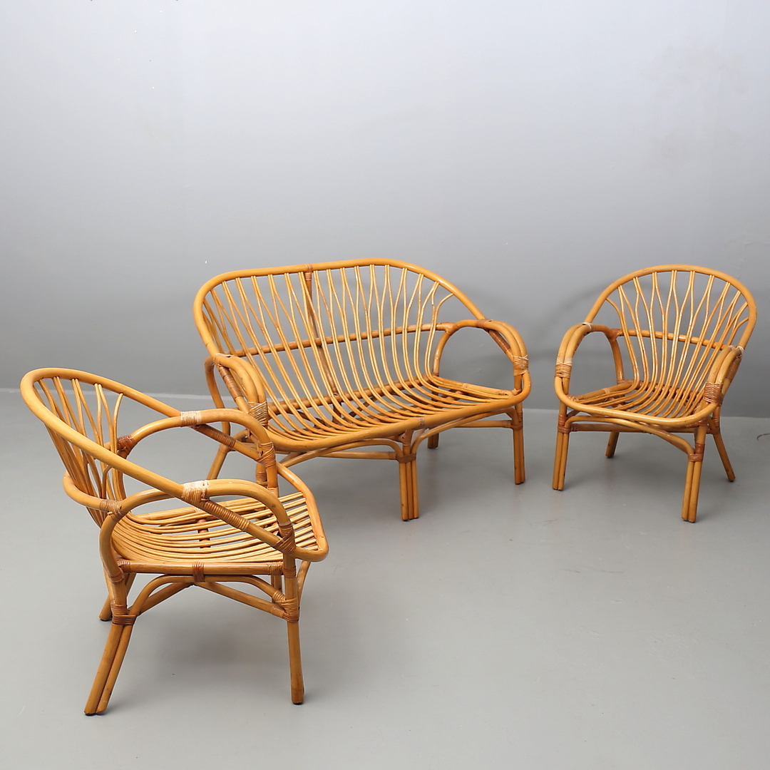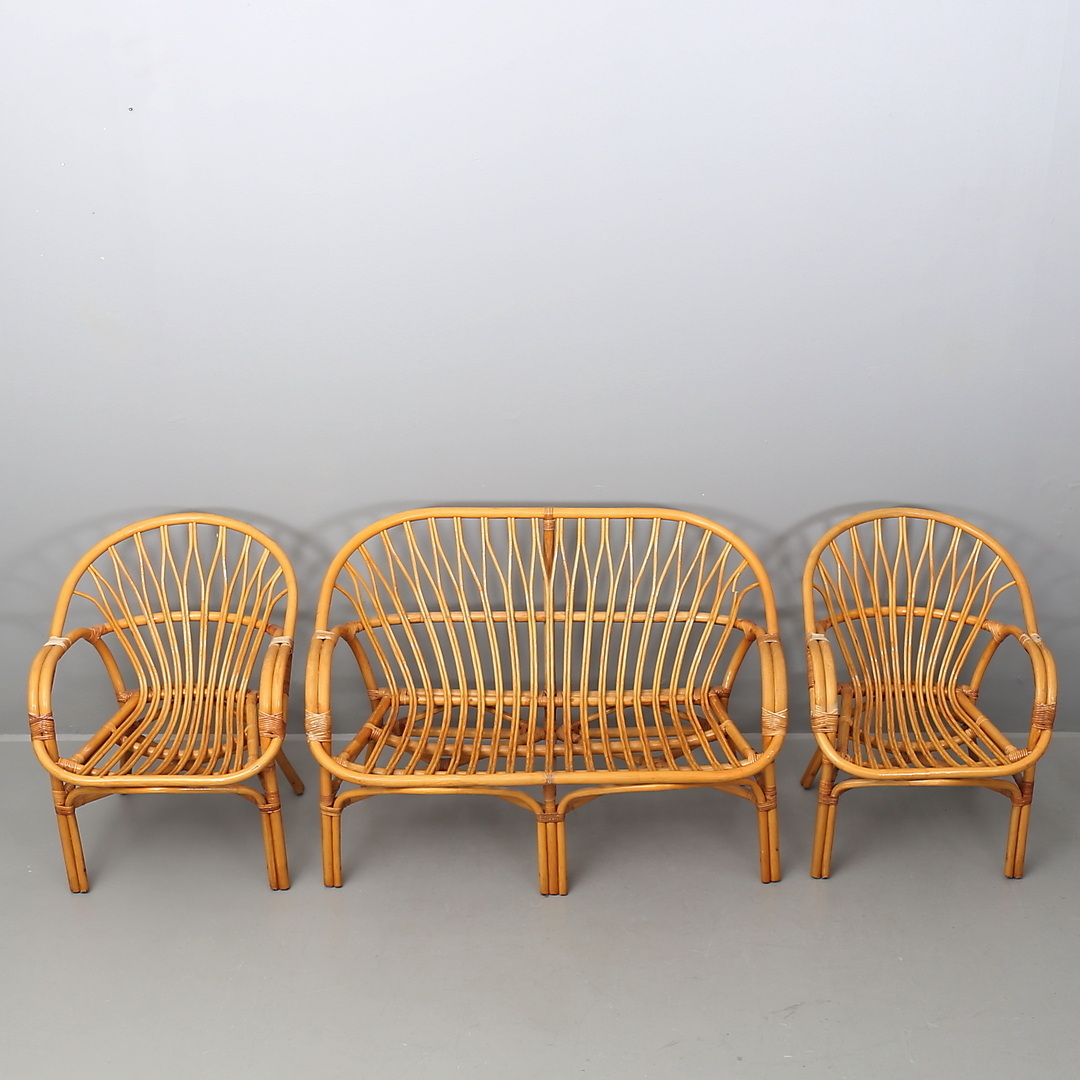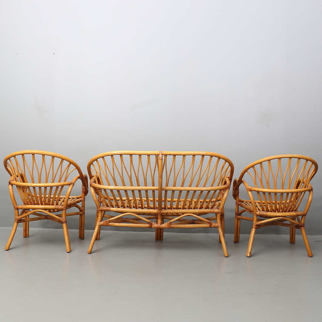 418358. SOFA OG LÆNESTOL, 3 dele, rattan.