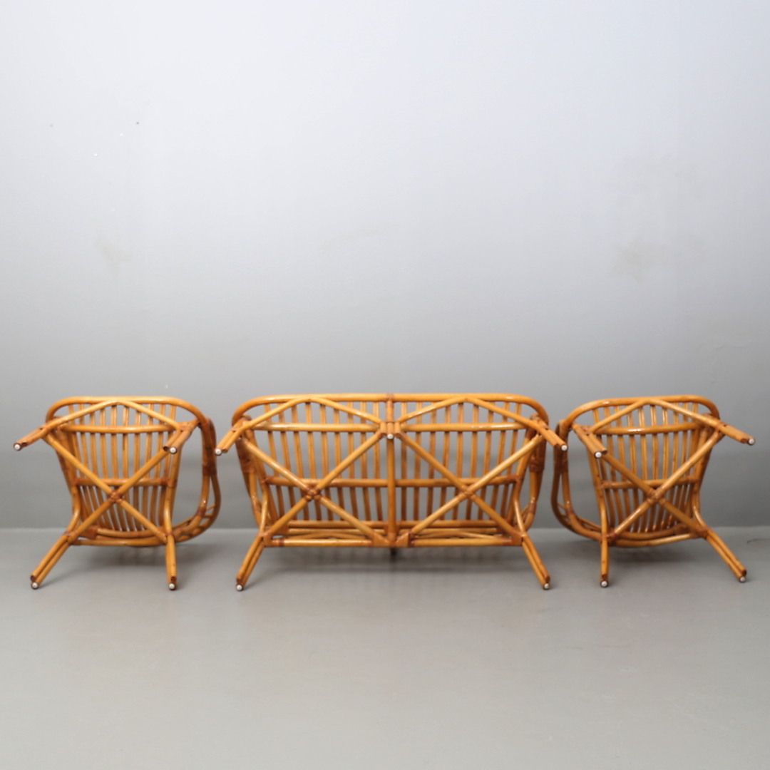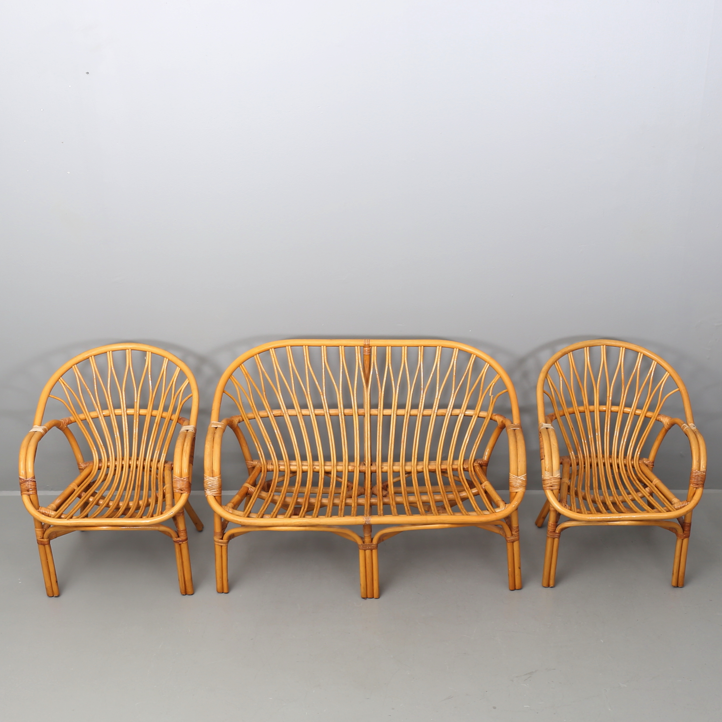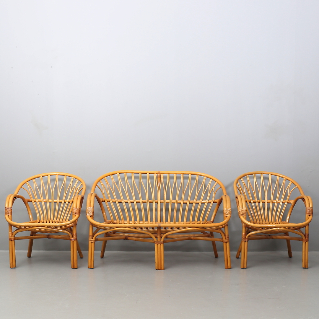 418358. SOFA OG LÆNESTOL, 3 dele, rattan.