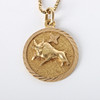 Rundt vedhæng med Tyren stjernetegn, bagpå med spansk tekst „abril mayo“ (april maj)