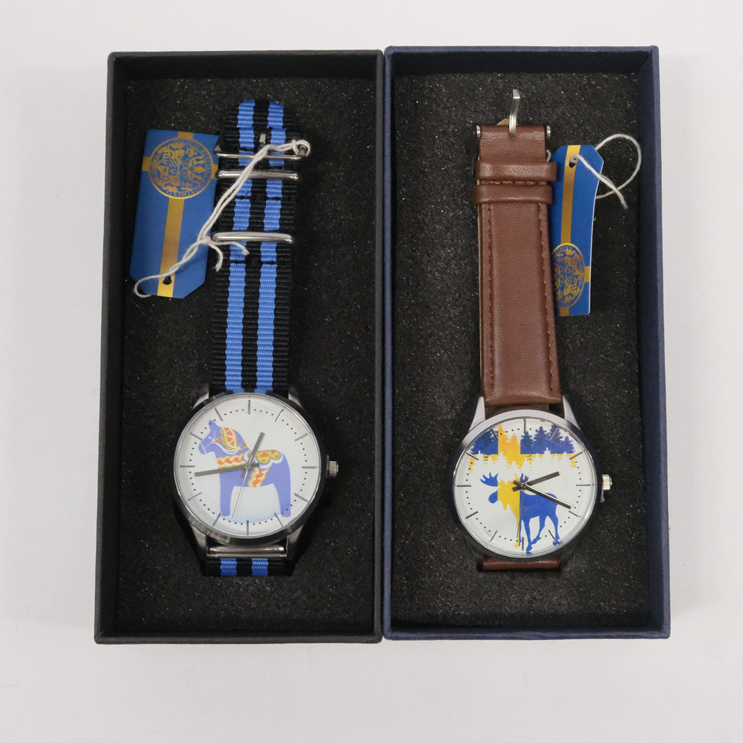 4187094. TO ARMBÅNDSURE. DALAHEST OG ELG.