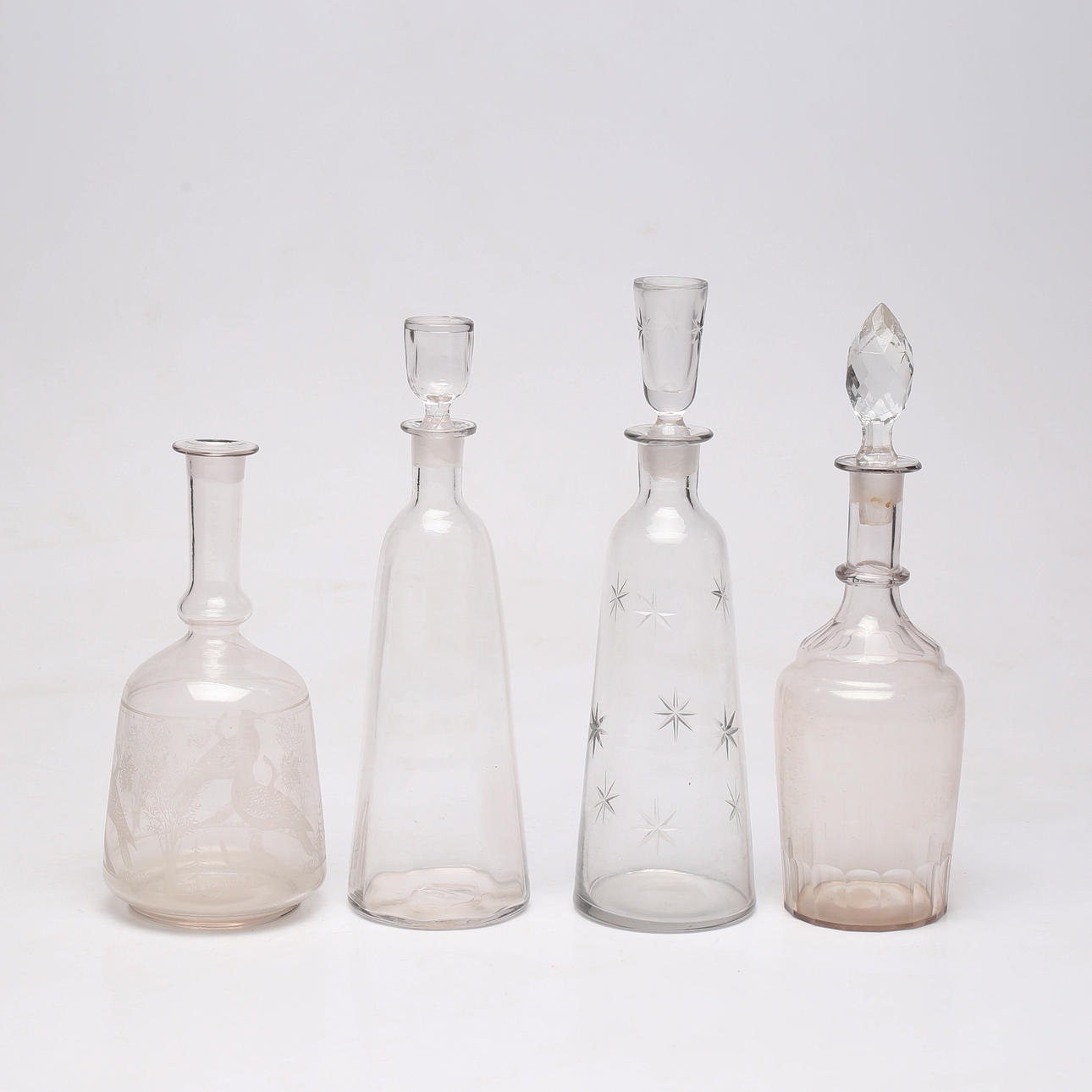 KARAFLER, 4 stk., glas, 1800/1900.