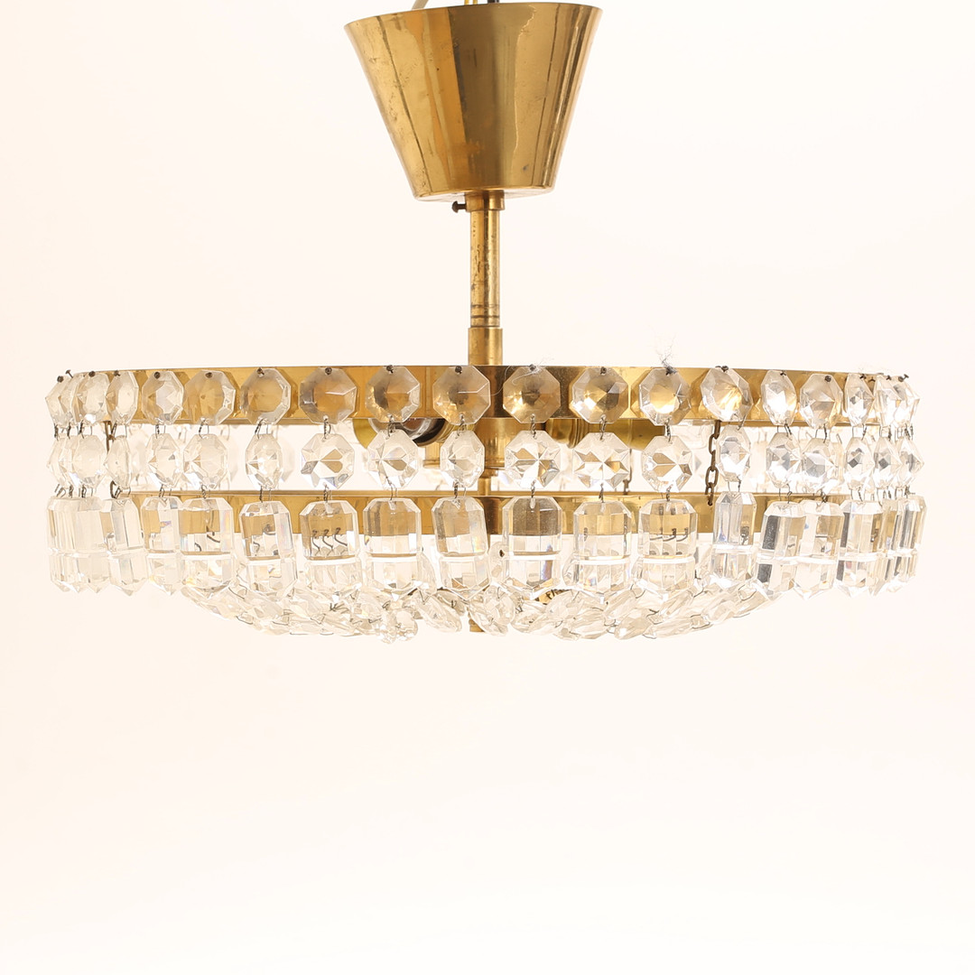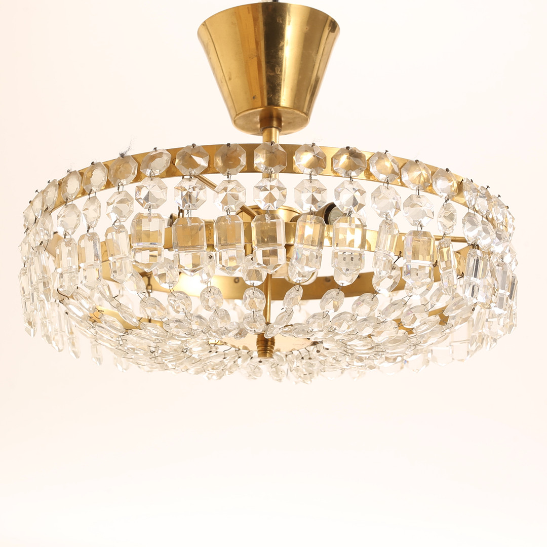 4187264. LOFTPLAFON, messing/krystal, 20. århundrede.
