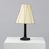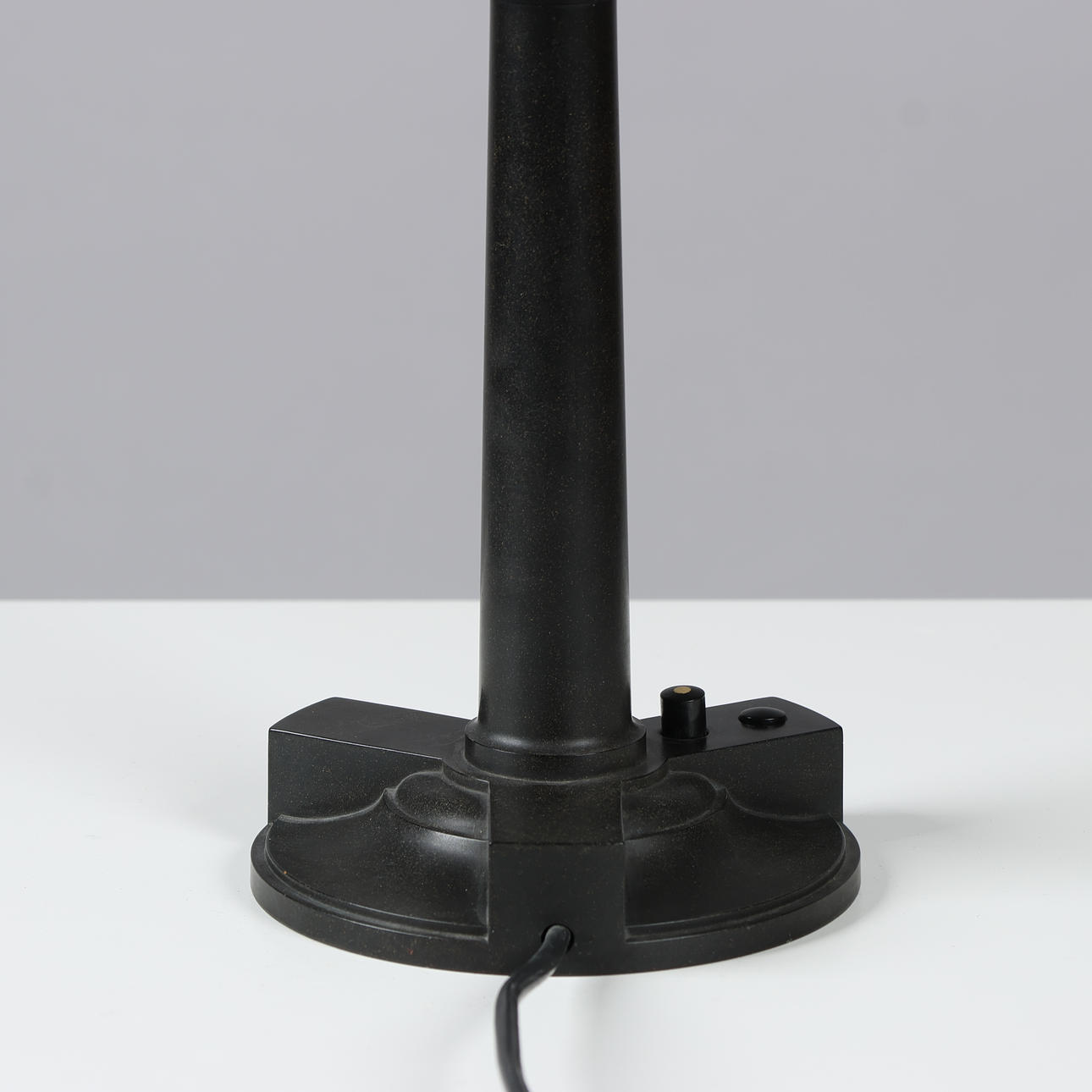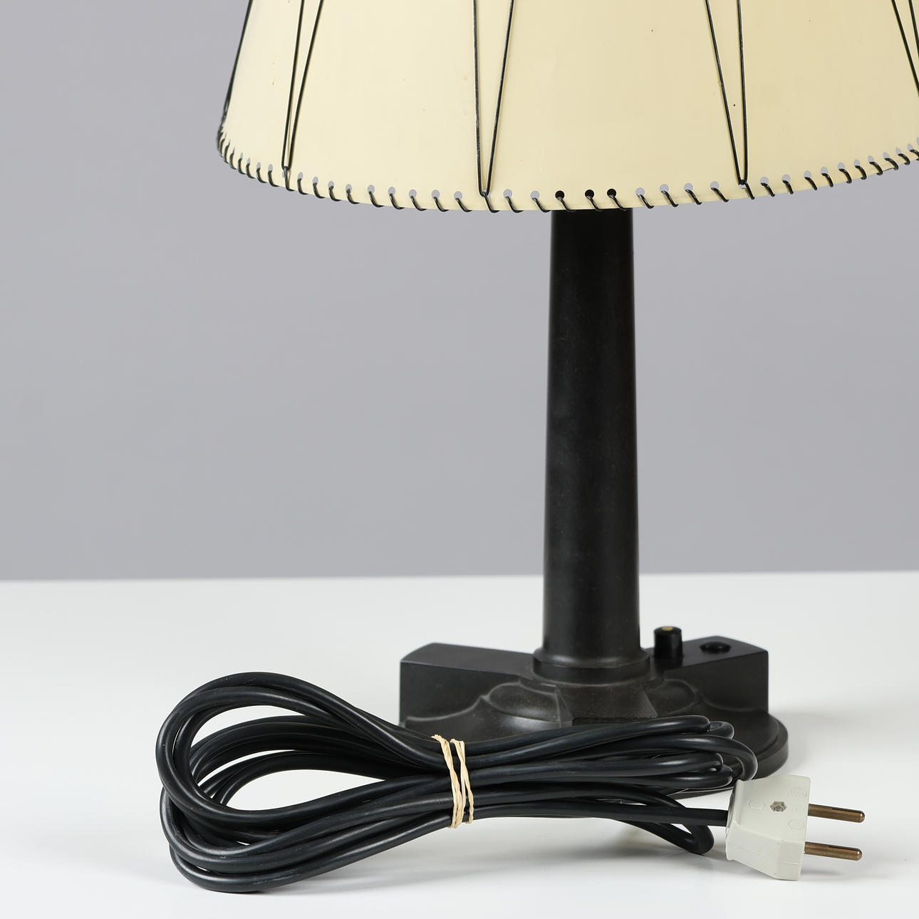 Bordlampe med fod og stamme af bakelit og med skærm af plast. Lyfa