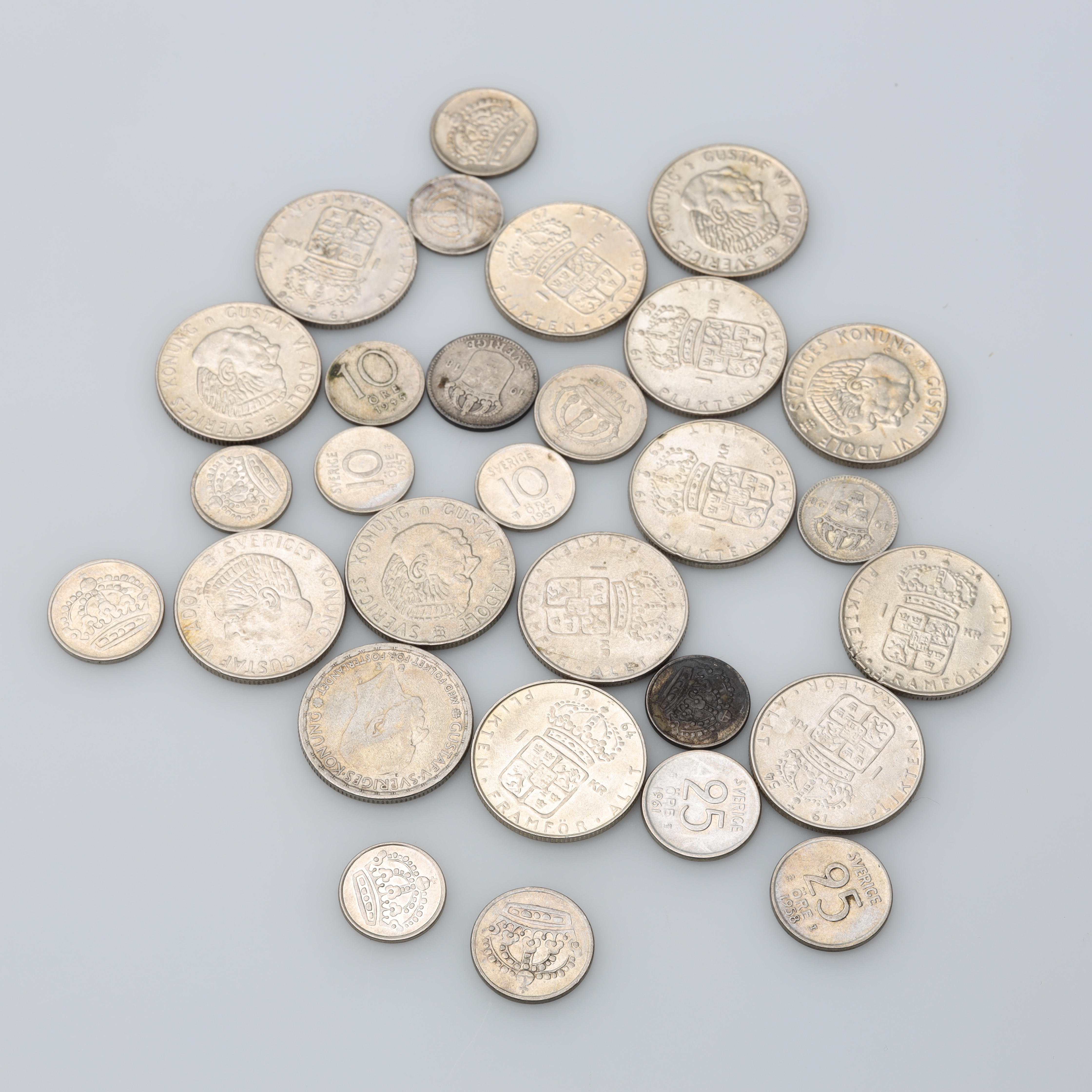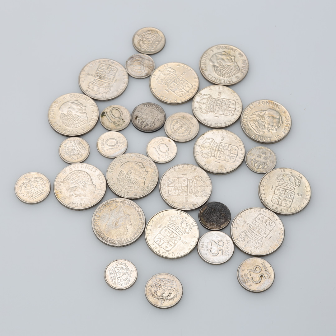 4188232. PARTI SØLV OG MØNTER vægt ca. 322 gram.