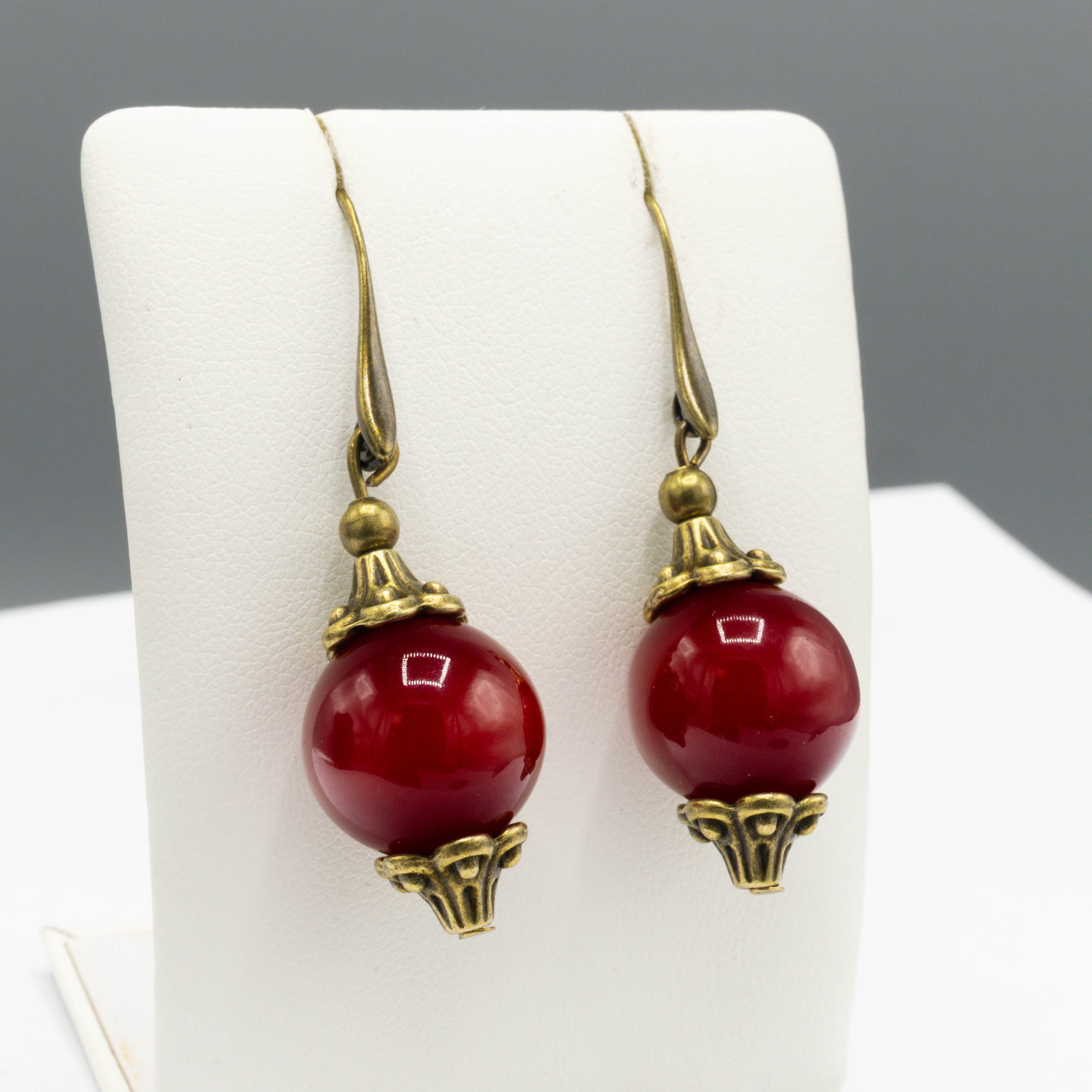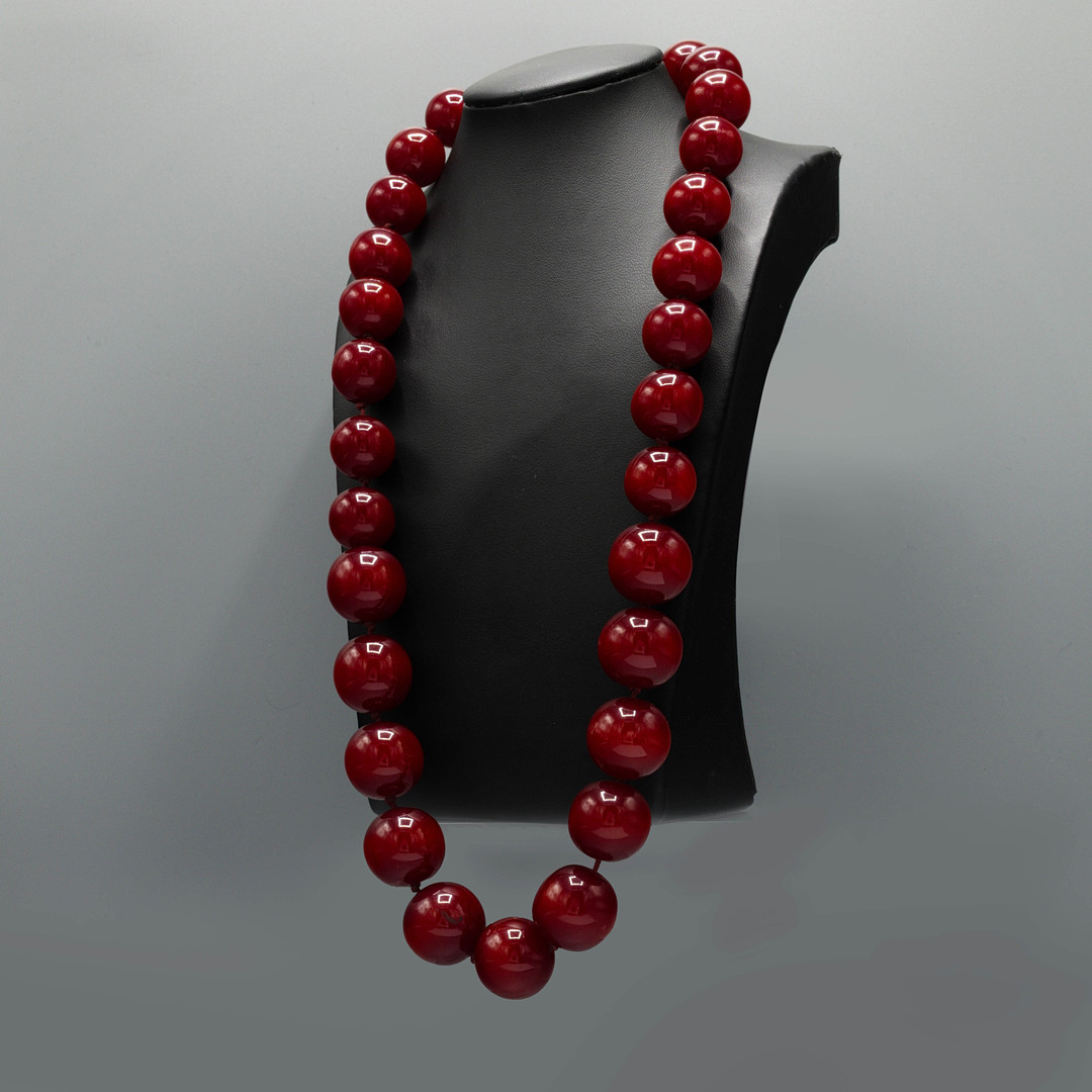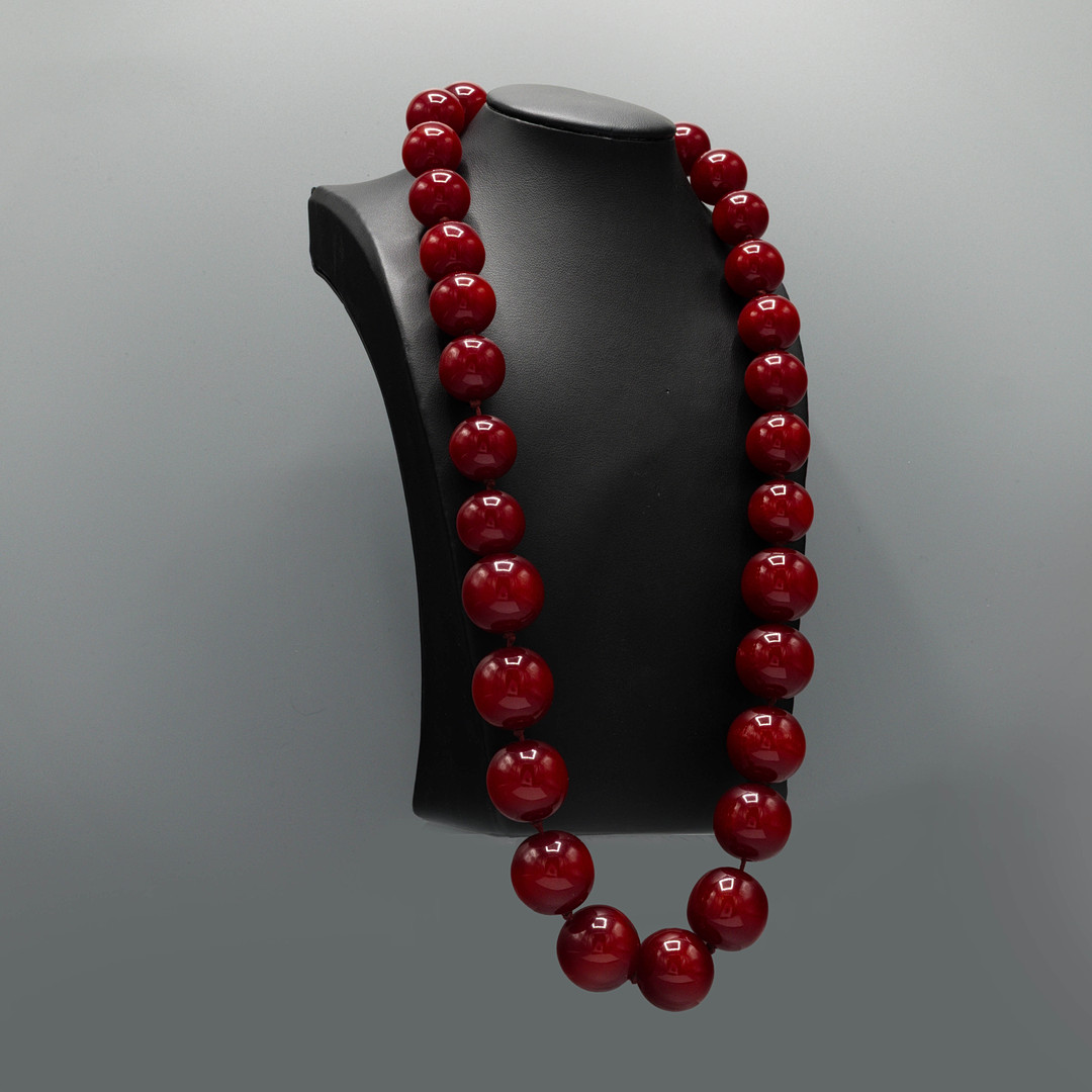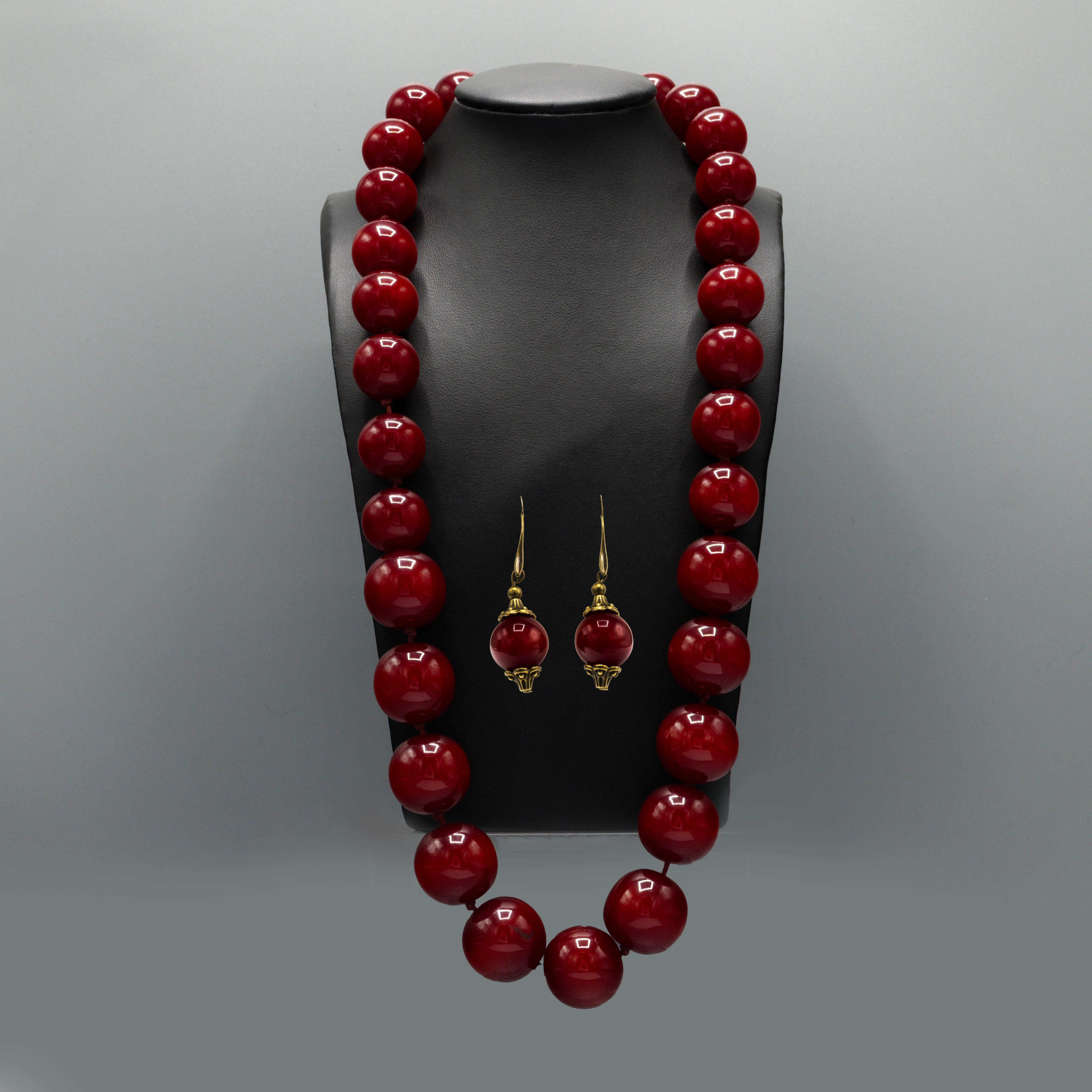 4188280. ET SÆT PERLEHALSKÆDE OG ØRERINGE AF KIRSEBÆRRAVTYPE.