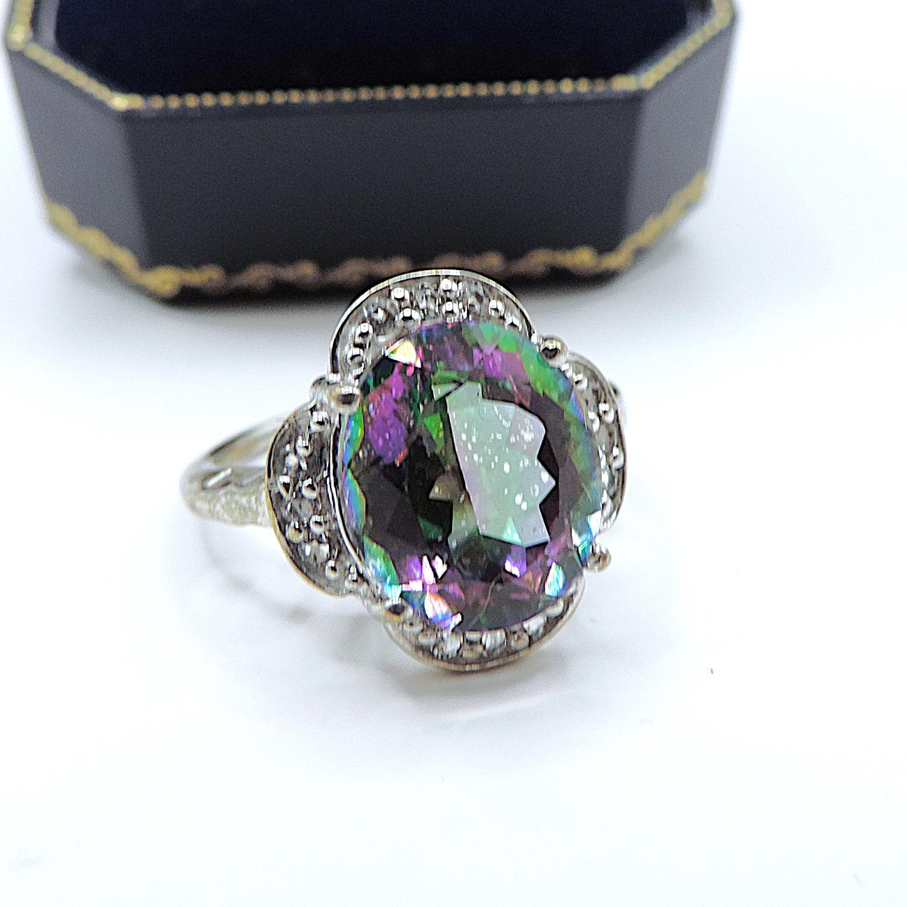 STERLINGSØLV 4,5 KARAT MYSTISK TOPAS RING.