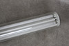 Glasrør og metalbeslag. Længde ca. 126 cm.