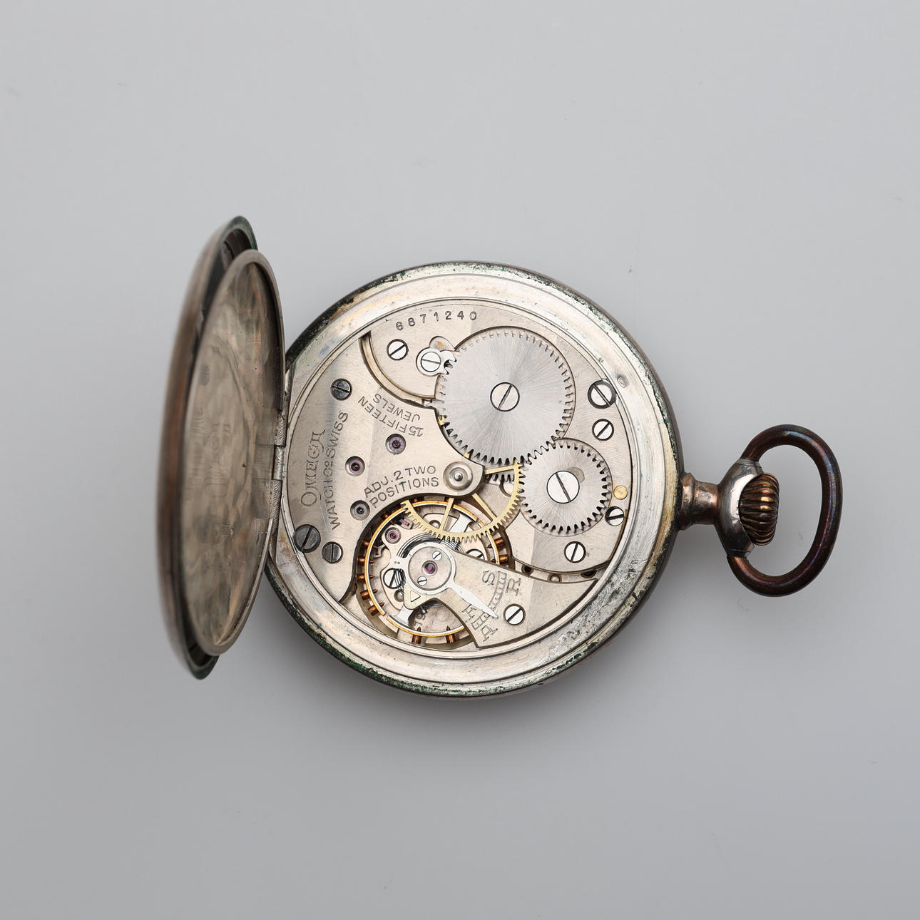 Brugsslitage, misfarvning, revne på urskiven. Arbejdede på tidspunktet for katalogisering. Der ydes ingen funktionel garanti.