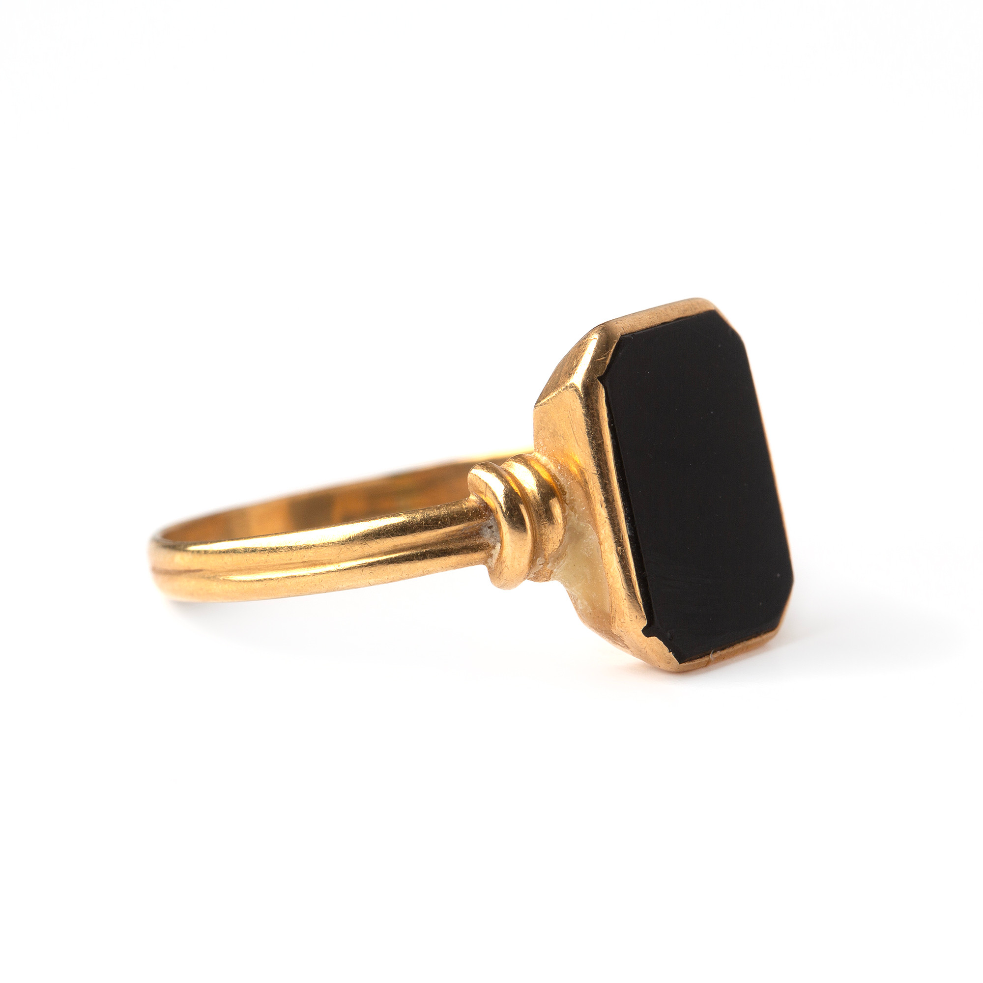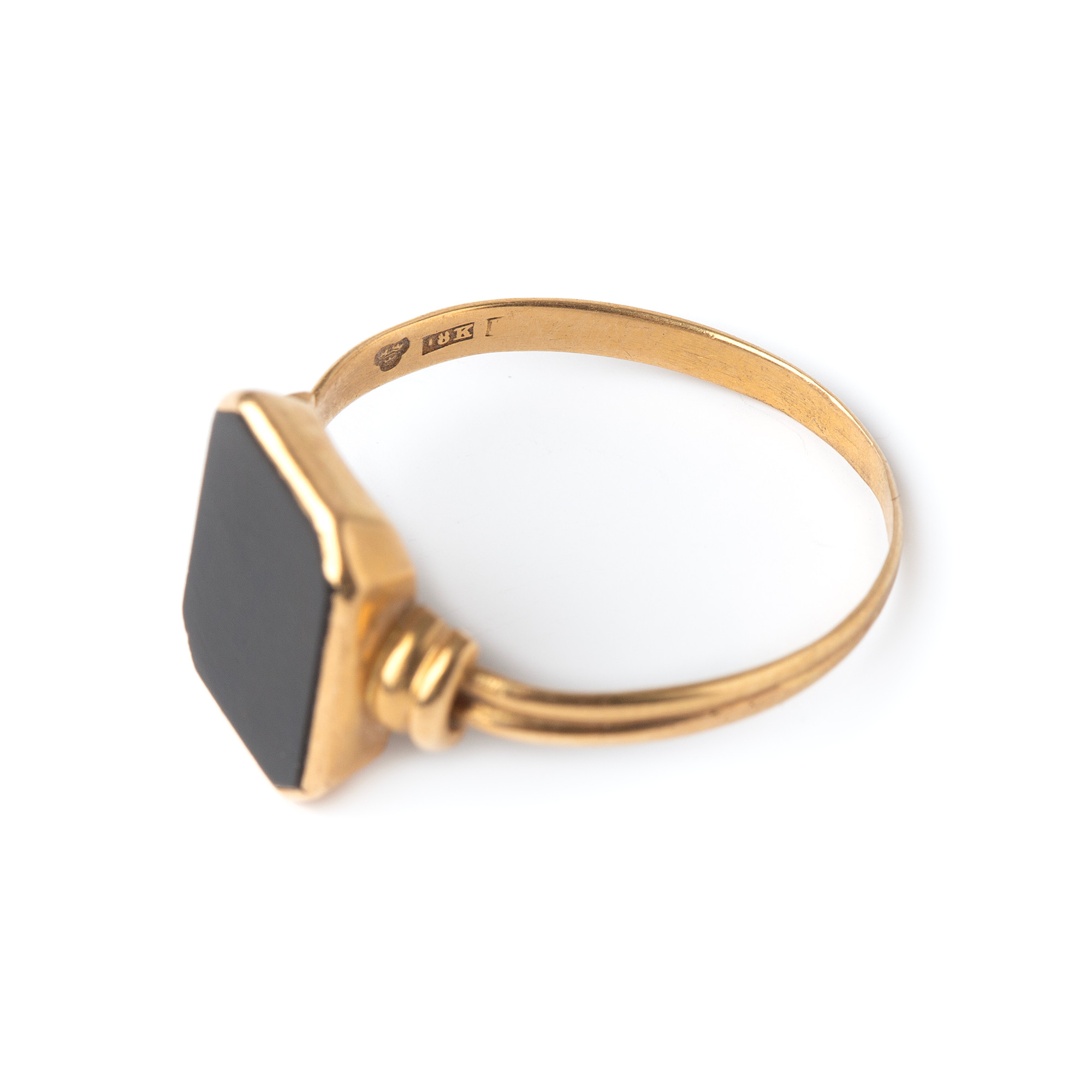 4195732. RING, 18K guld og onyx, kattefod stemplet.