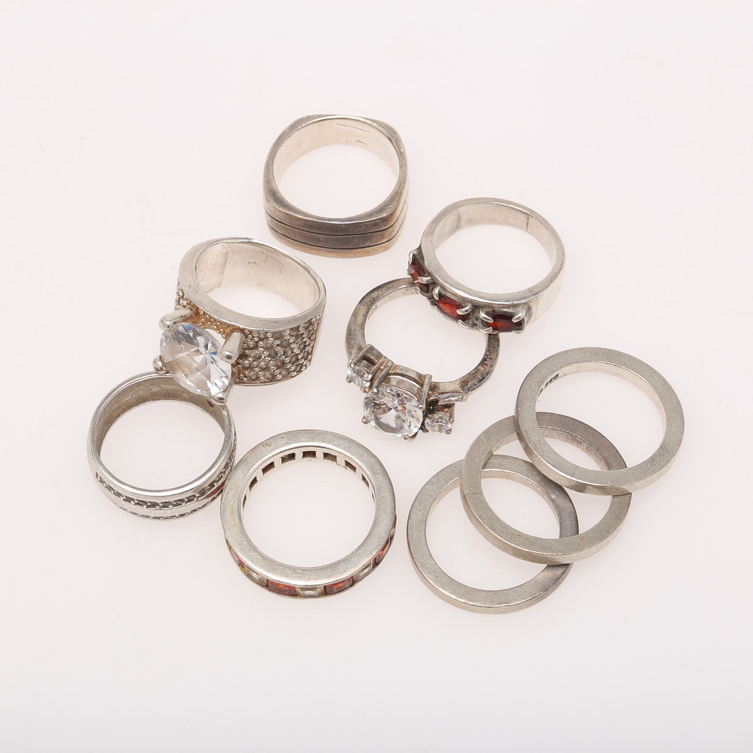 4196479. RINGE, 9 stk., sølv, herunder Frits Heiring.
