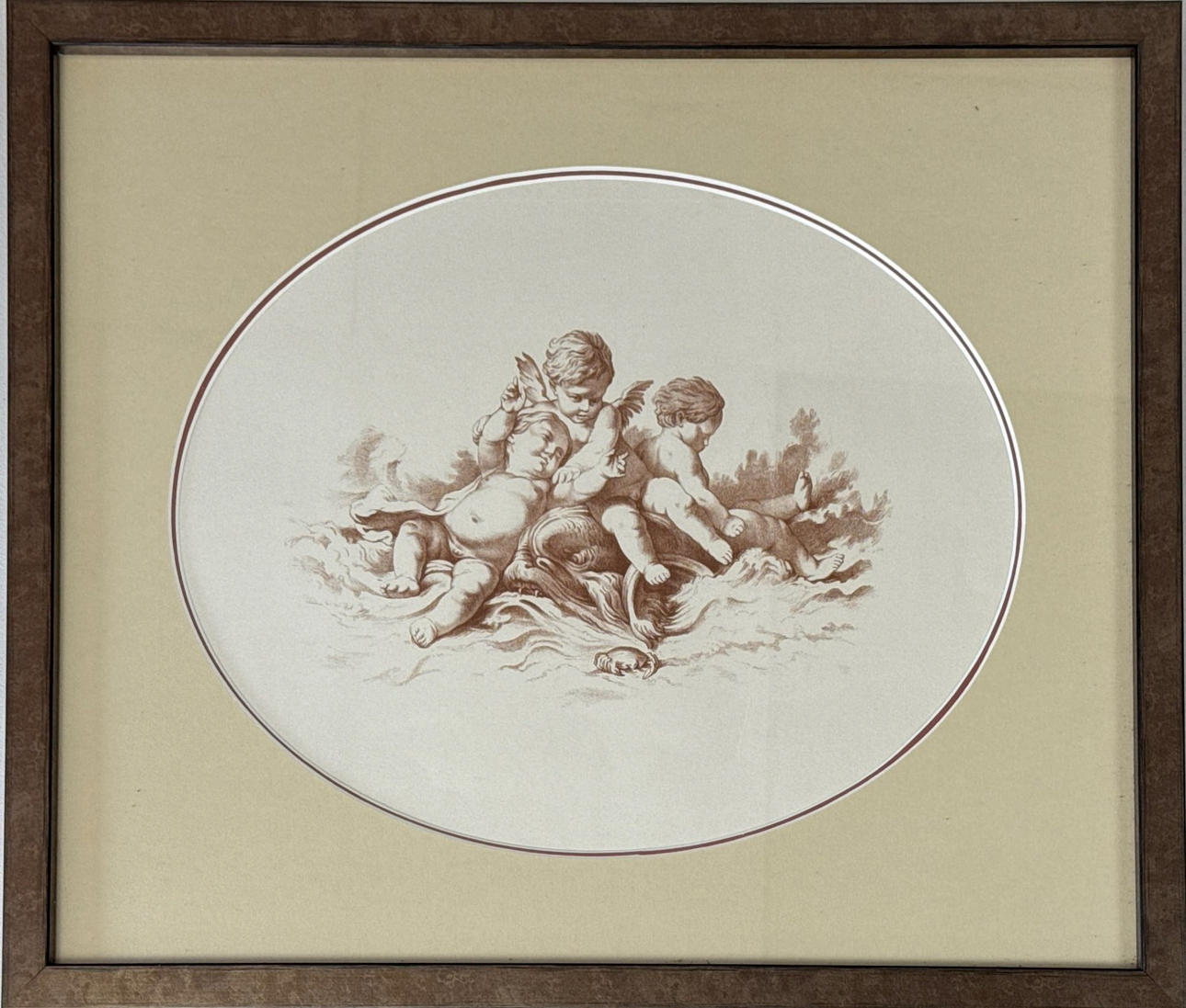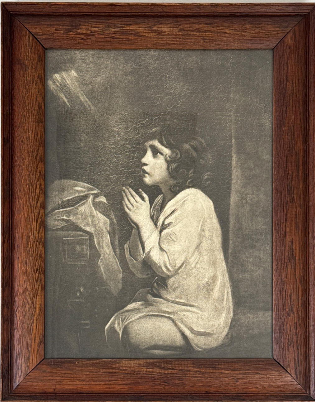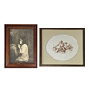 Indramningstryk i egetræ, 1920'erne, rammestørrelse 44 x 54cm. Sammen med et yderligere indrammet tryk.