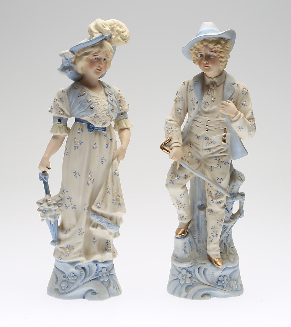 419663. FIGURER, 1 par, bisque, 20. århundrede.