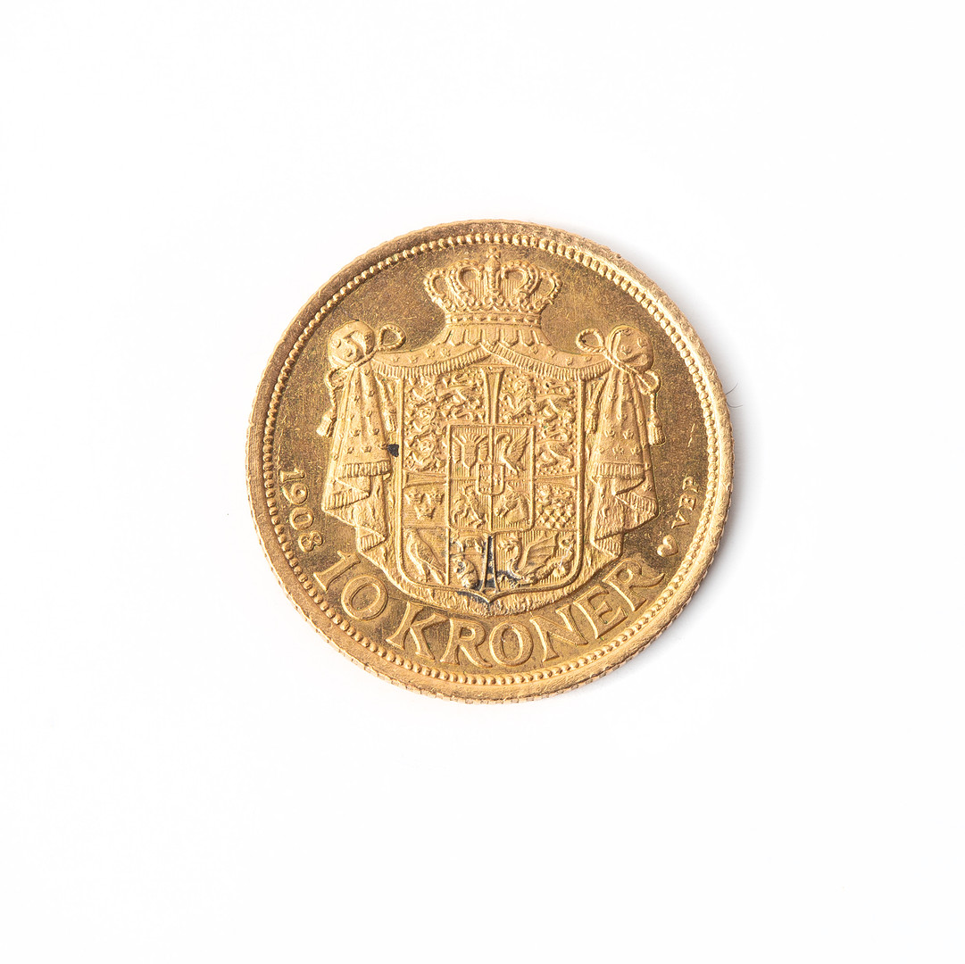 4197745. GULDMØNT Danmark 10kr, 1908.