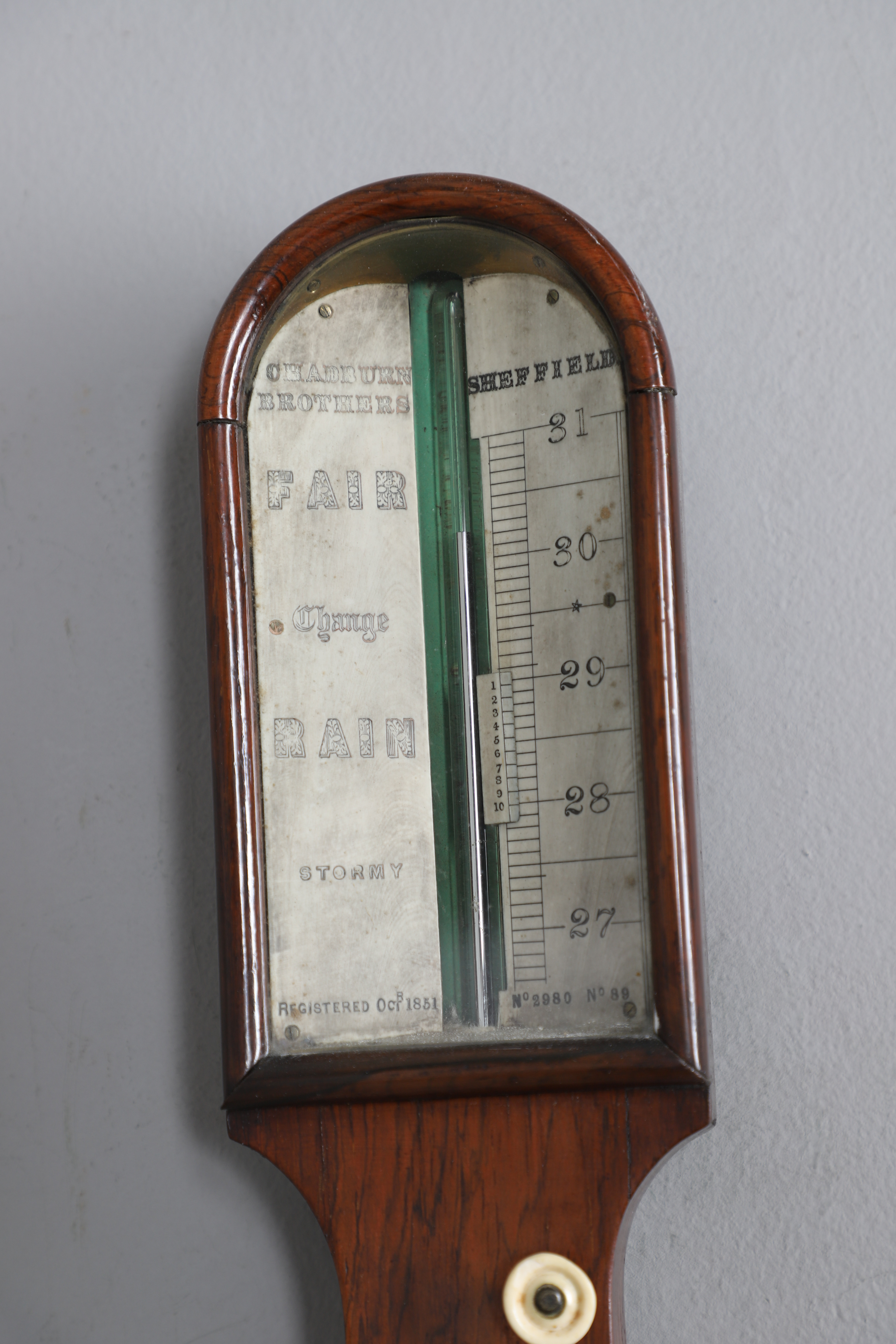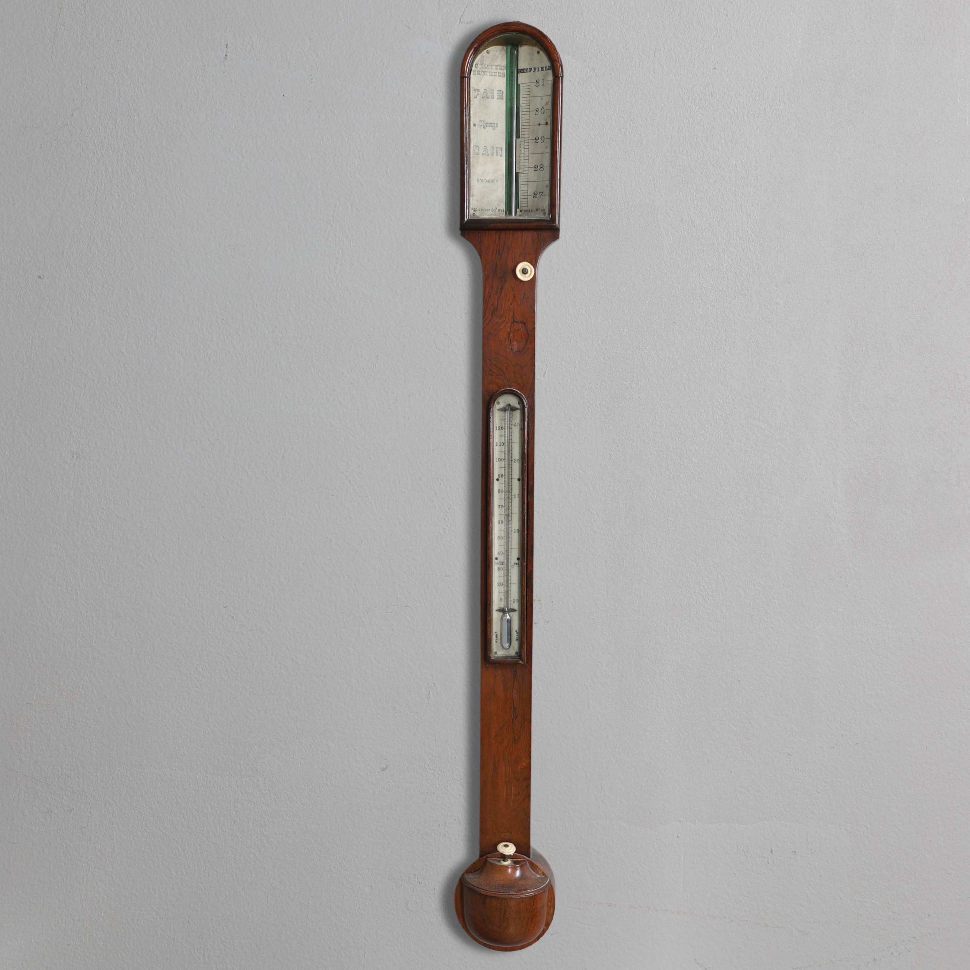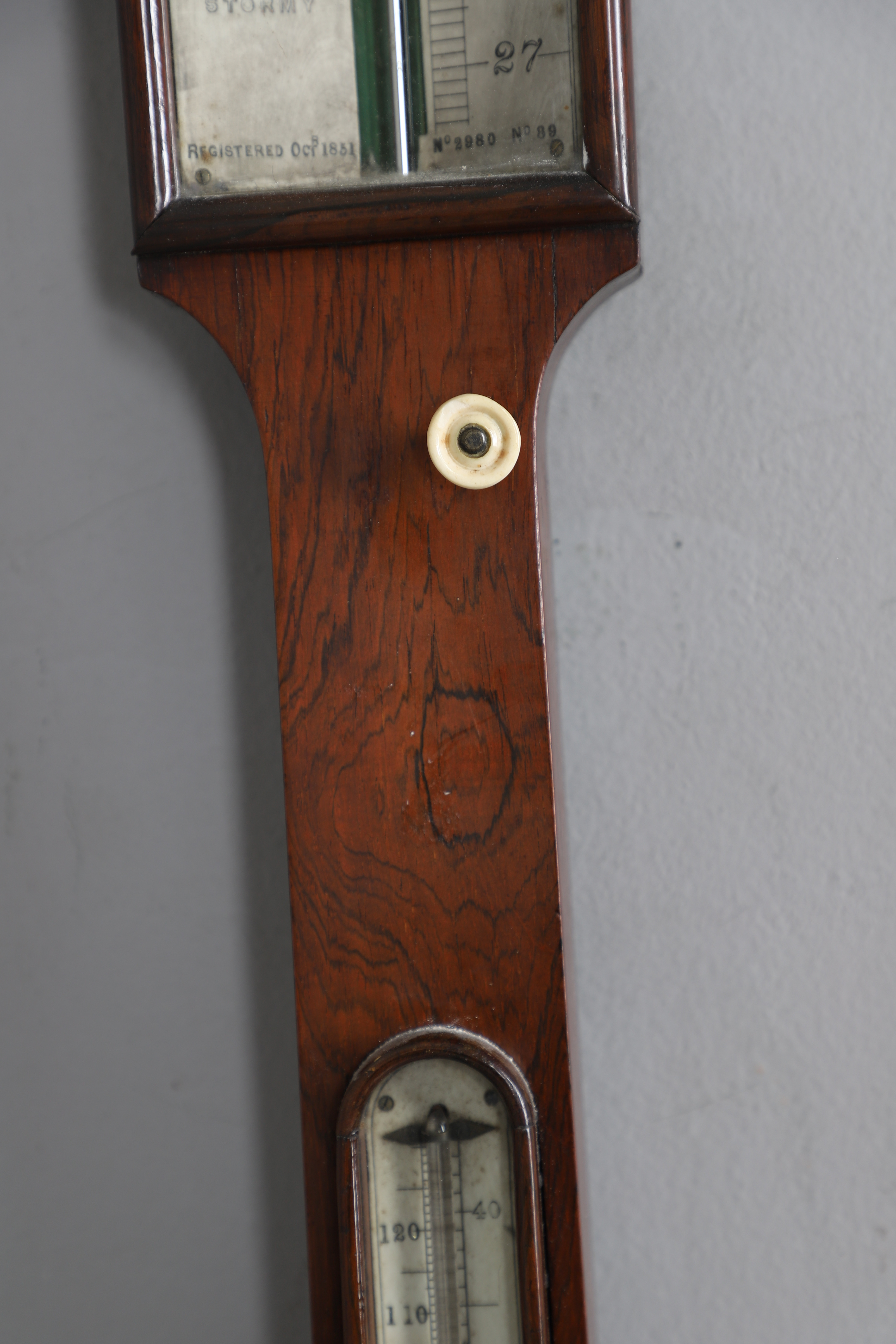 4197975. ET PALISANDERPINDBAROMETER FRA DET 19. ÅRHUNDREDE.