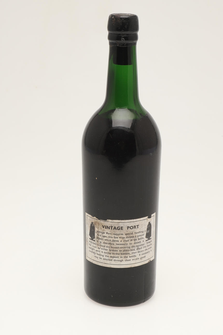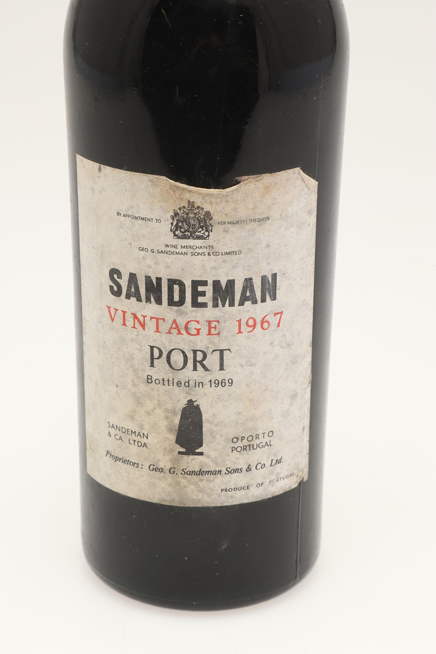 En enkelt flaske Sandeman Vintage Port 1967, med originale etiketter og stadig forseglet. 29,5 cm høj