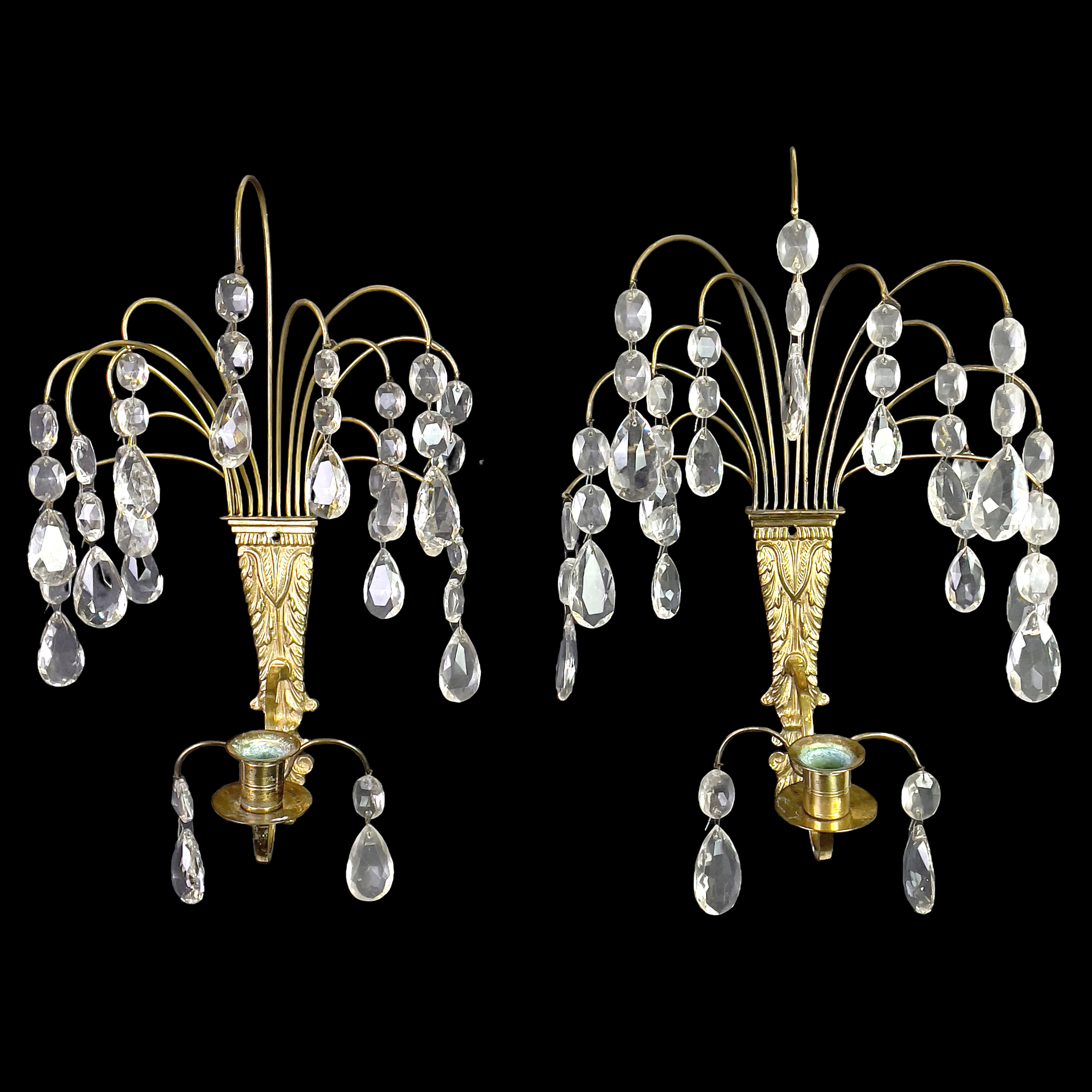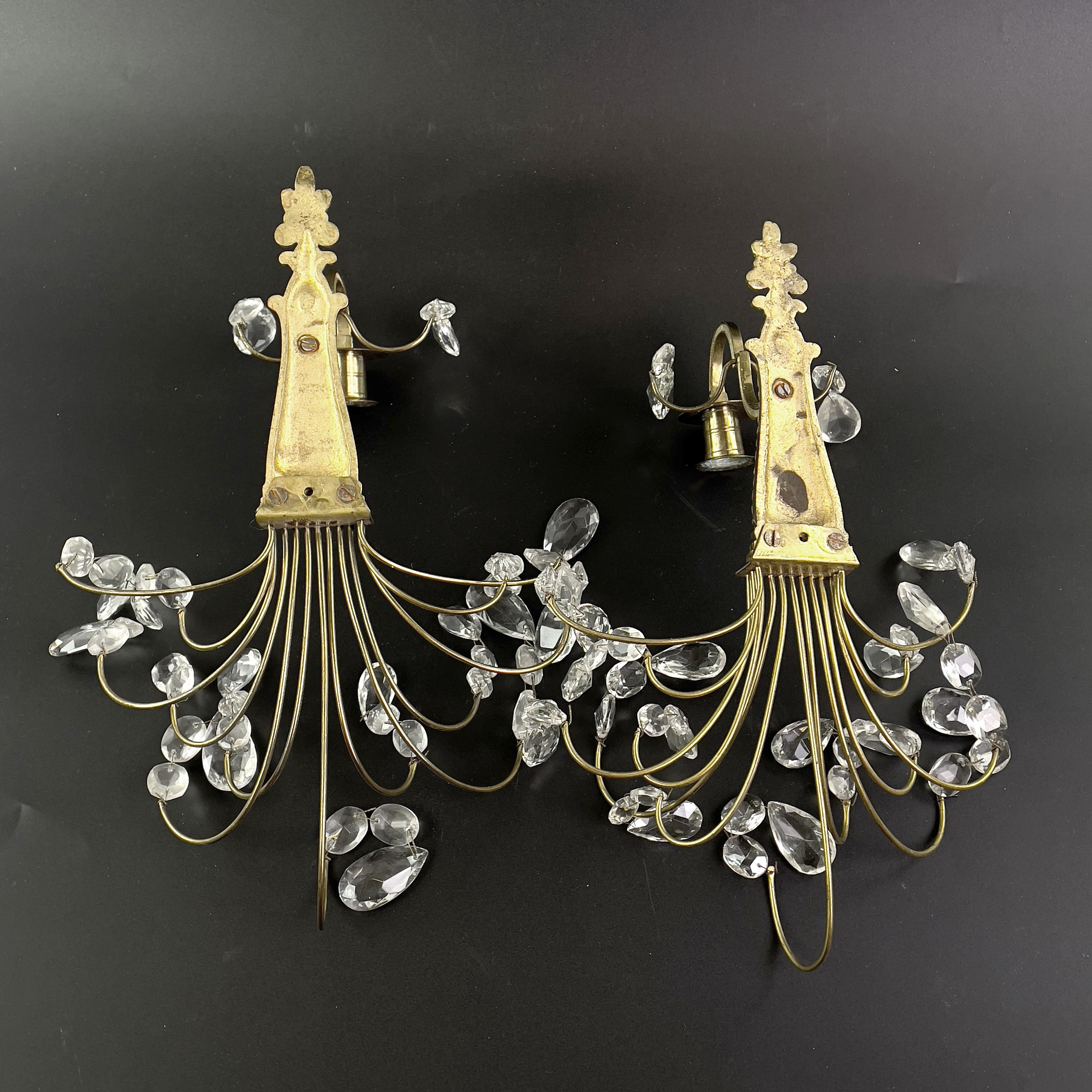 4199439. Væglamper, 1 par, messing, hængt med prismer.