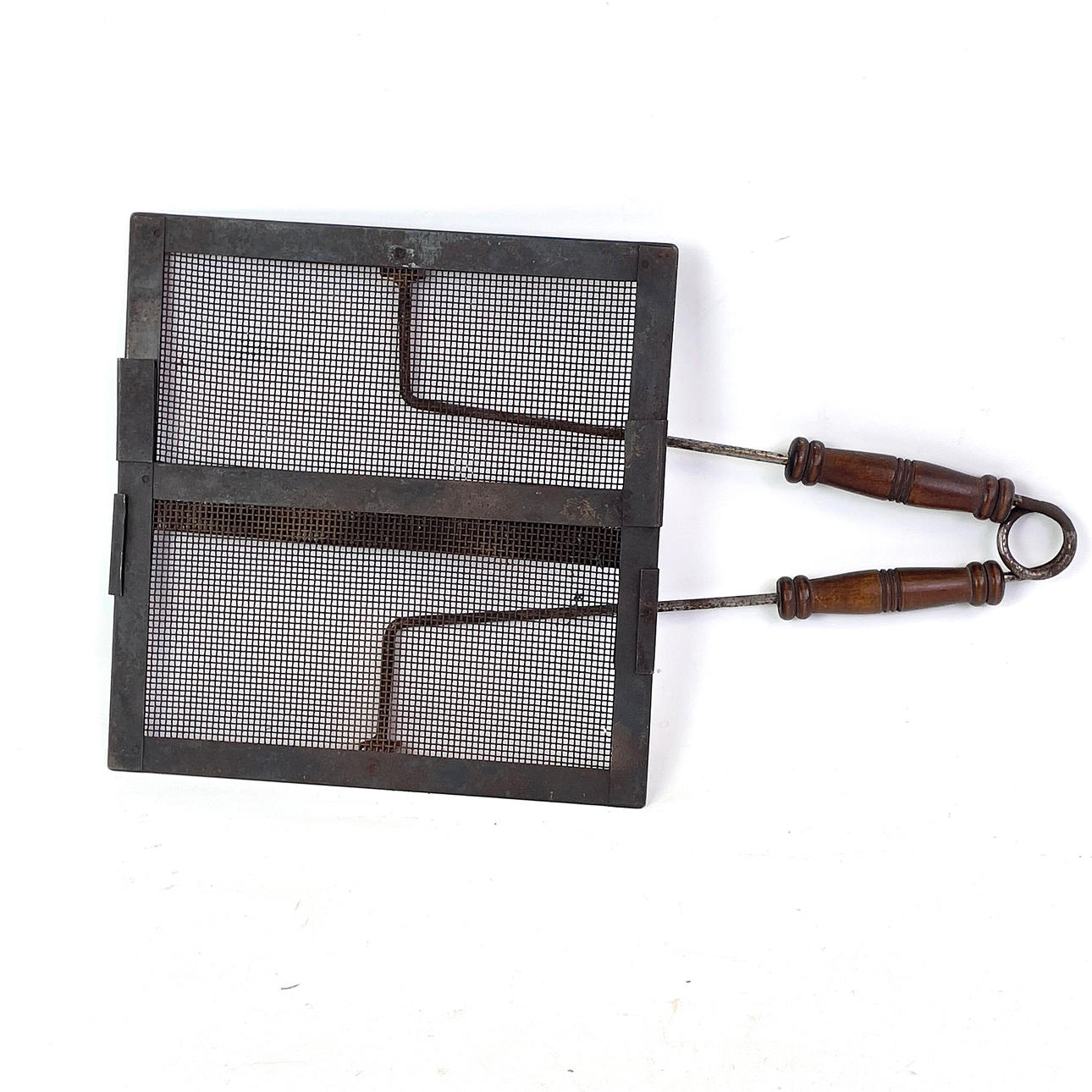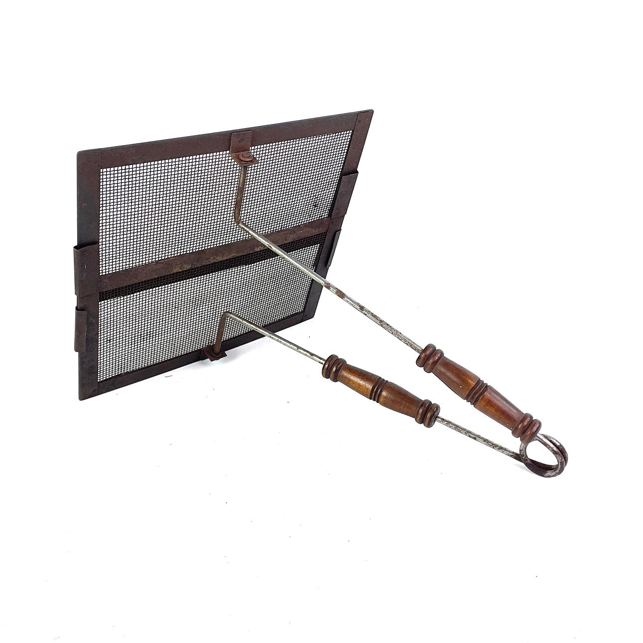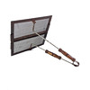 Gnistbeskyttelse, træhåndtag, bredde ca. 30 cm, højde ca. 29 cm, længde med håndtag ca. 52 cm.