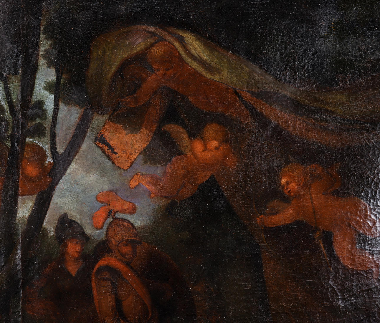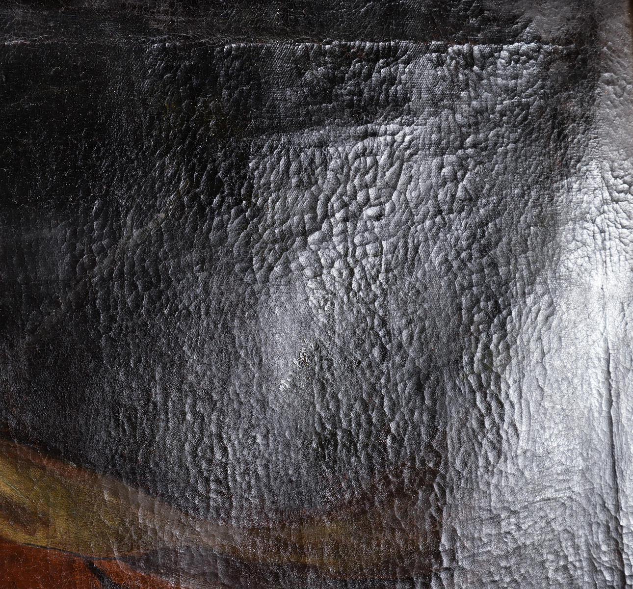 Overfladeslitage. Overflade snavs. Retouchering. Lærredlag.