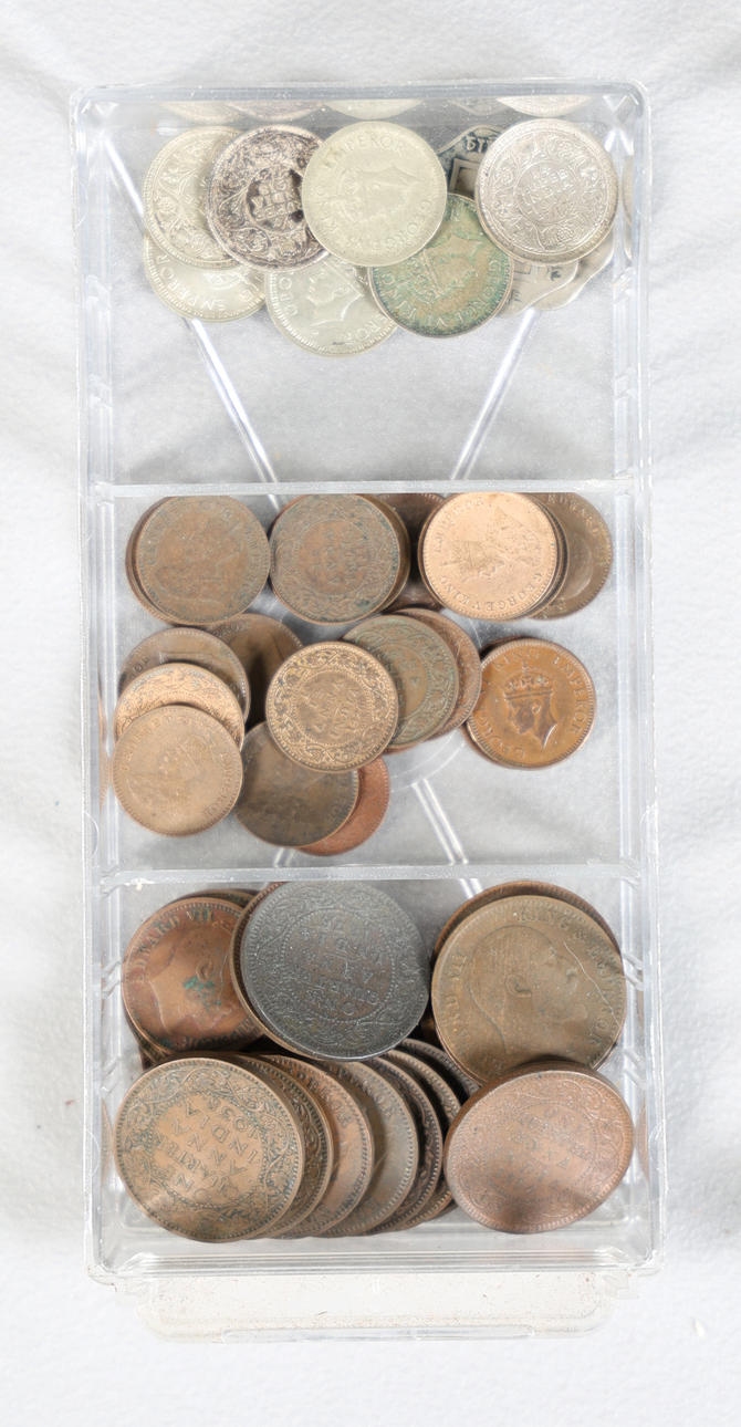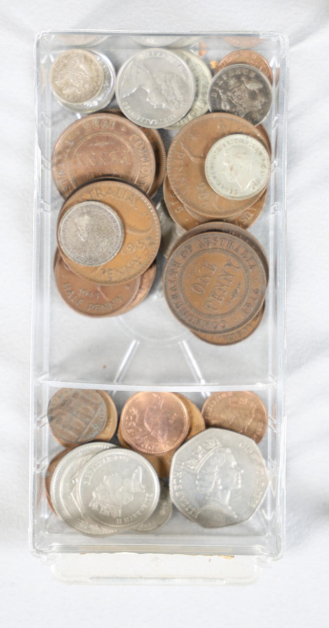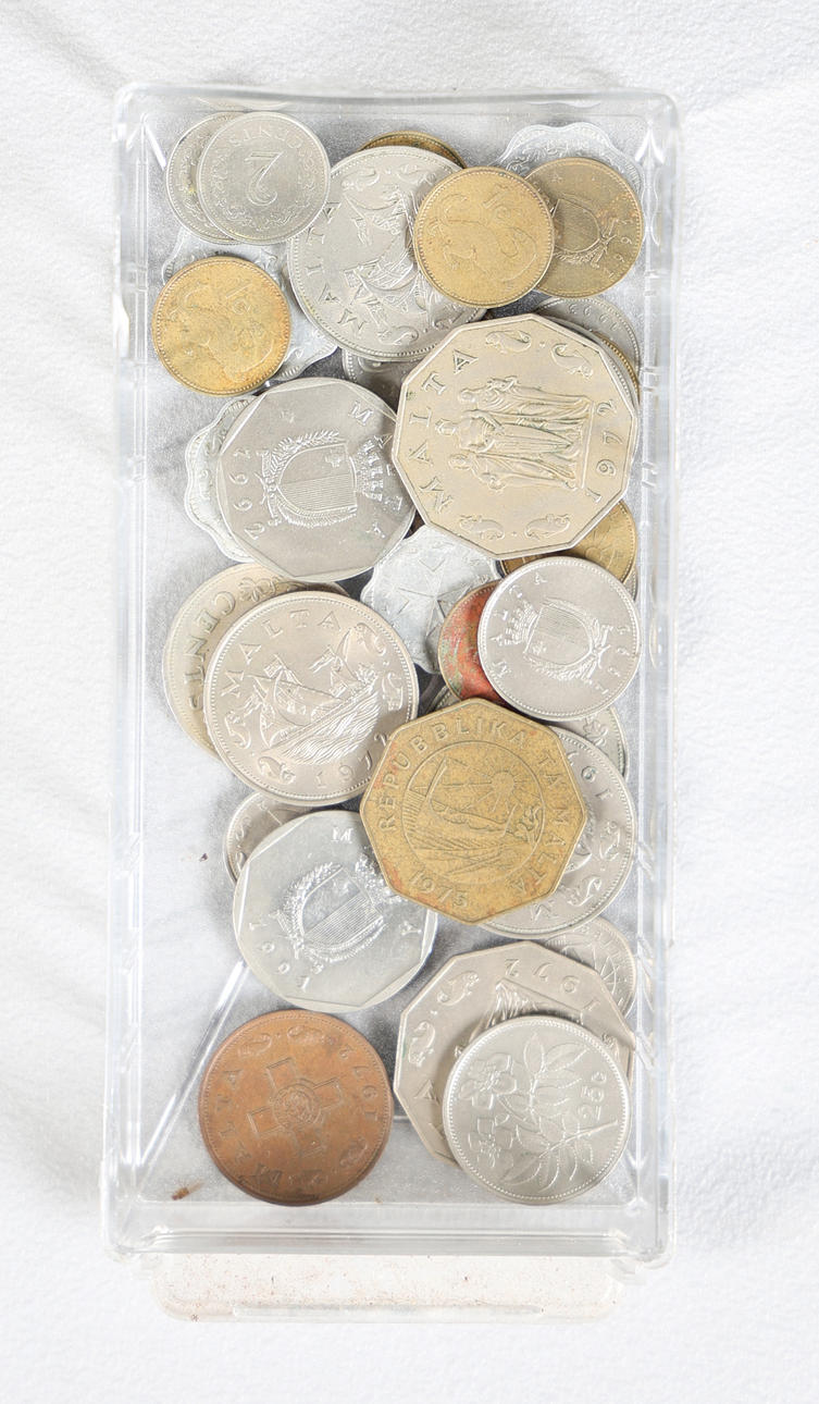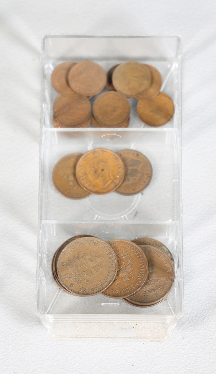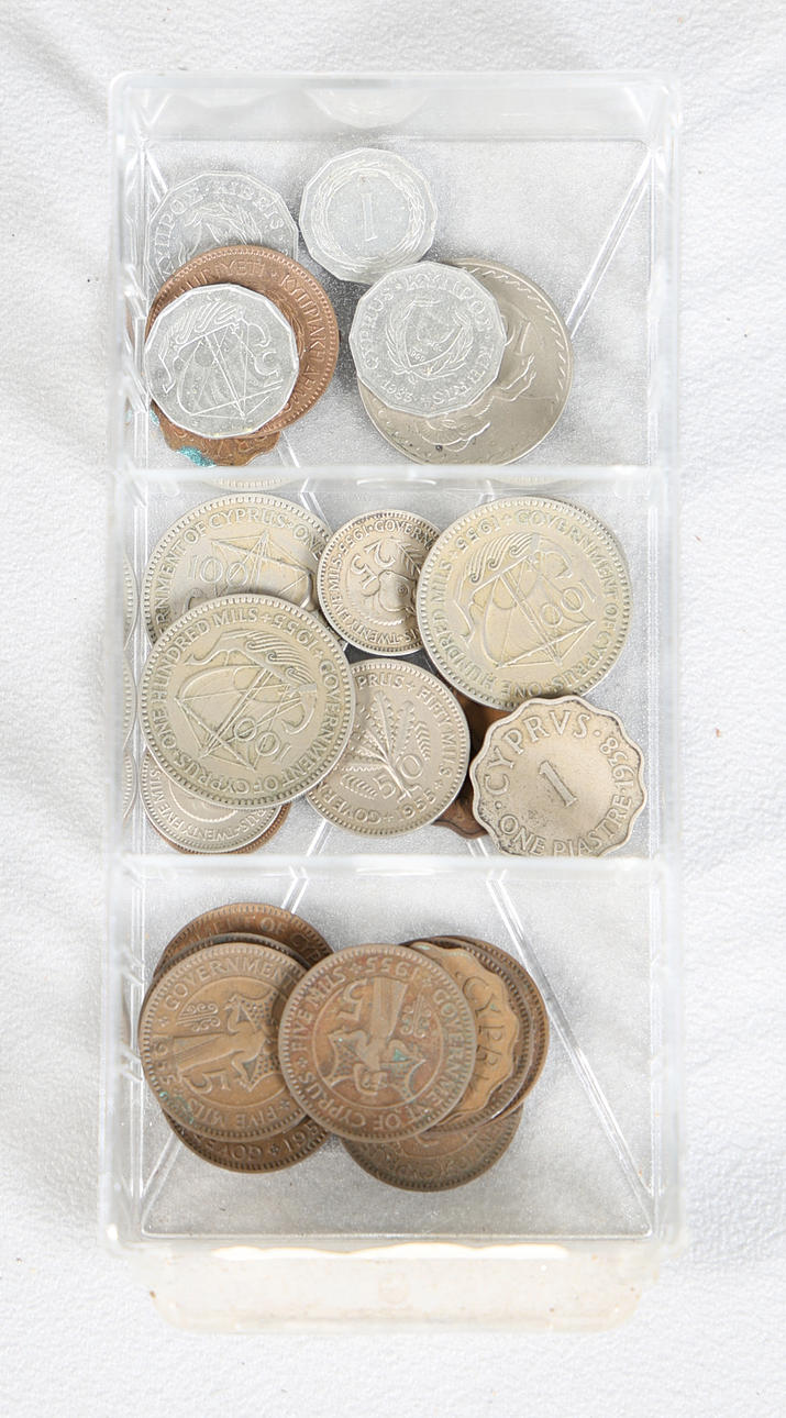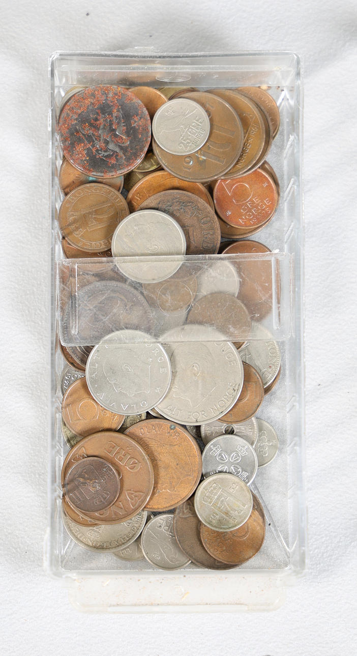 anbragt i to møntindsamlede sæt bakker til inkluderede mønter fra USA, Sydafrika, Canada, Fiji, Cypris, New Zealand, usorteret.