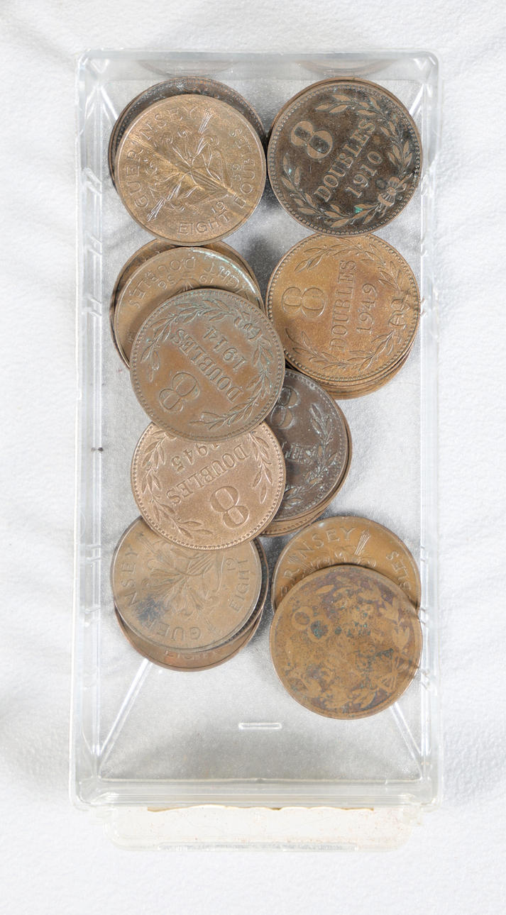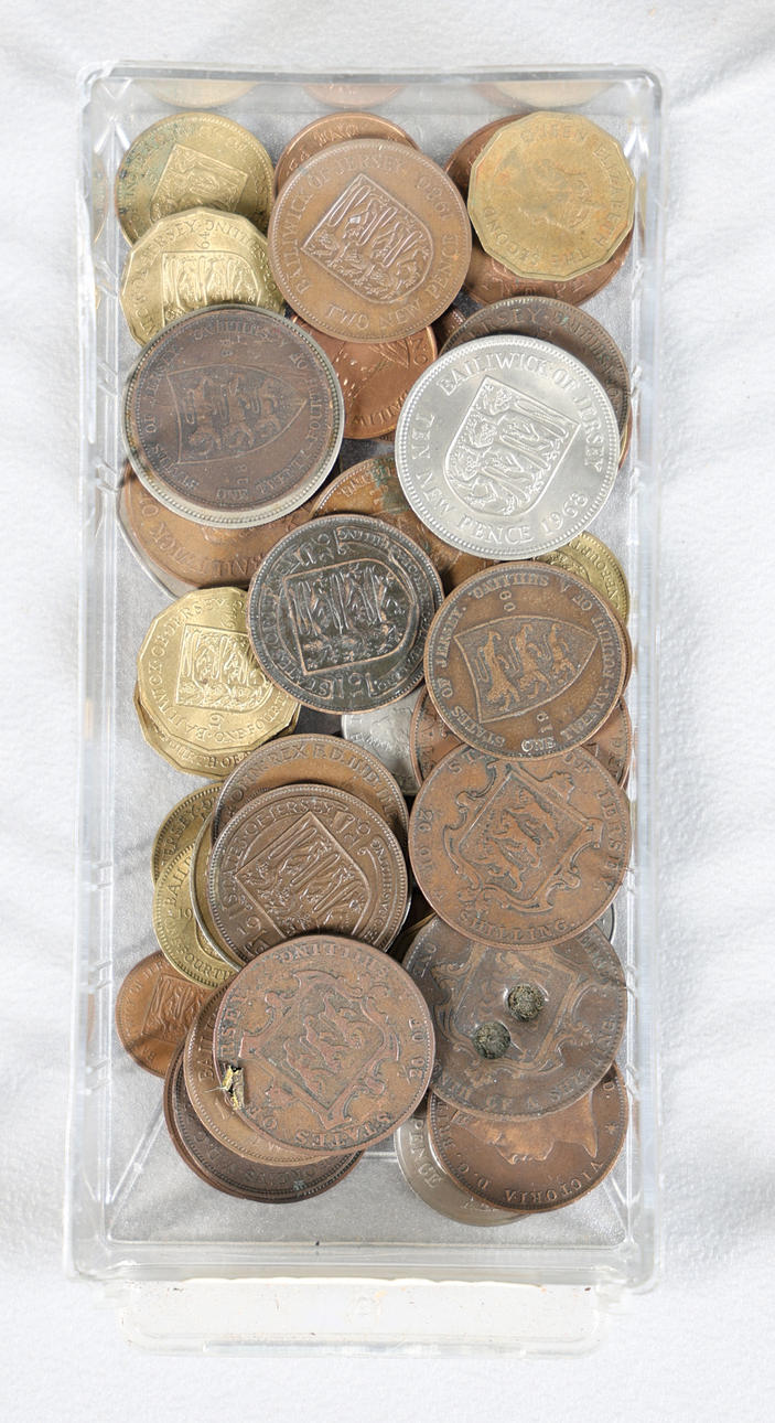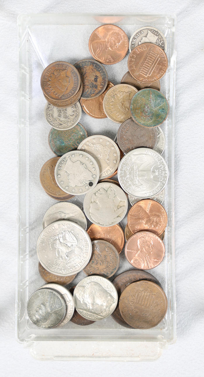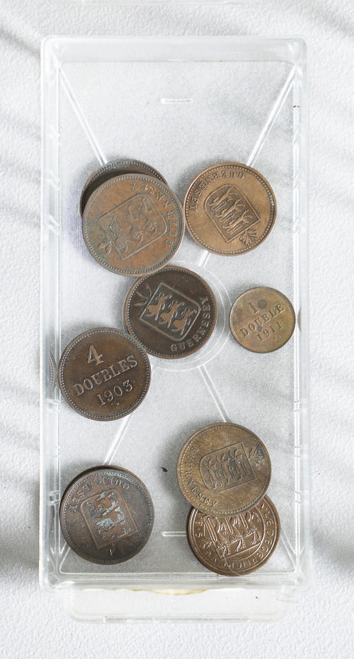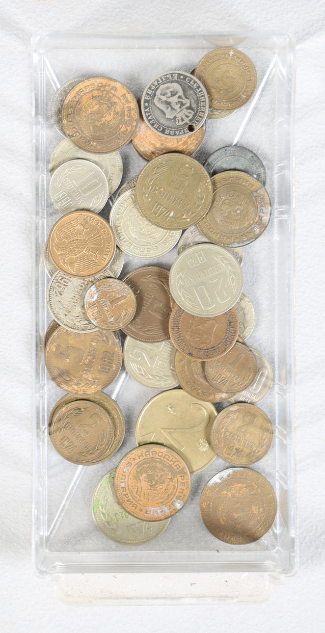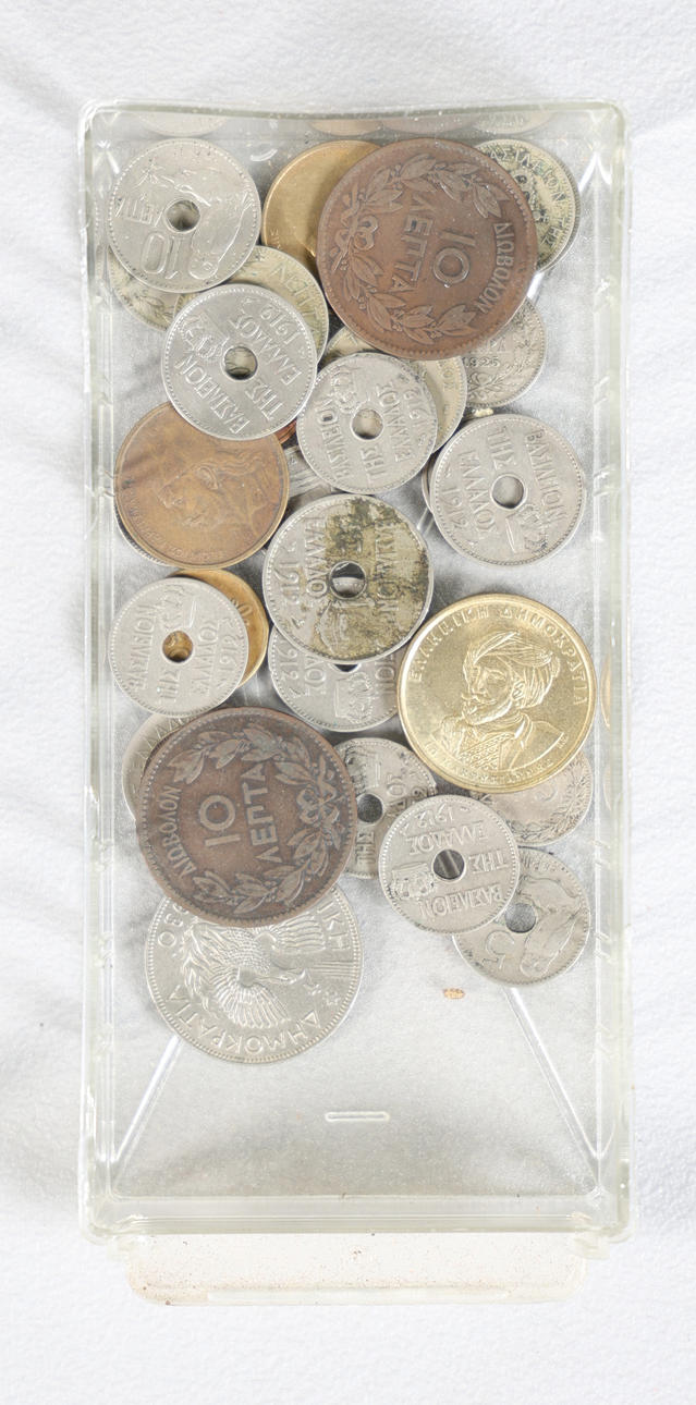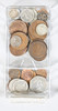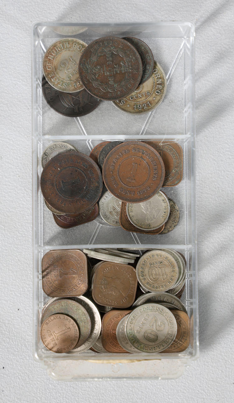 anbragt i to møntindsamlede sæt bakker til inkluderede mønter fra USA, Sydafrika, Canada, Fiji, Cypris, New Zealand, usorteret.