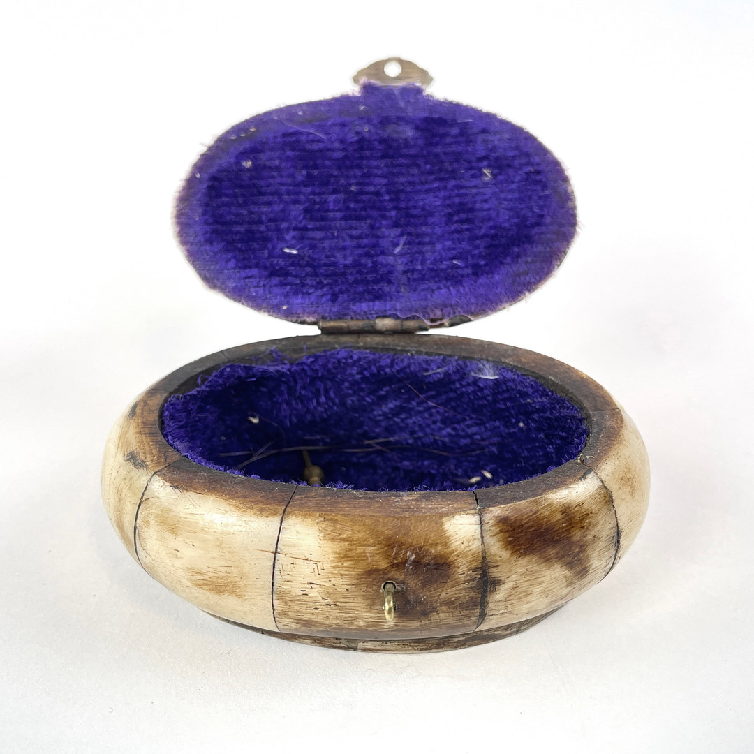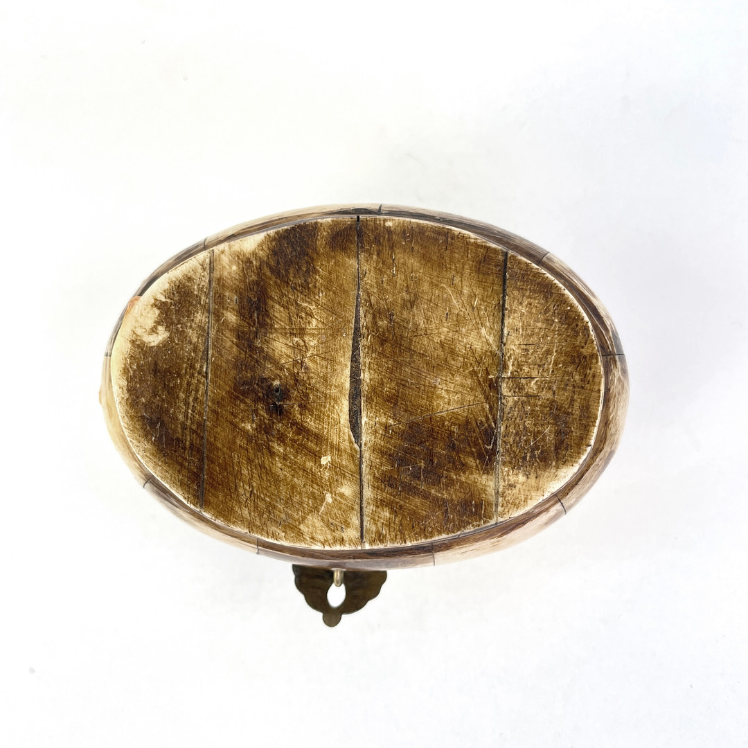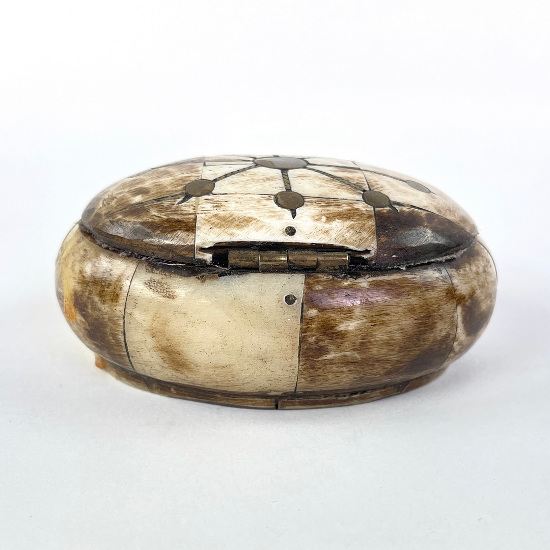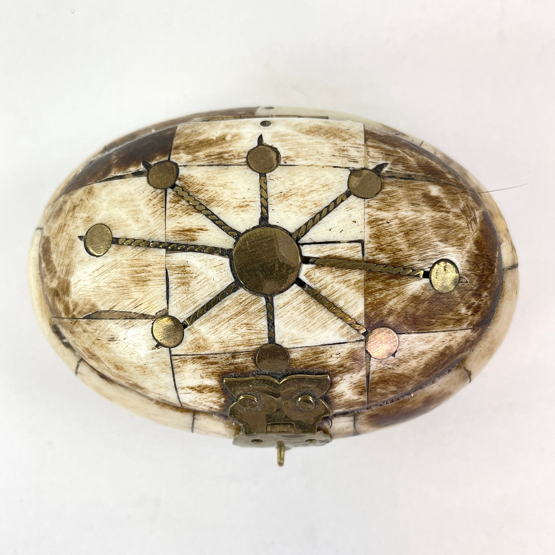 4204176. LÅSESASKE, horn med bronzeindlæg.