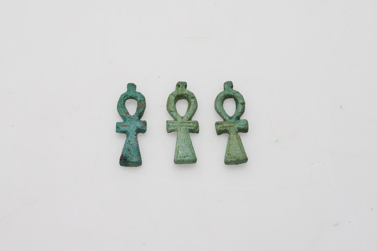 4204956. SCARAB og 3 egyptiske ANKH-KORS.
