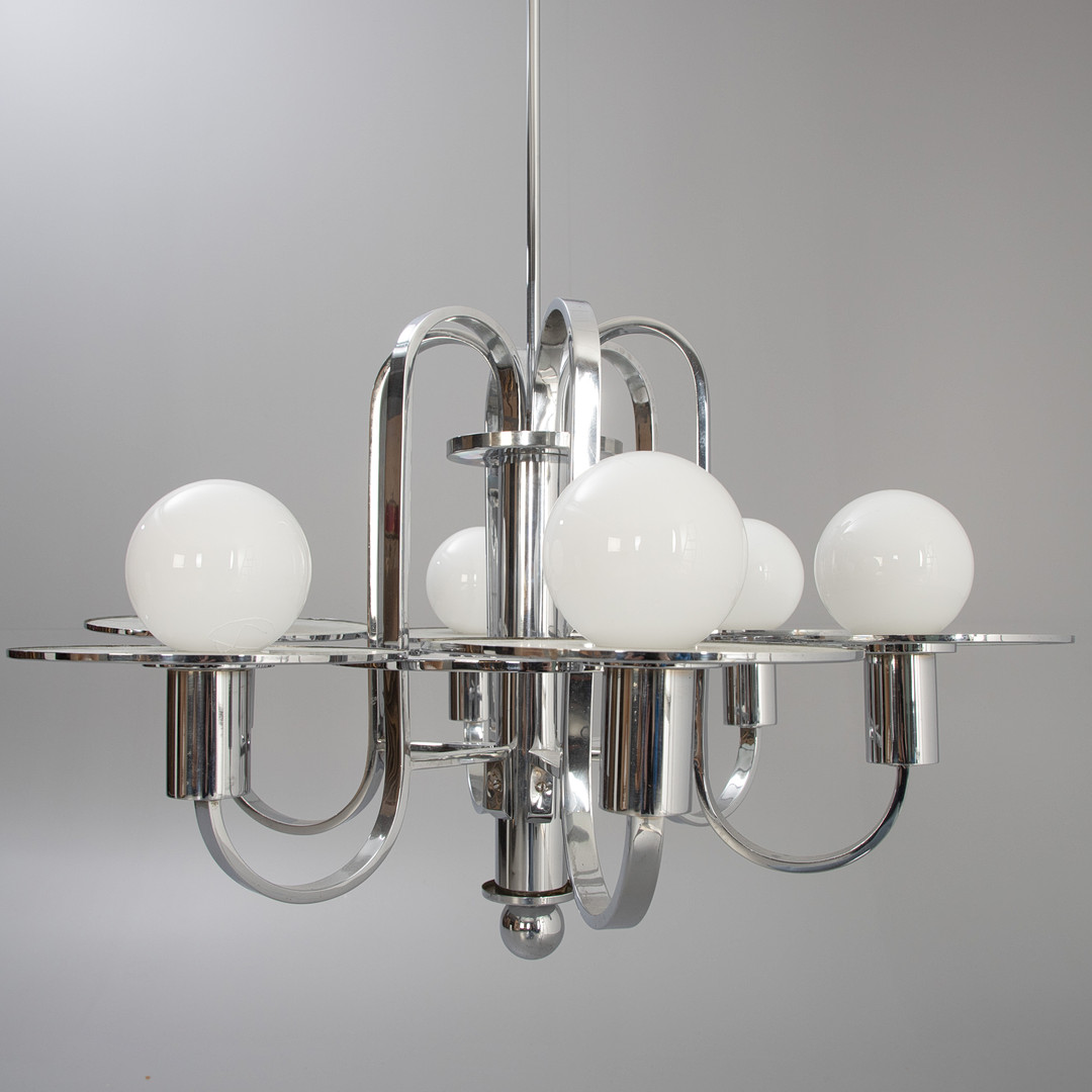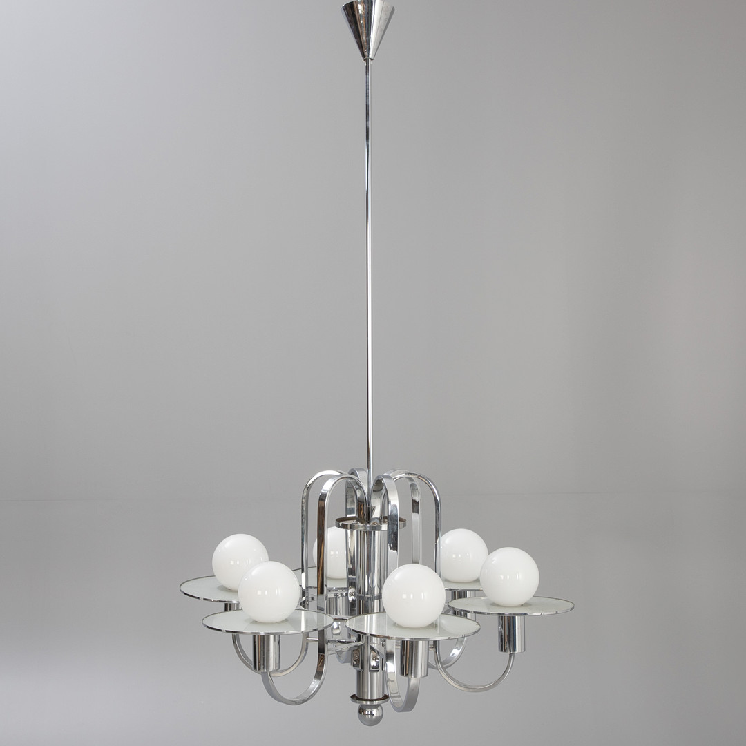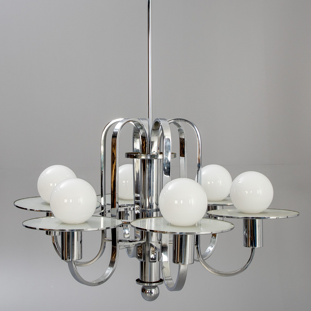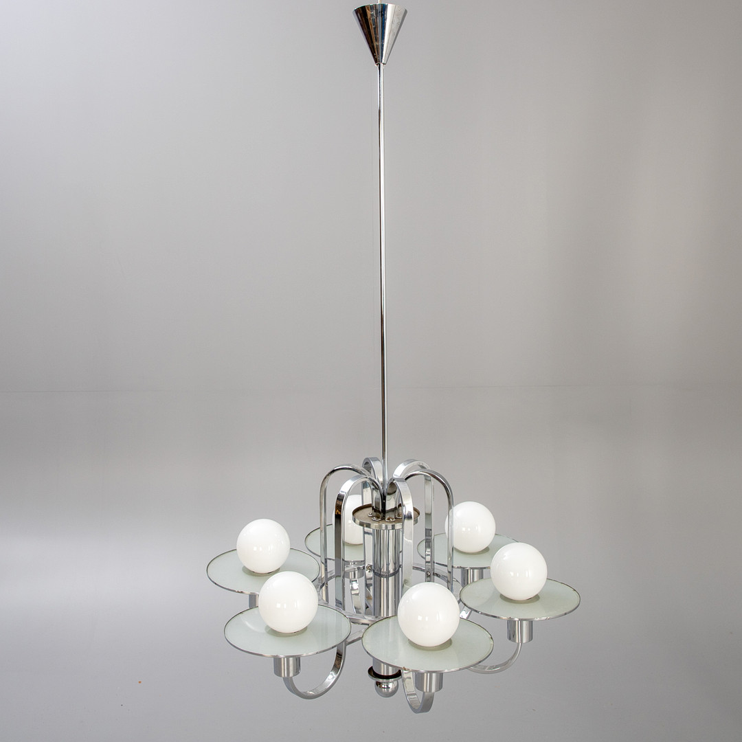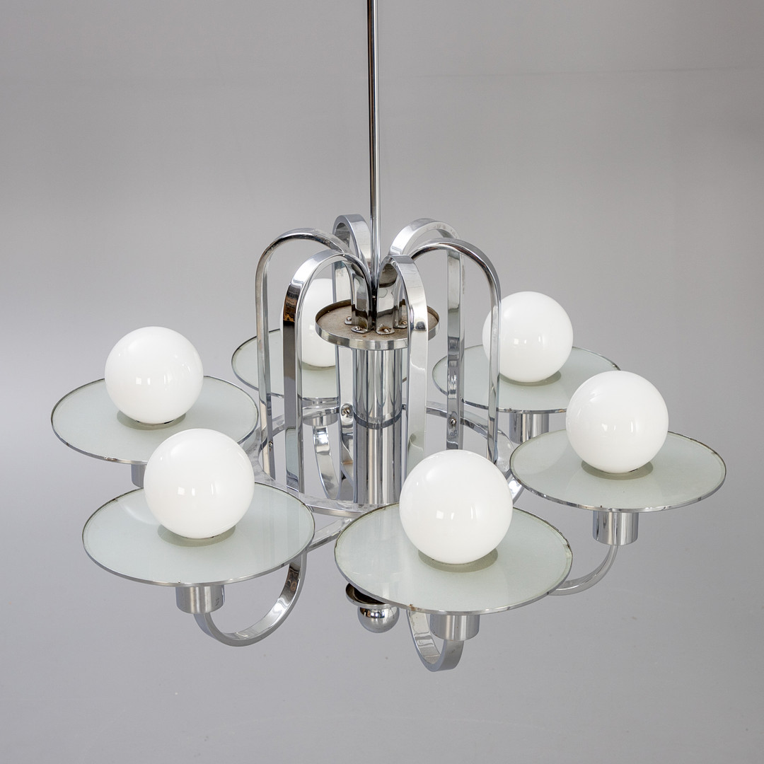 4206817. Art deco loft lysekrone, krom og glas.