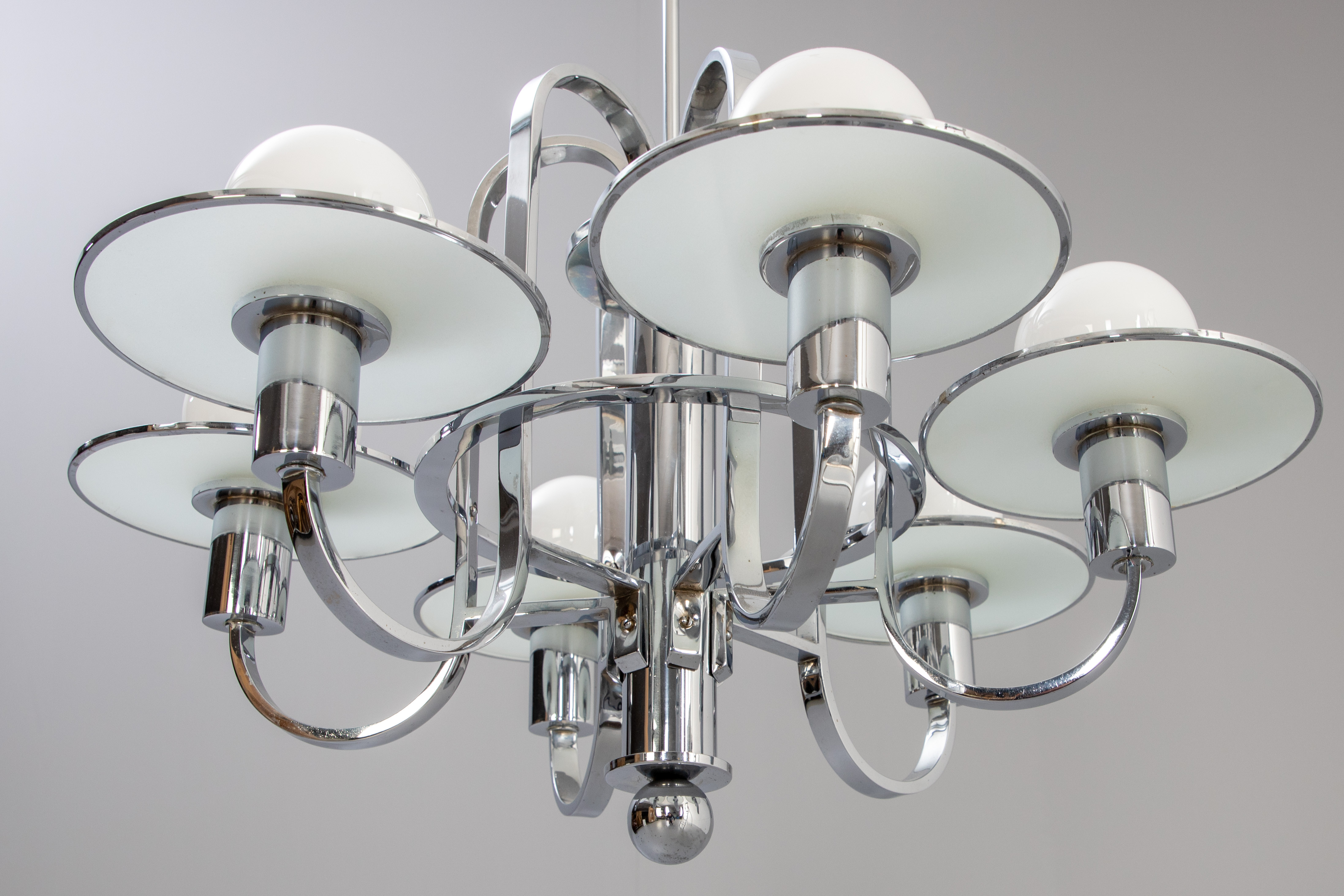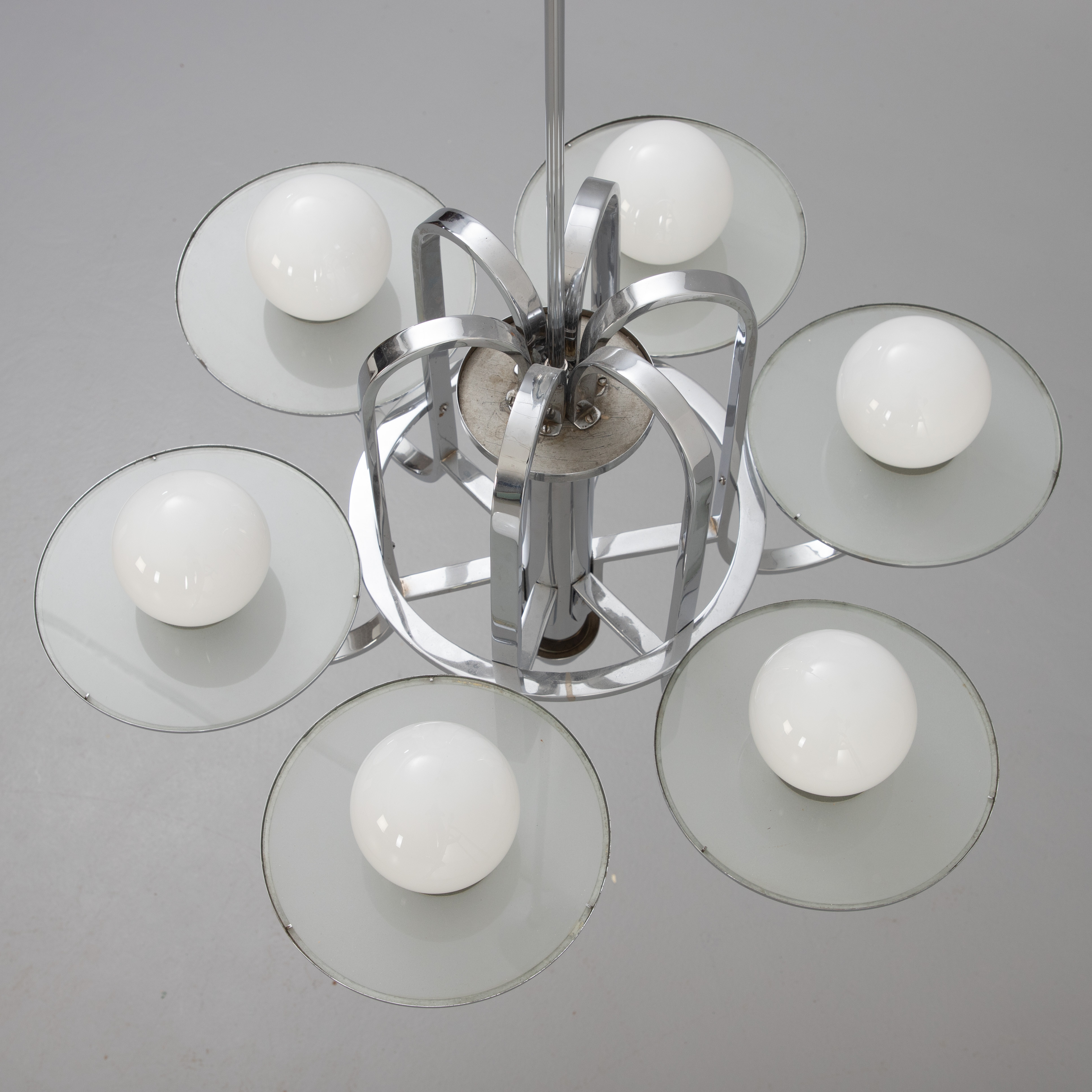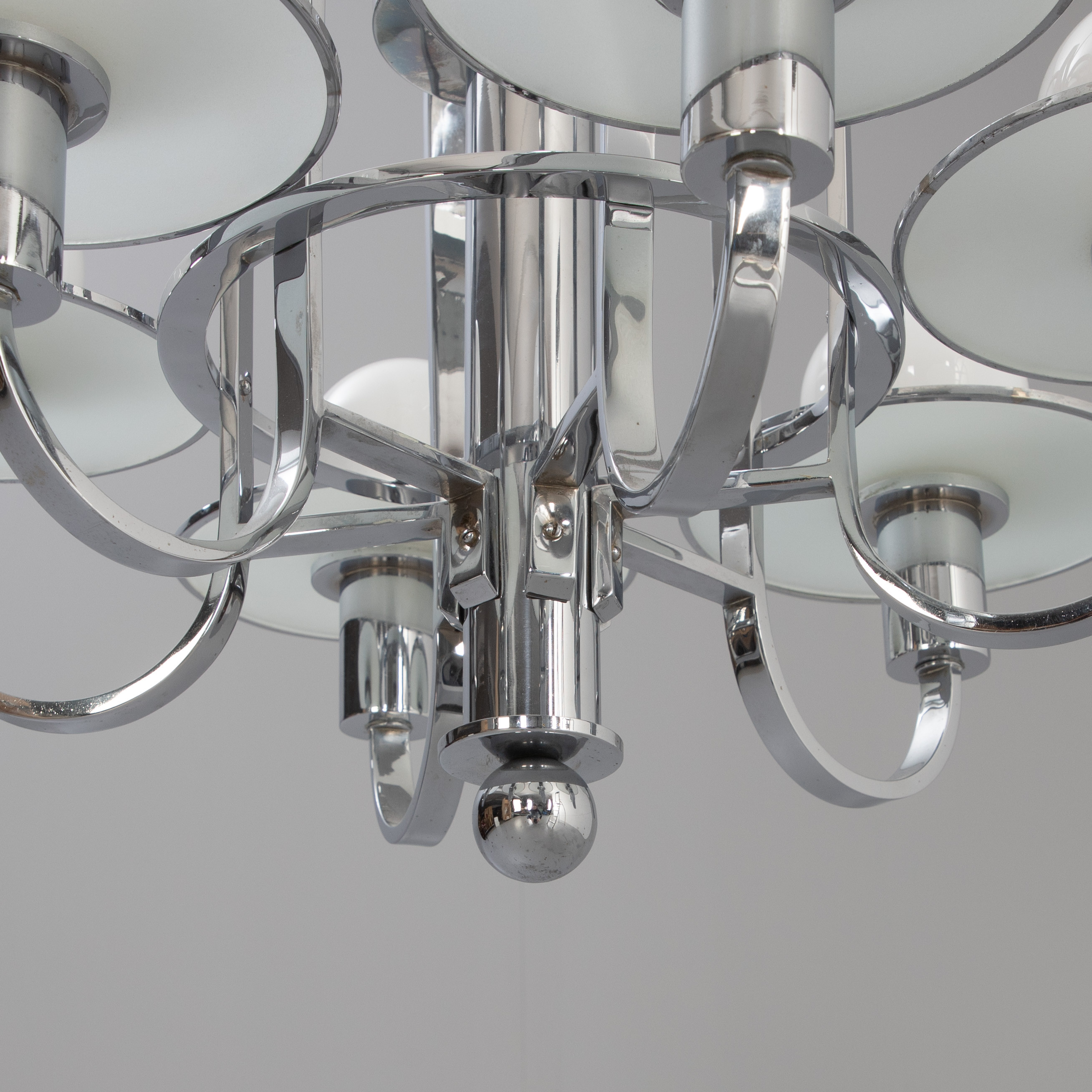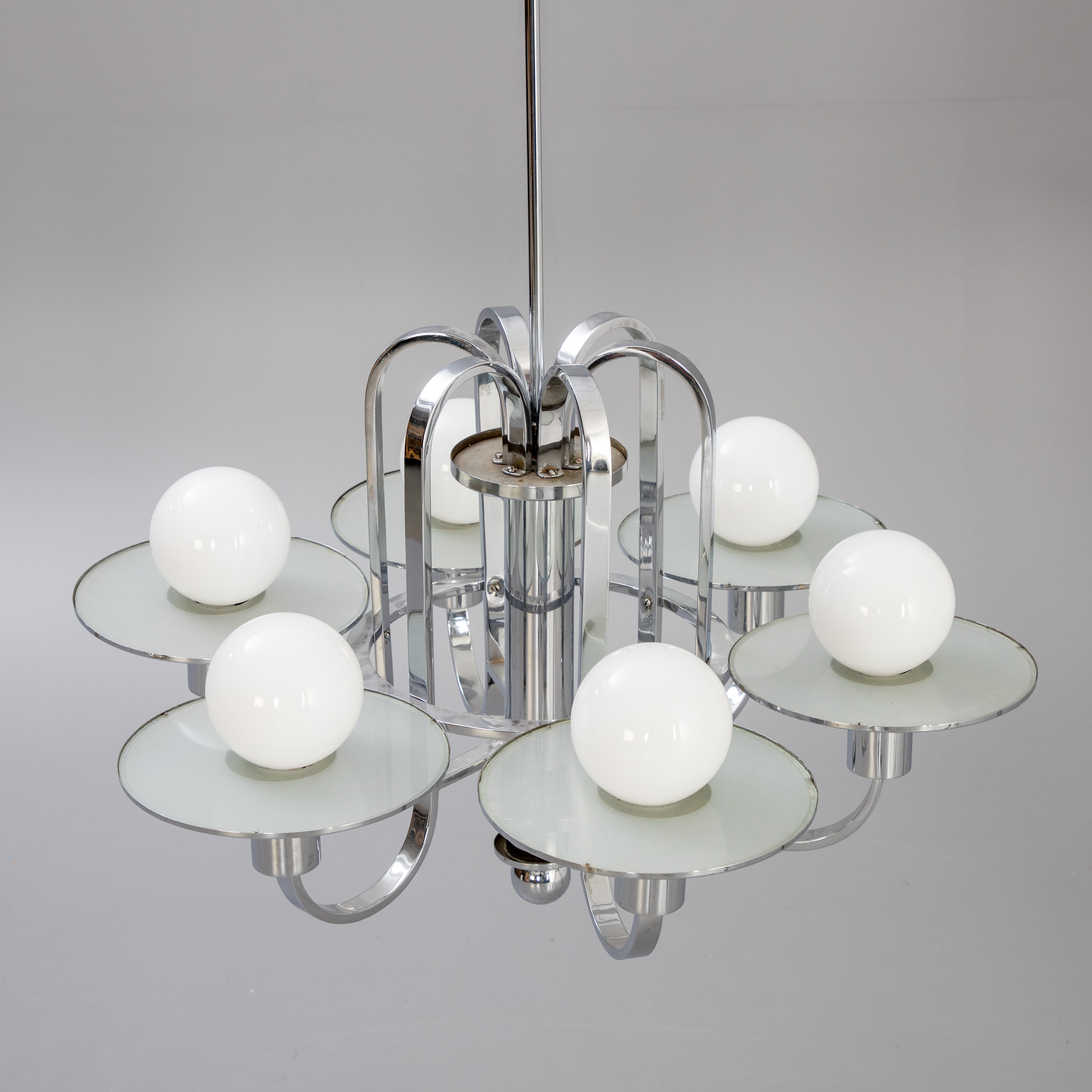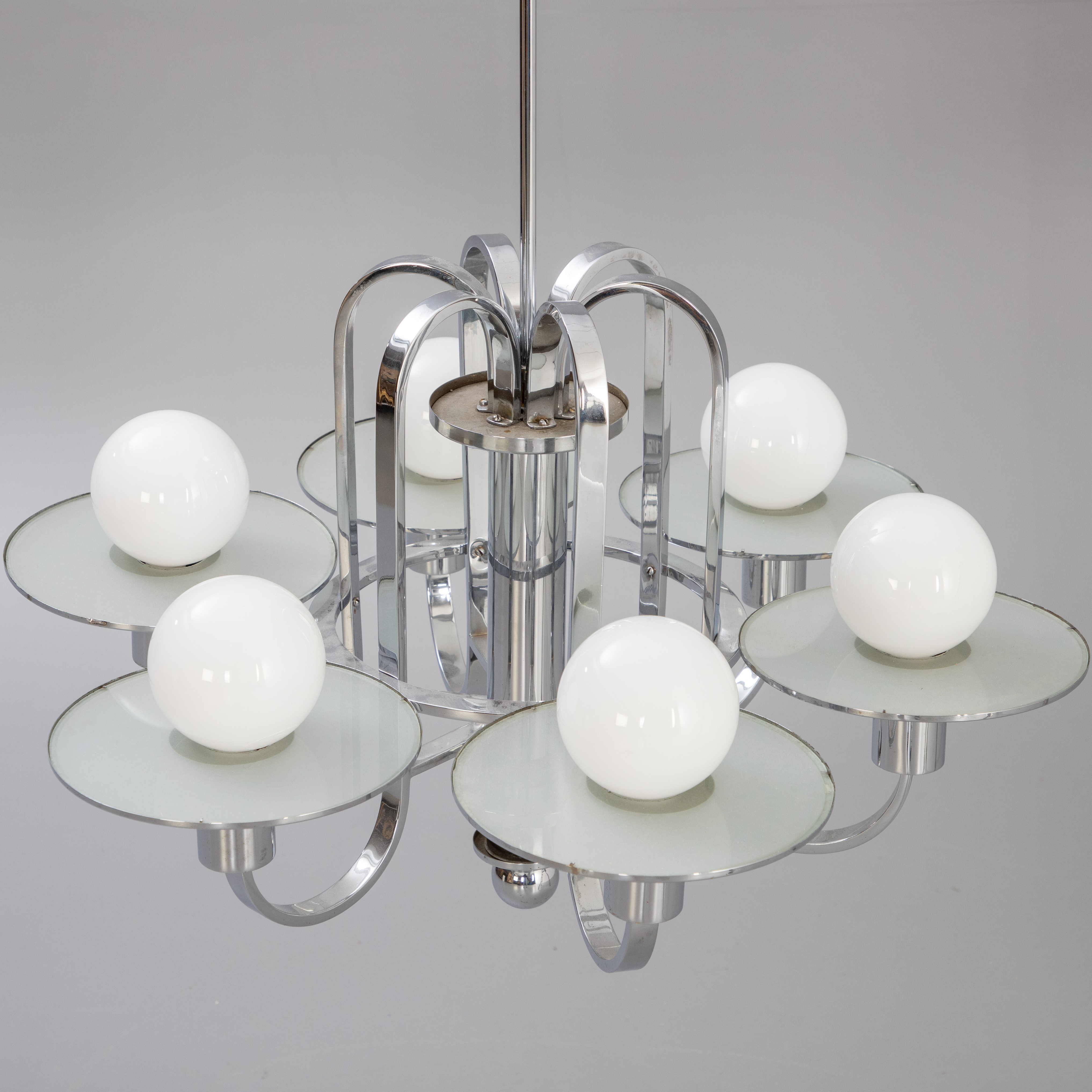 4206817. Art deco loft lysekrone, krom og glas.