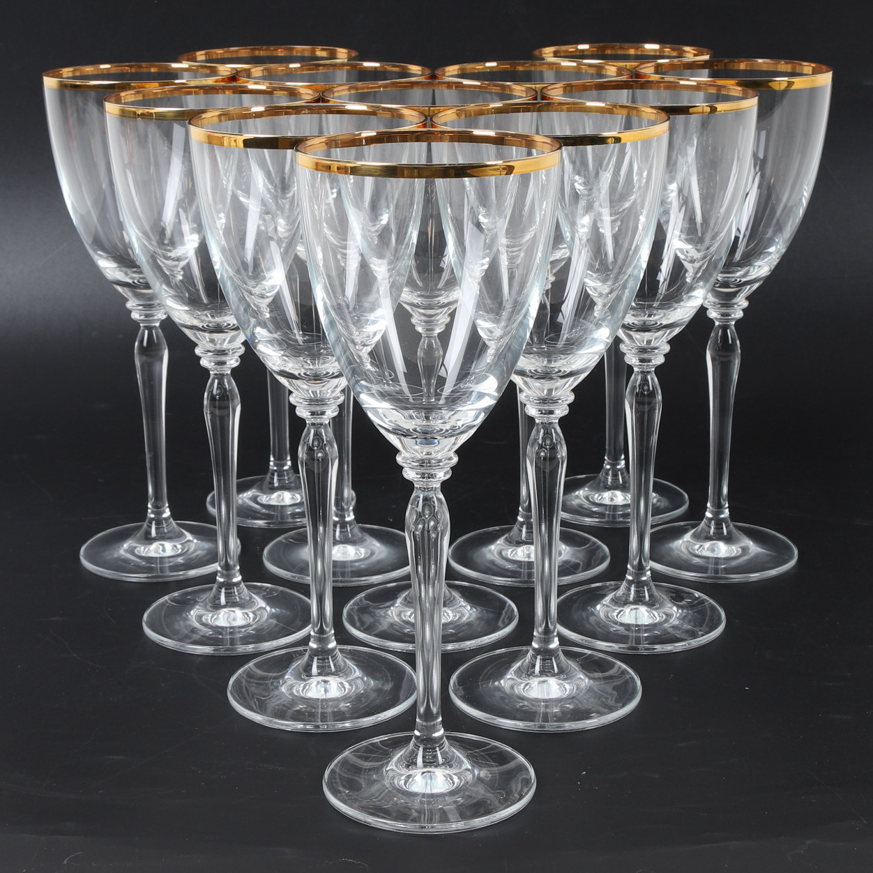 4208497. VINGLAS, 12 stk, glas med guldkant.