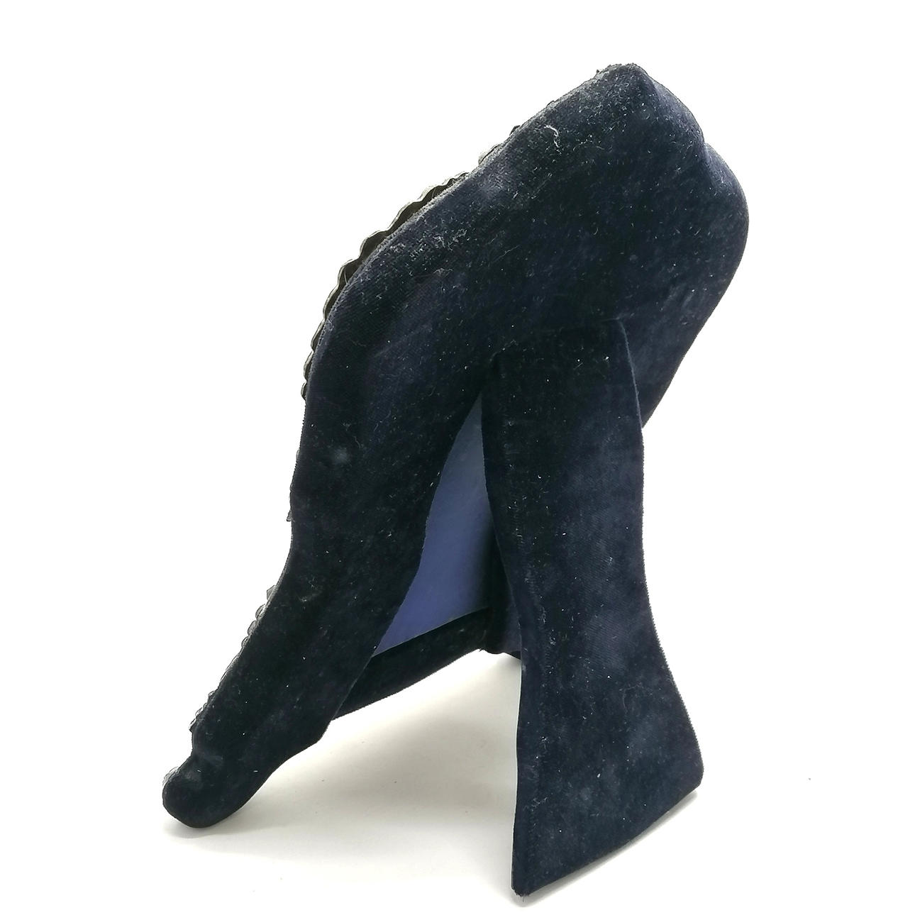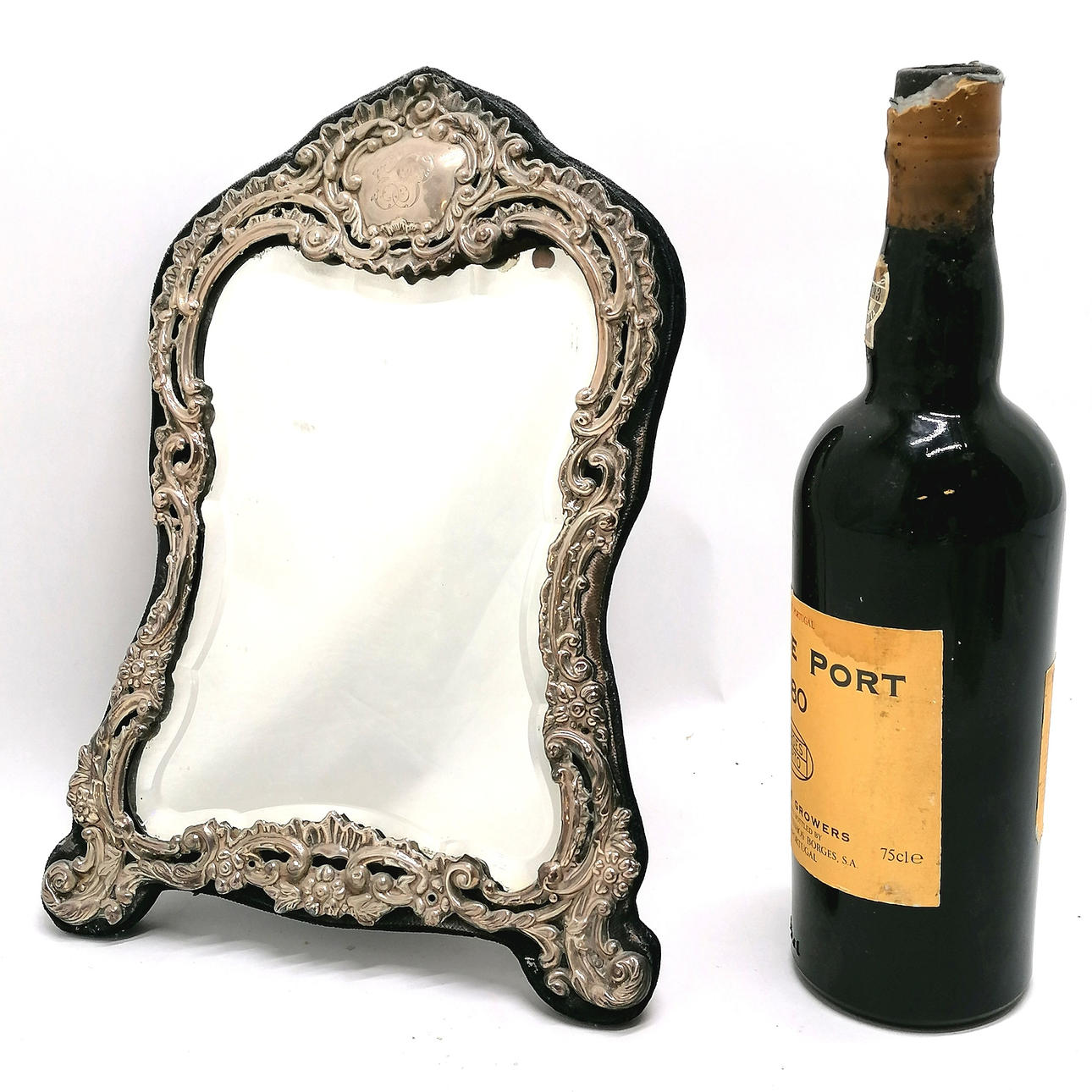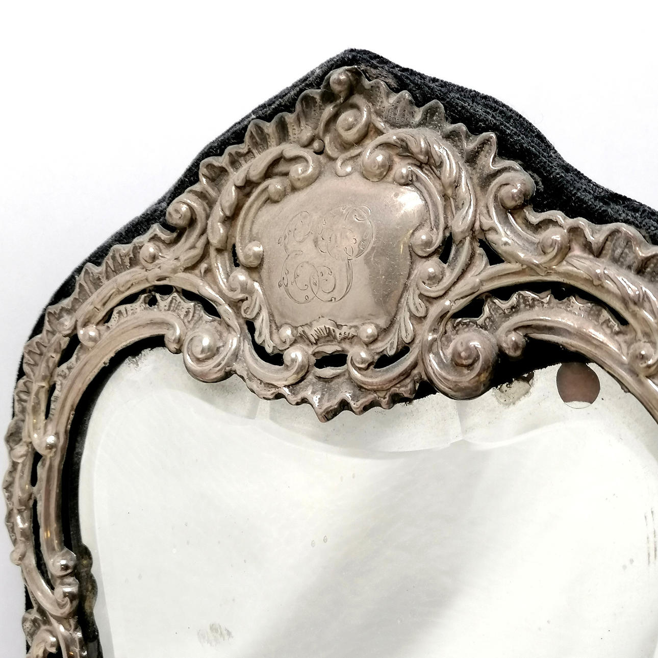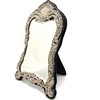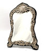Antikt sølvfrontet staffeli spejl med skrå spejlplade af William J Holmes & blå fløjlsryg - 32cm høj & 23cm bred.