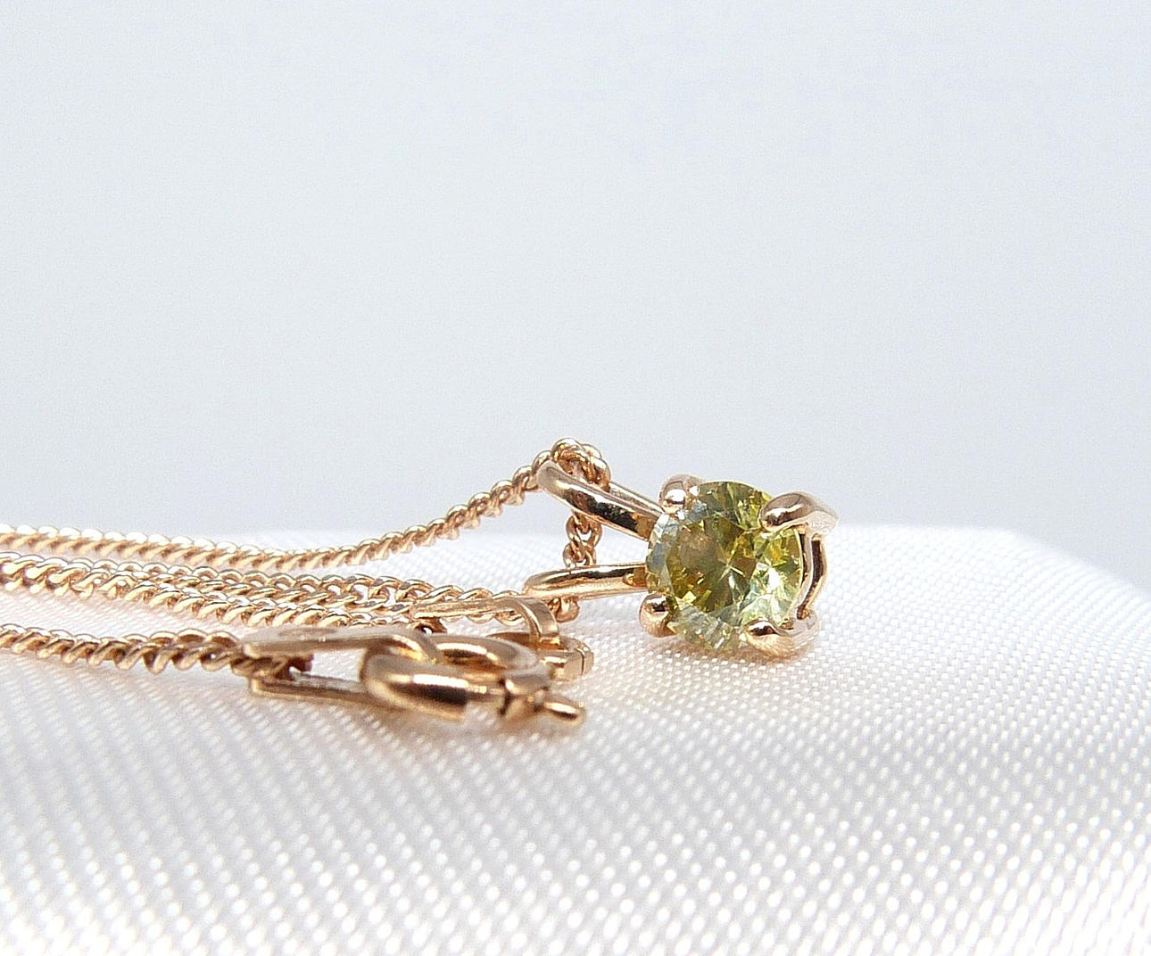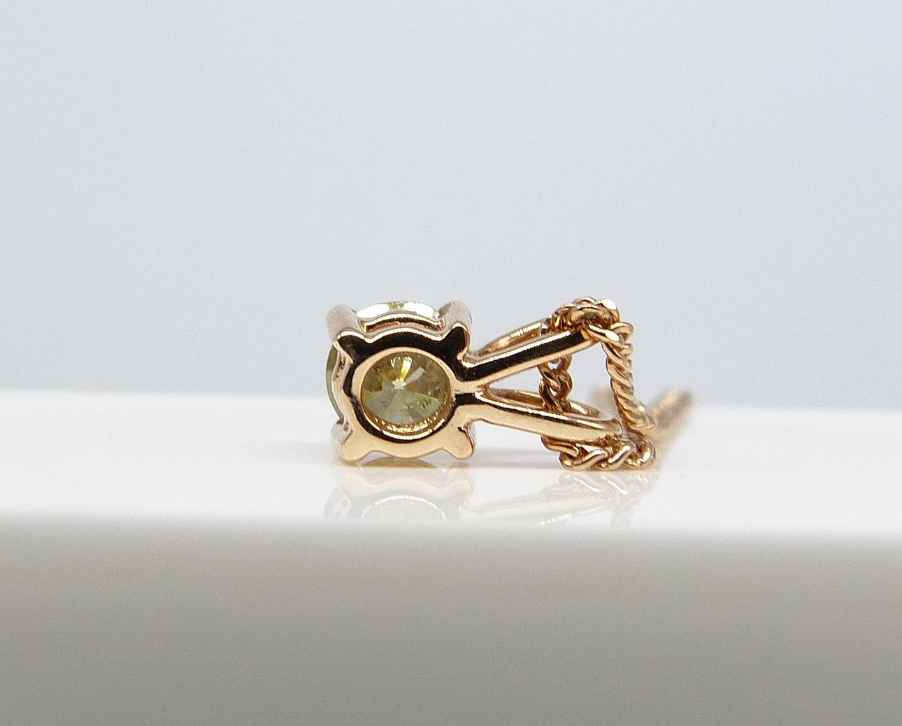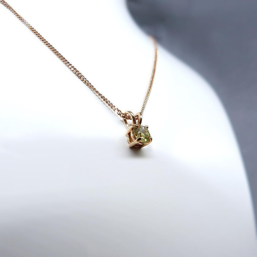Et 18 karat roseguld vedhæng sæt med en intens gul rund briljantslebet diamant.