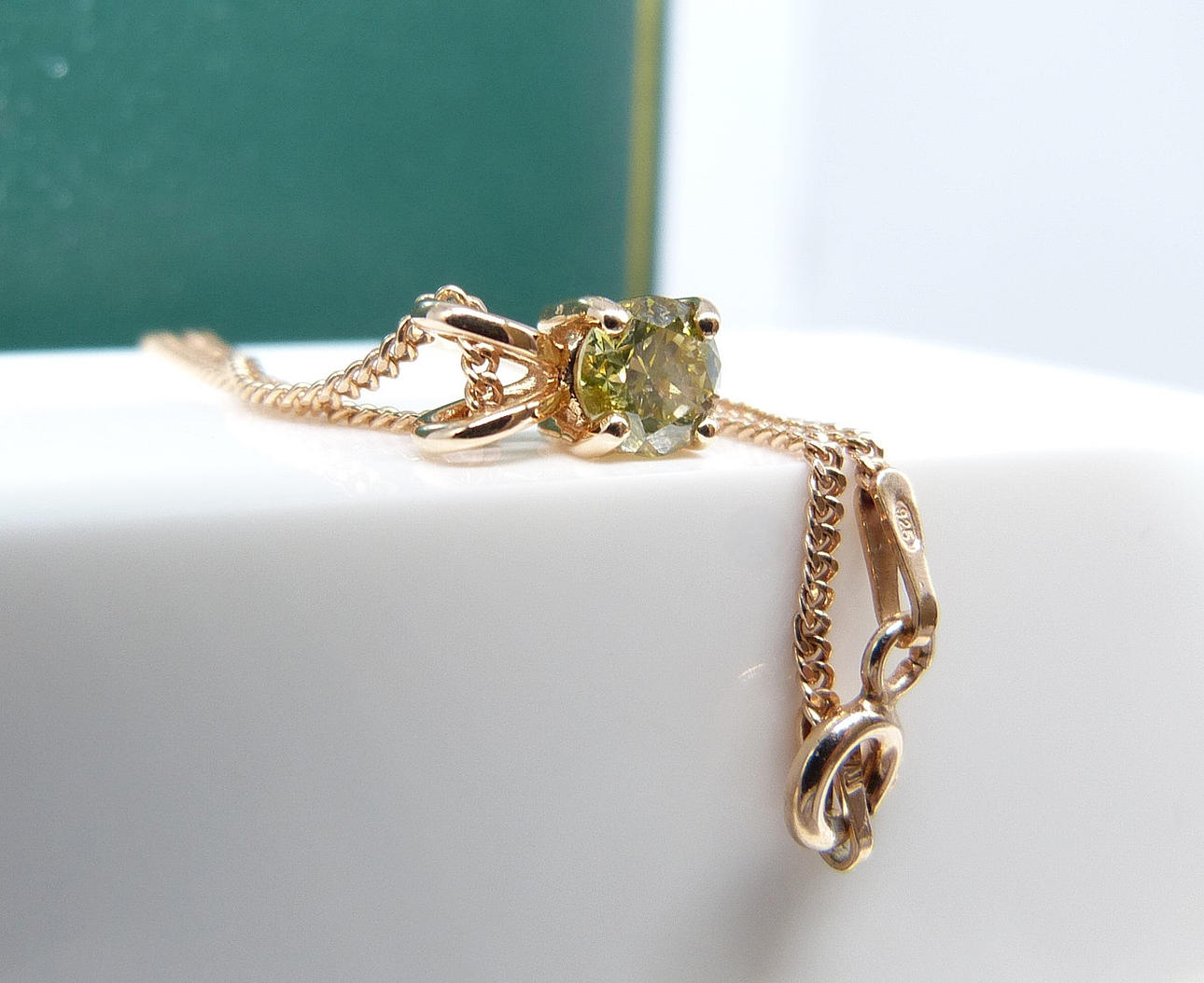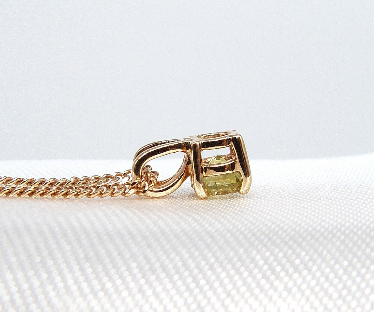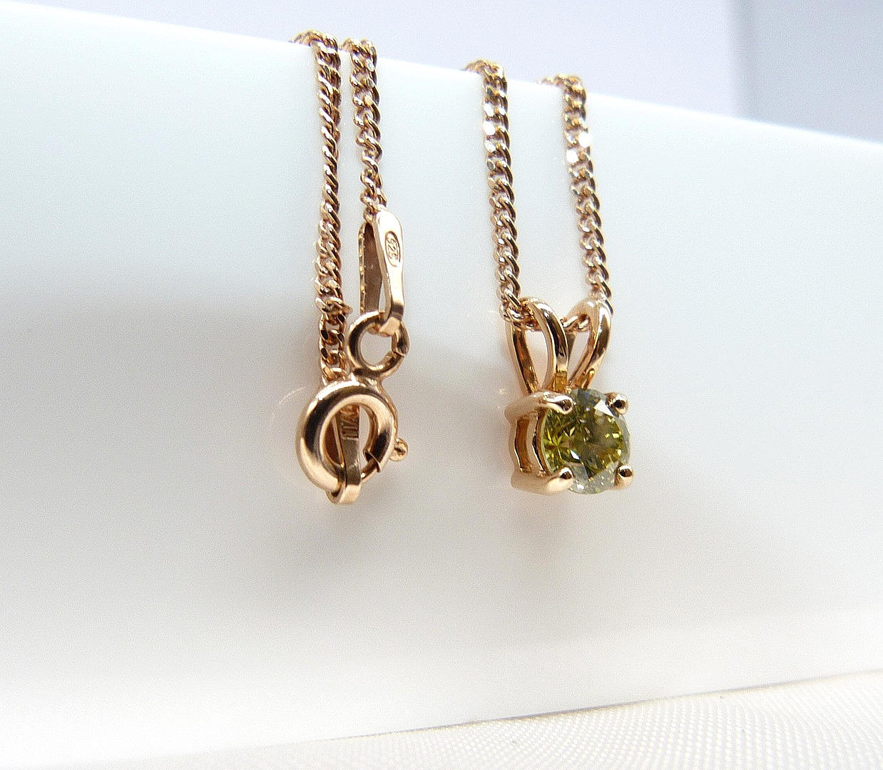 Et 18 karat roseguld vedhæng sæt med en intens gul rund briljantslebet diamant.