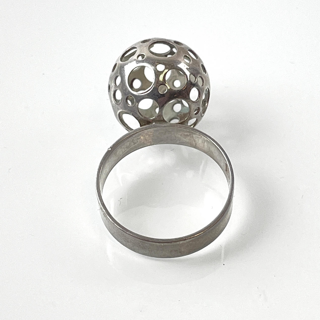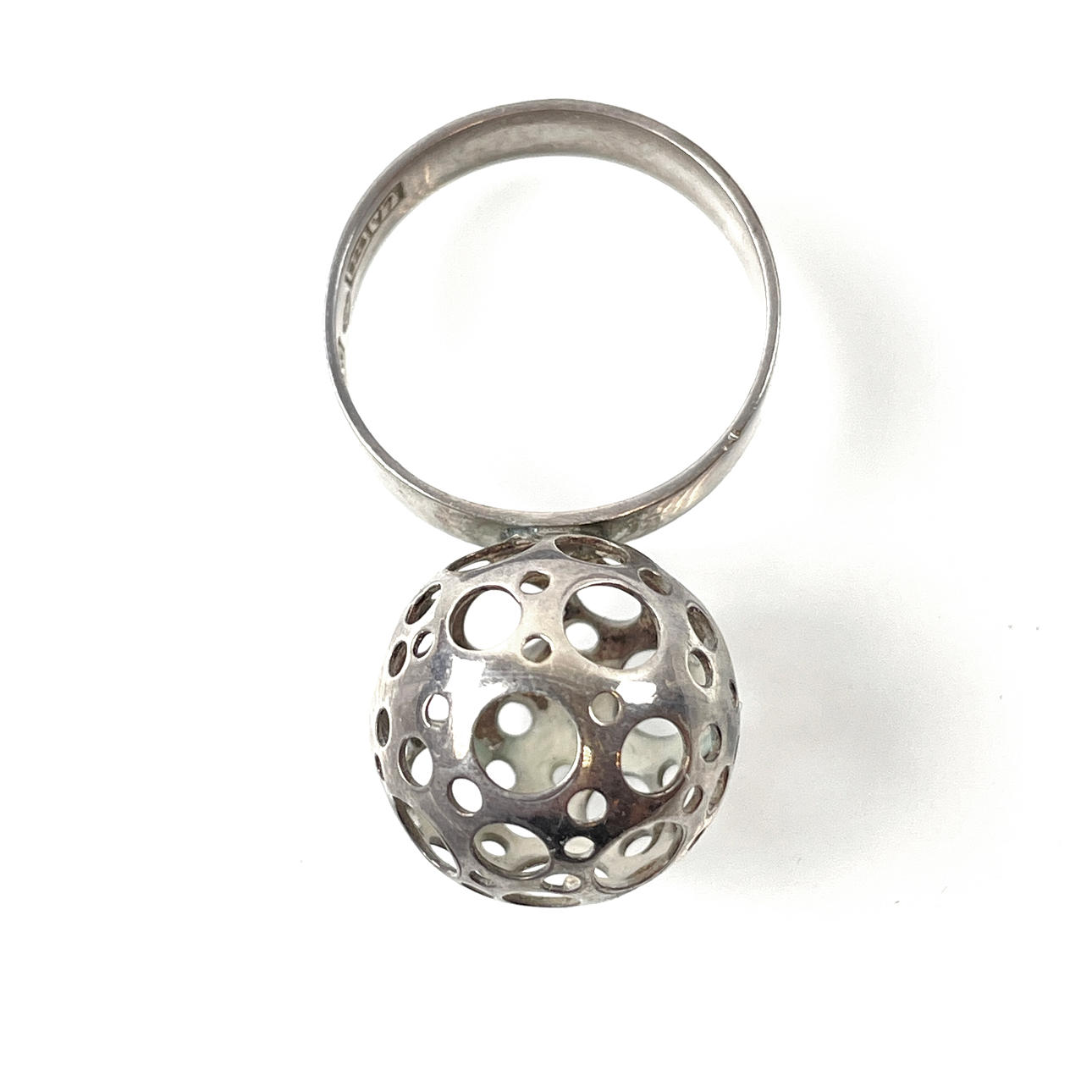 1 stk sølvring, monteret med en gennemboret kugle, indvendig diameter ca. 18 mm.