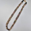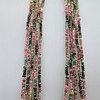 Turmalin halskæde - 585/000 (14K) gult guld, 5 rækker med gevindfacetterede turmaliner i forskellige nuancer, perforeret 14k gult guld dekorativt spænde med lyserød stjernesafir på 7,8 x 5,9 mm i rammesætning, 2 sikkerhedsspidser, spændemål ca. 17 x 11 mm, total længde ca. 81 cm, totalvægt ca. 74,2 g.