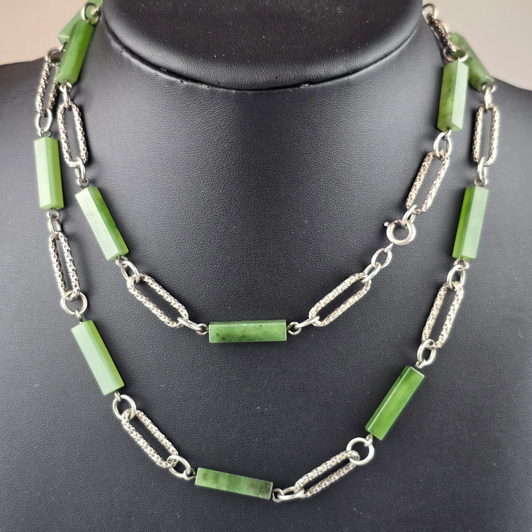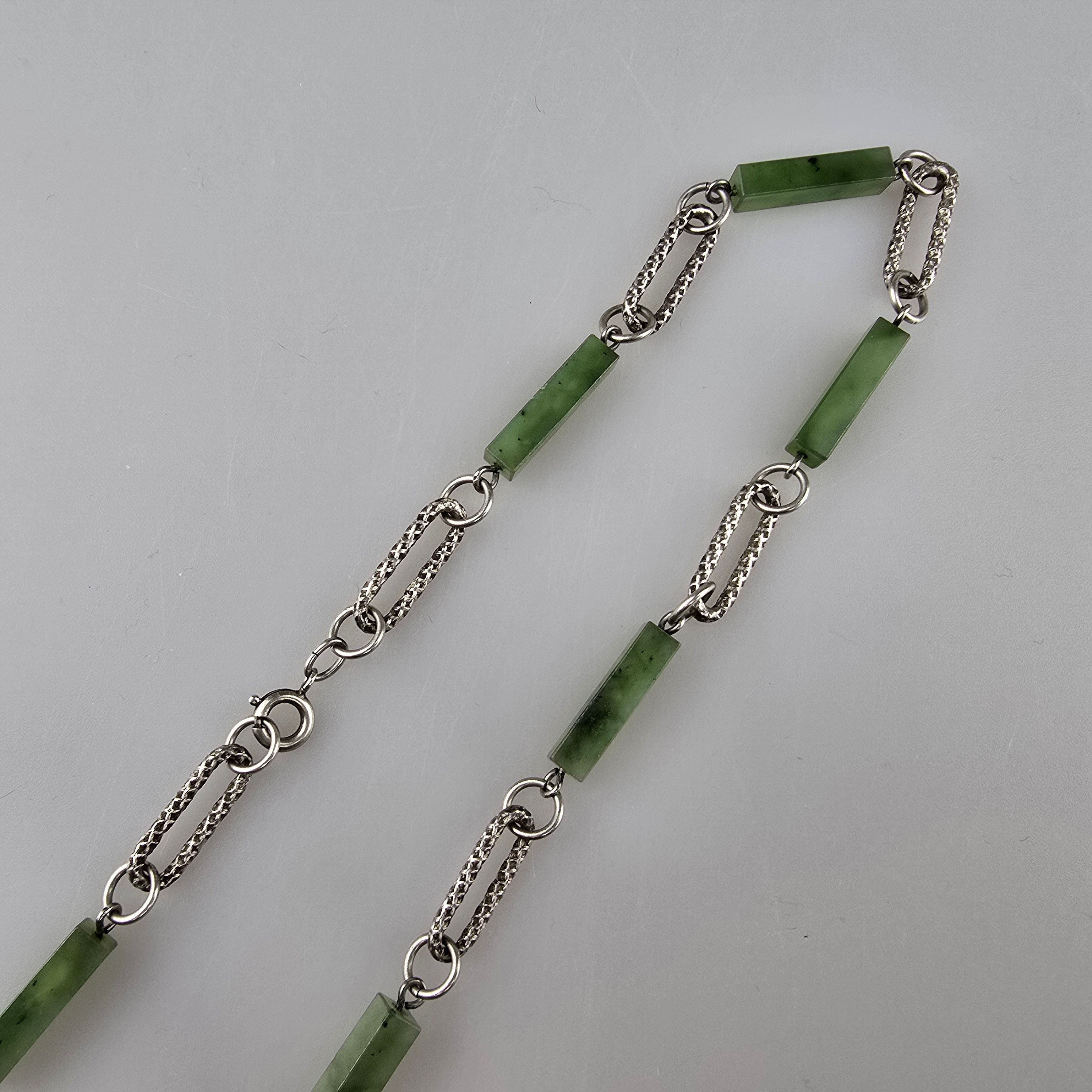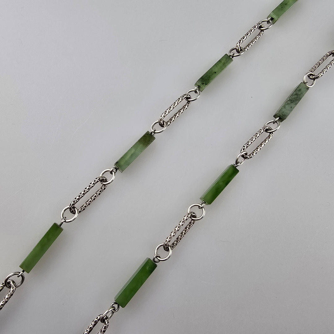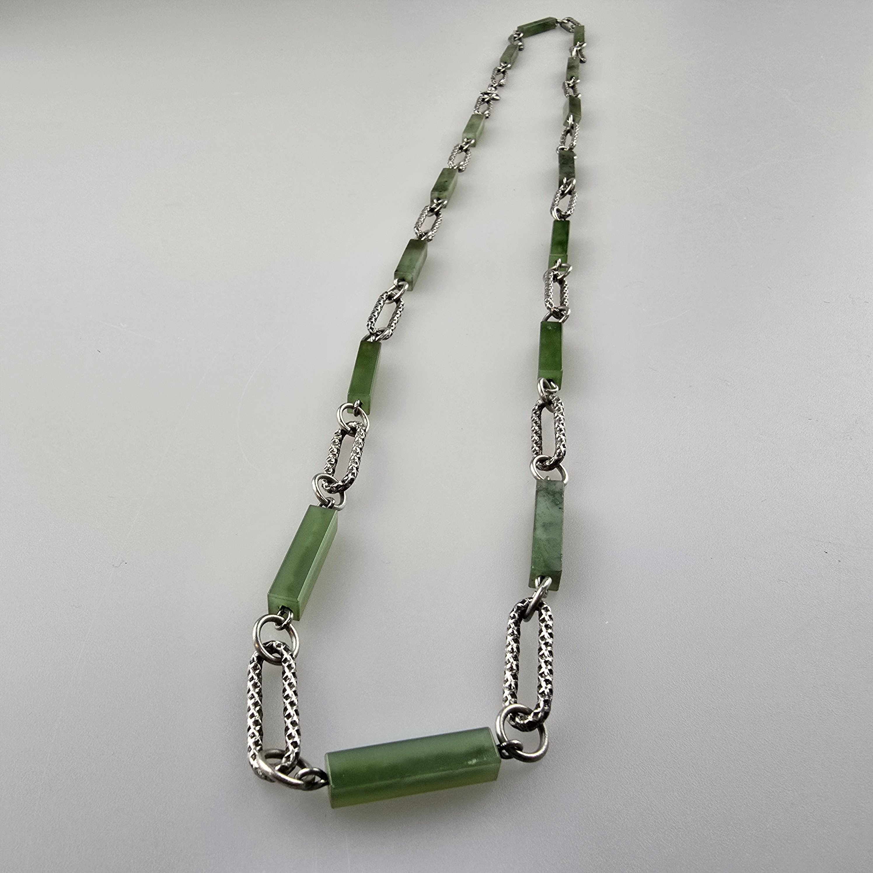 4214760. SØLV HALSKÆDE MED NEPHRITE JADE - KINA.
