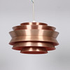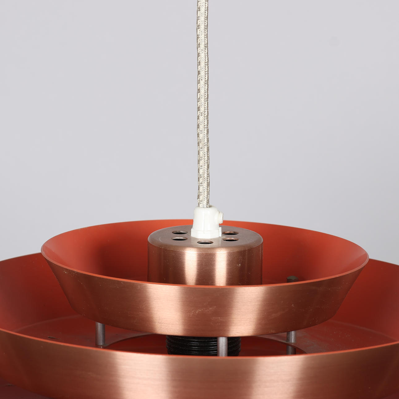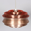 'Trava' pendel i kobber. Skærme rødlakeret indvendigt. Formgivet 1967. Produceret af Granhaga, Sverige.