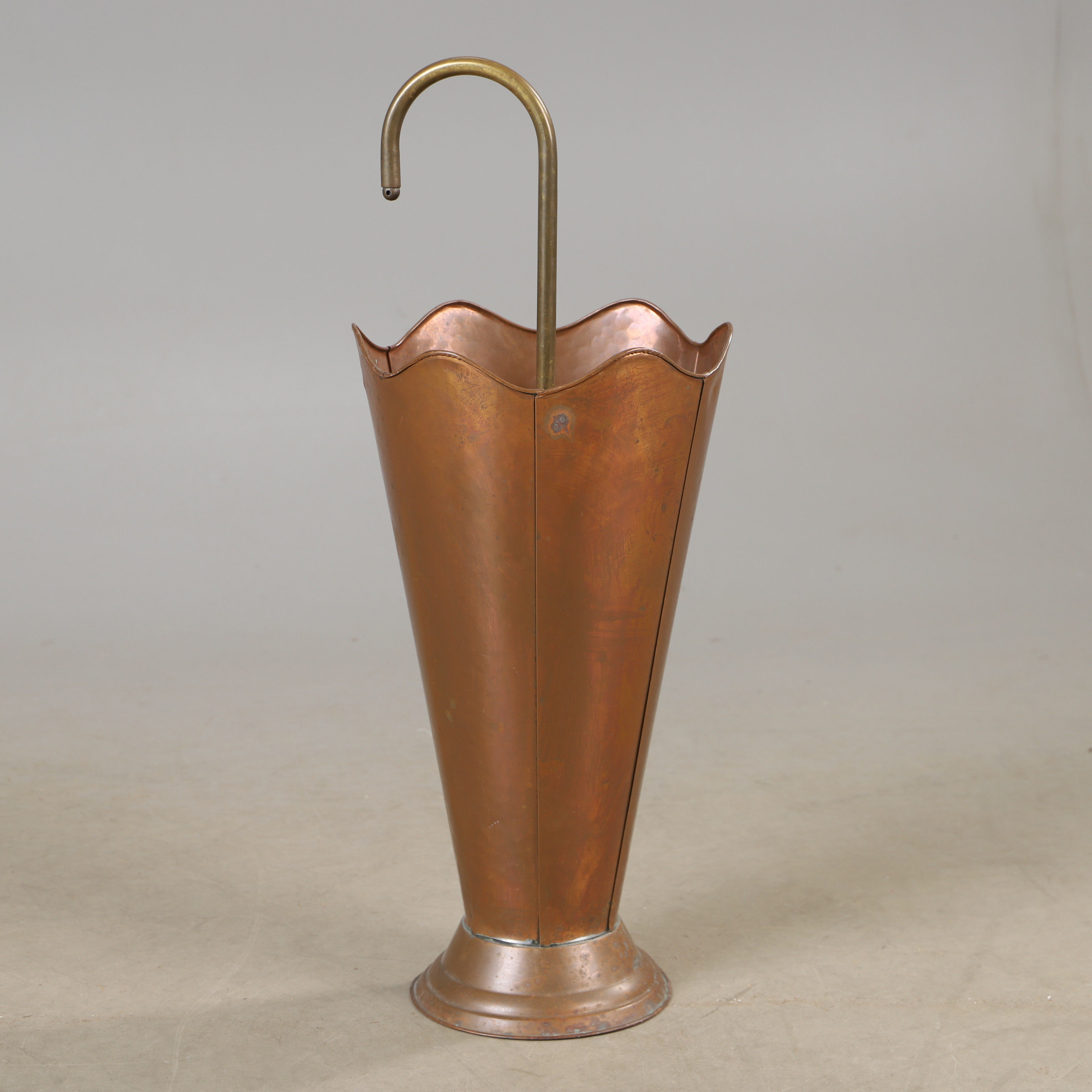 4215896. PARAPLYSTATIV, kobber og messing, midten af 1900-tallet.