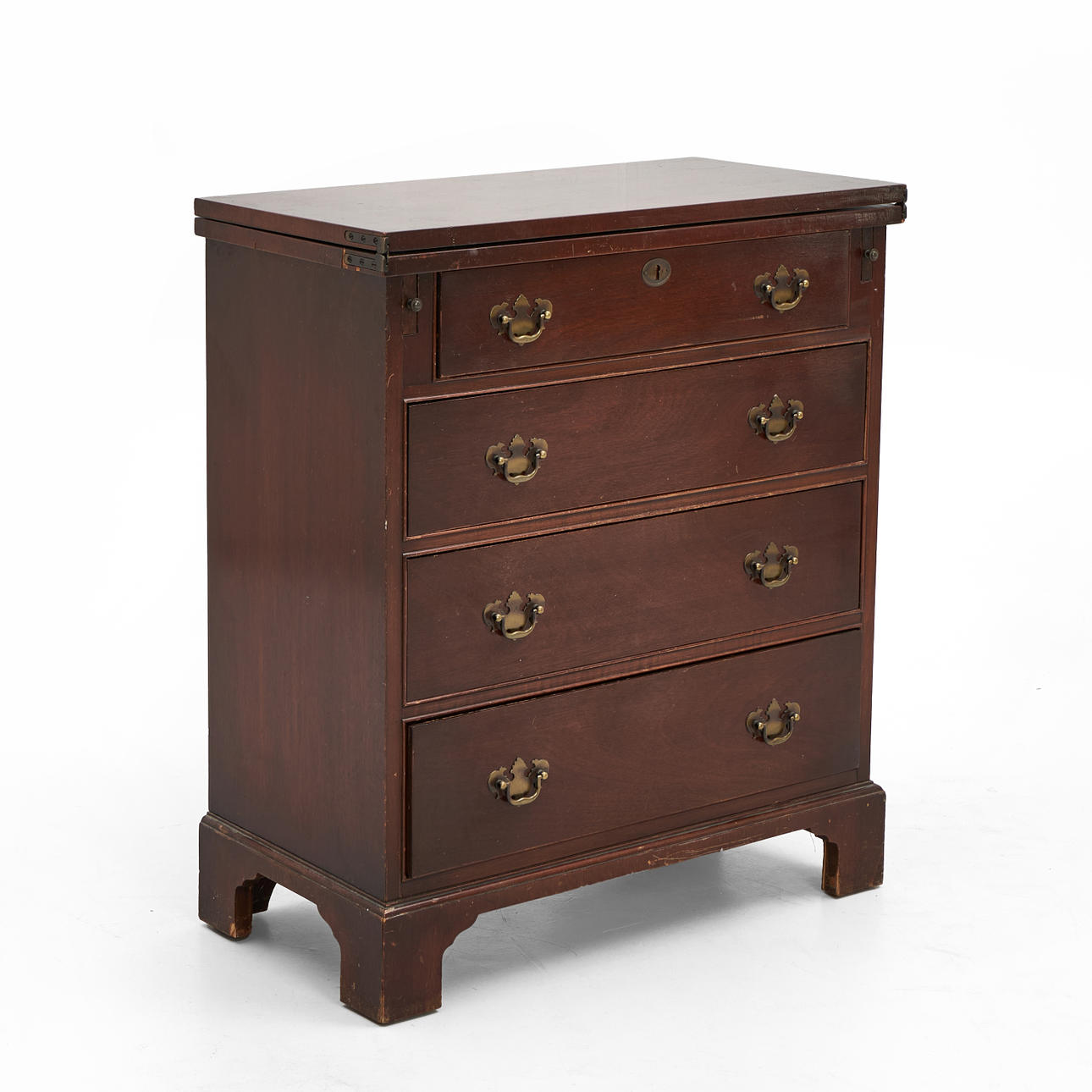 4216508. Kommode, mahogni, fireforet med udfoldelig top.