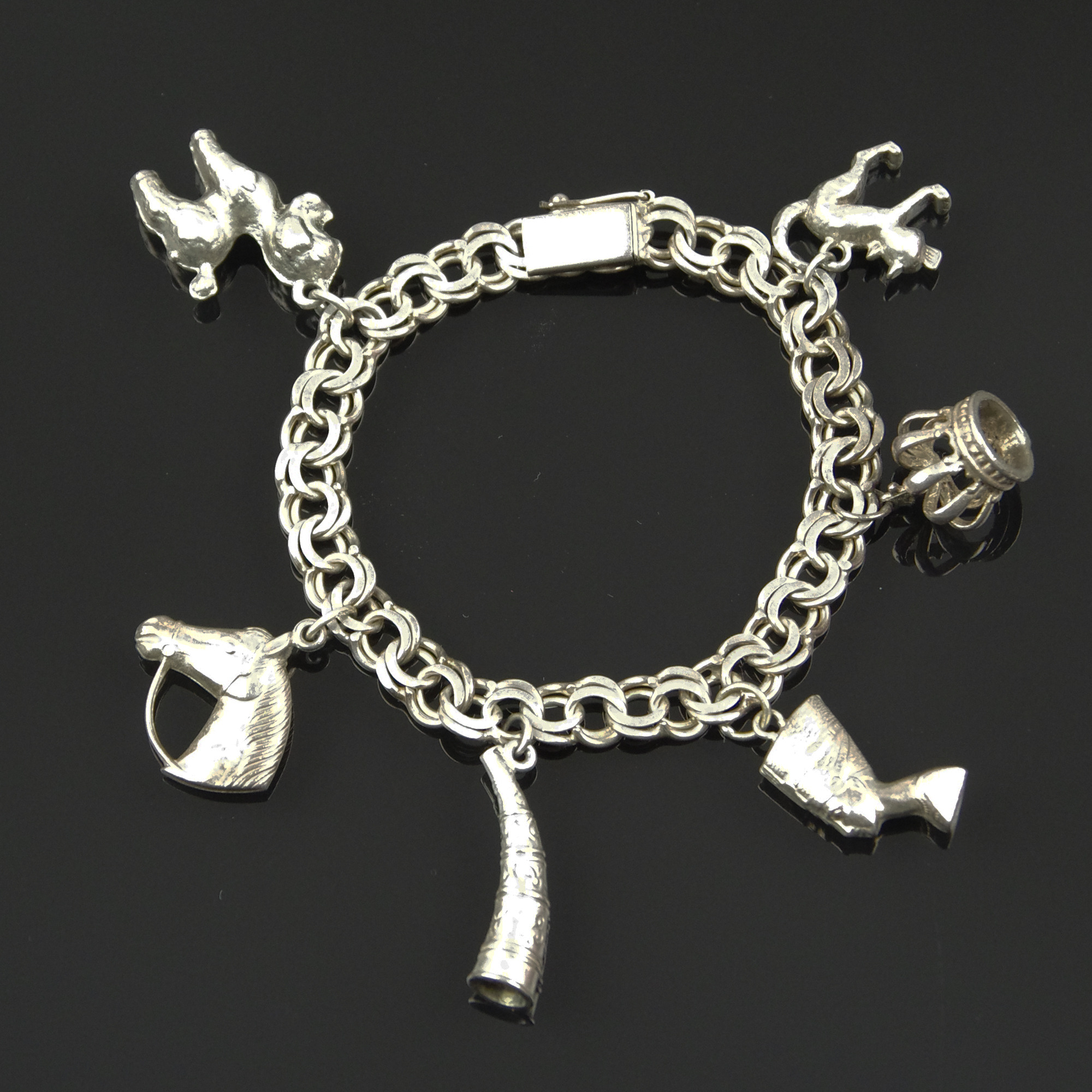421676. ARMBÅND MED CHARMS, bismarckled, sølv.