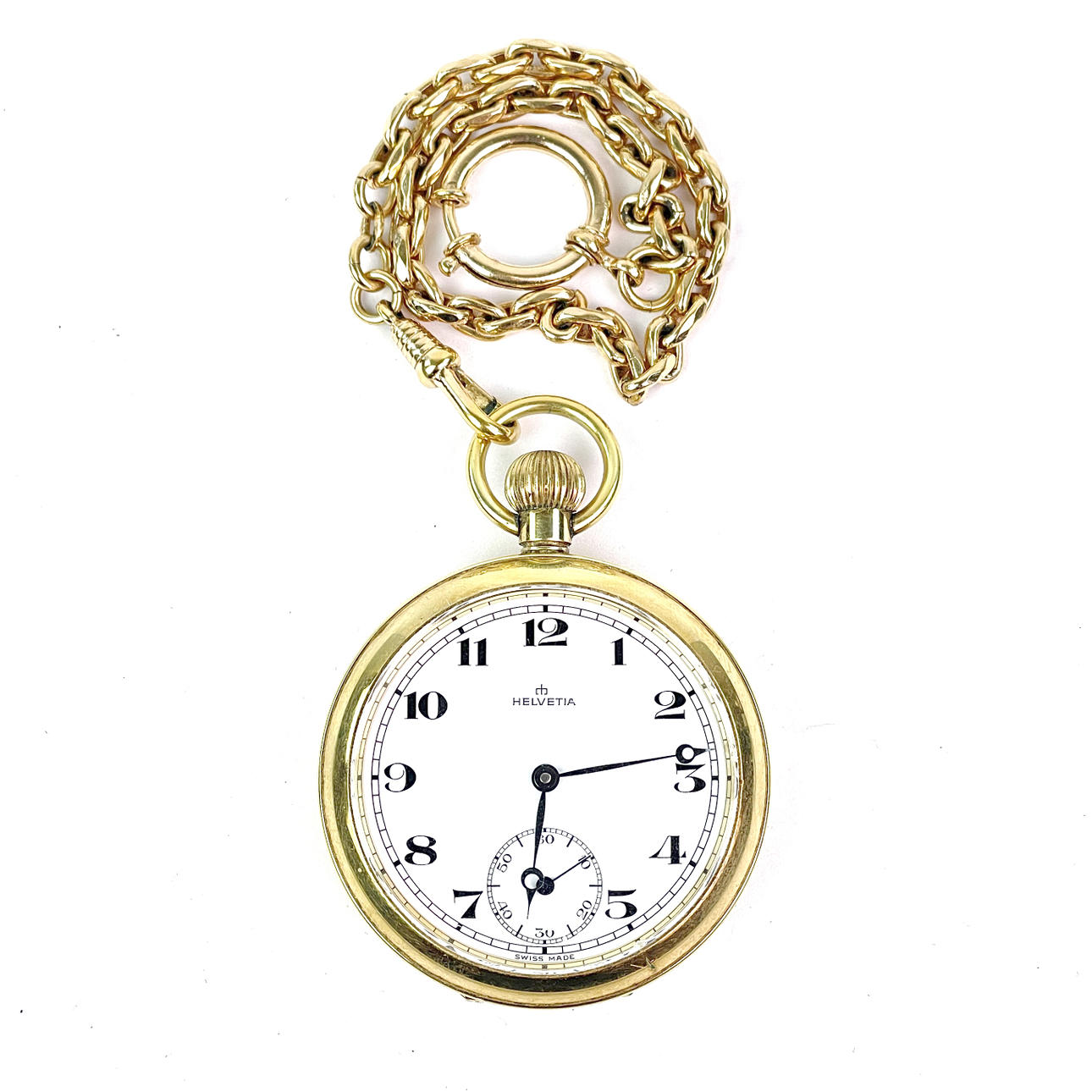 Forgyldt lommeur med kæde, Helvetia.